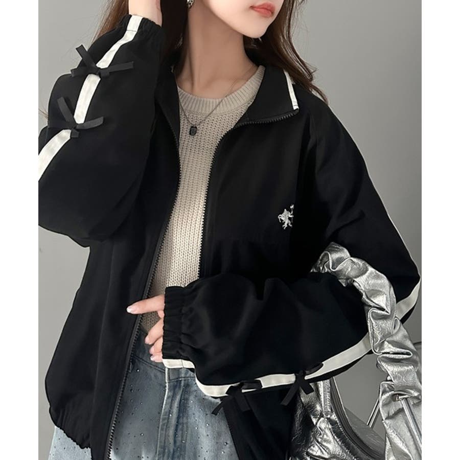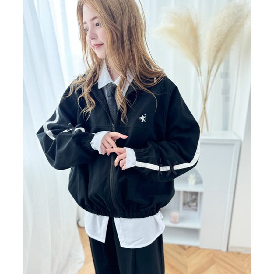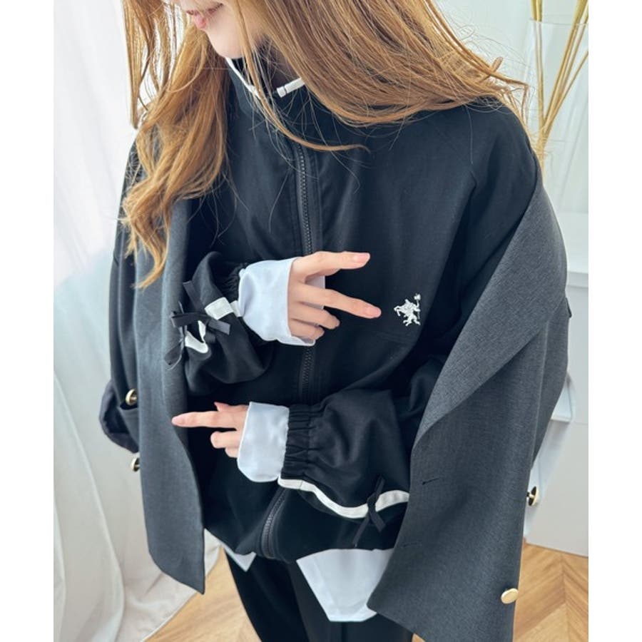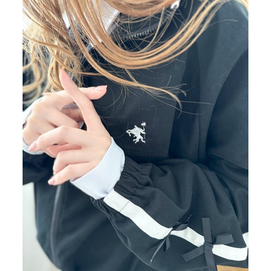 袖のリボンで甘さをプラス。綿100%胸刺繍入りトラックジャケット