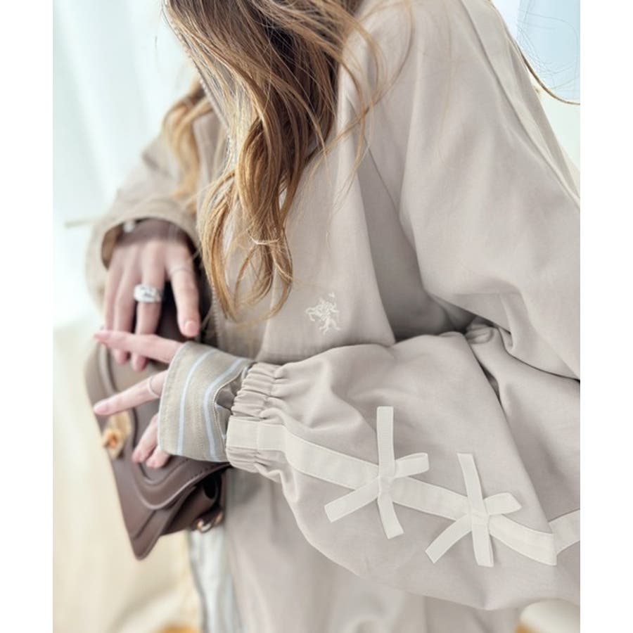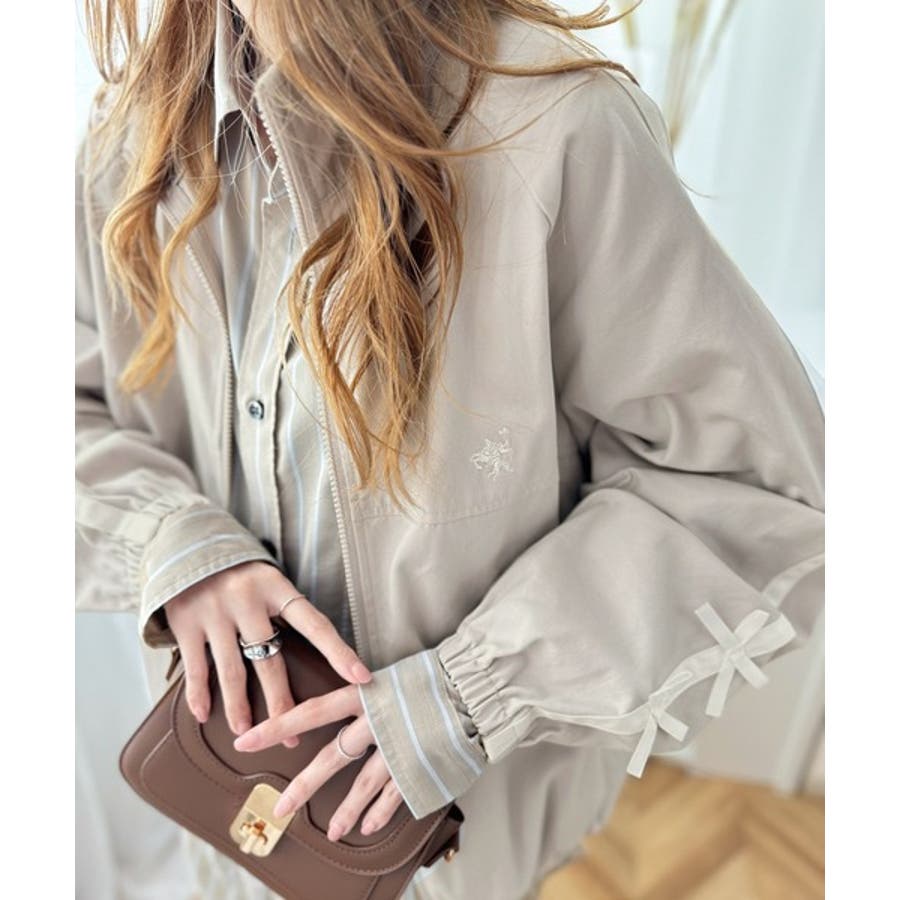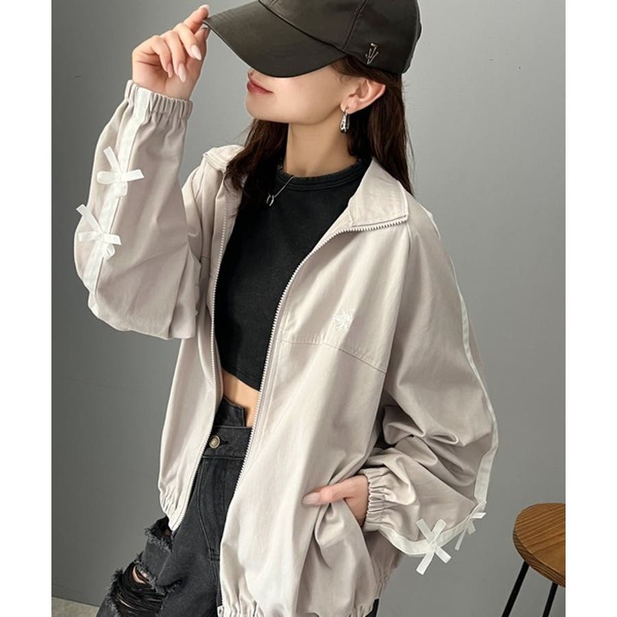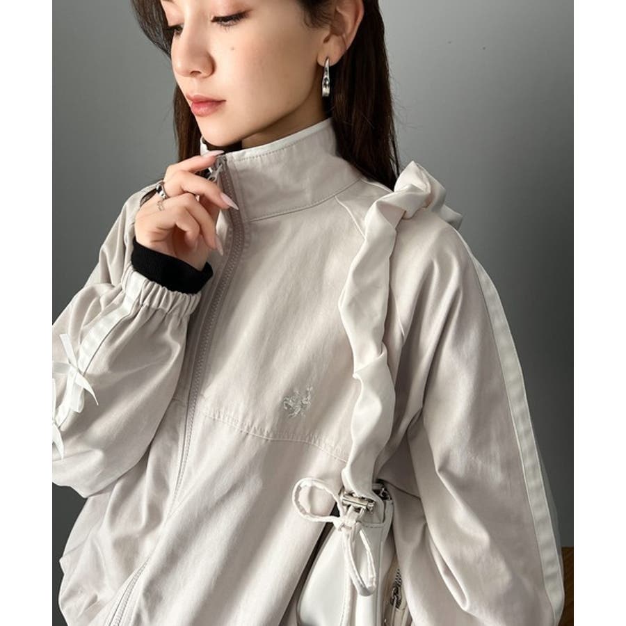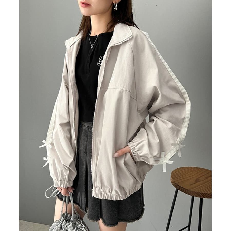 袖のリボンで甘さをプラス。綿100%胸刺繍入りトラックジャケット