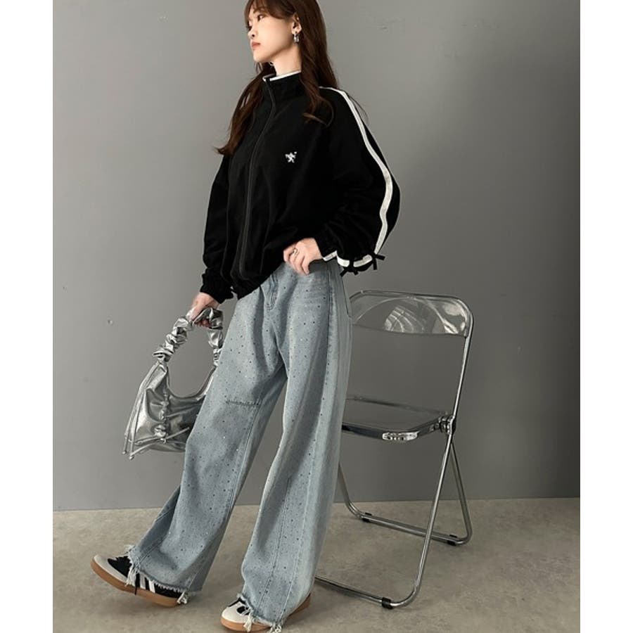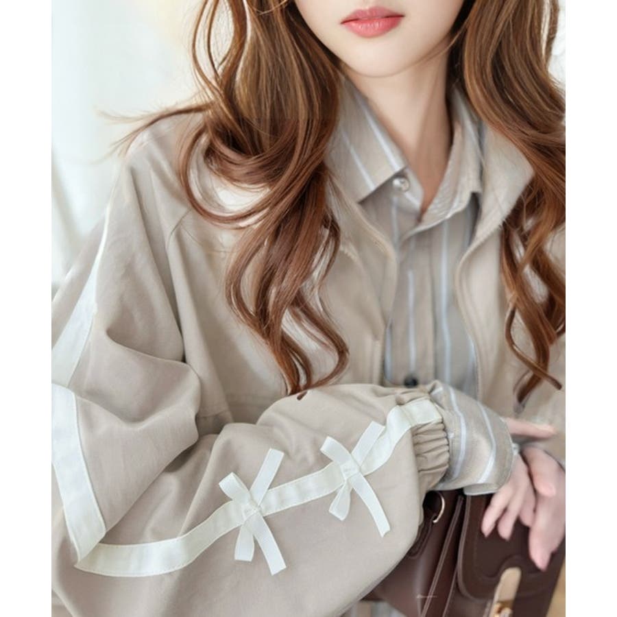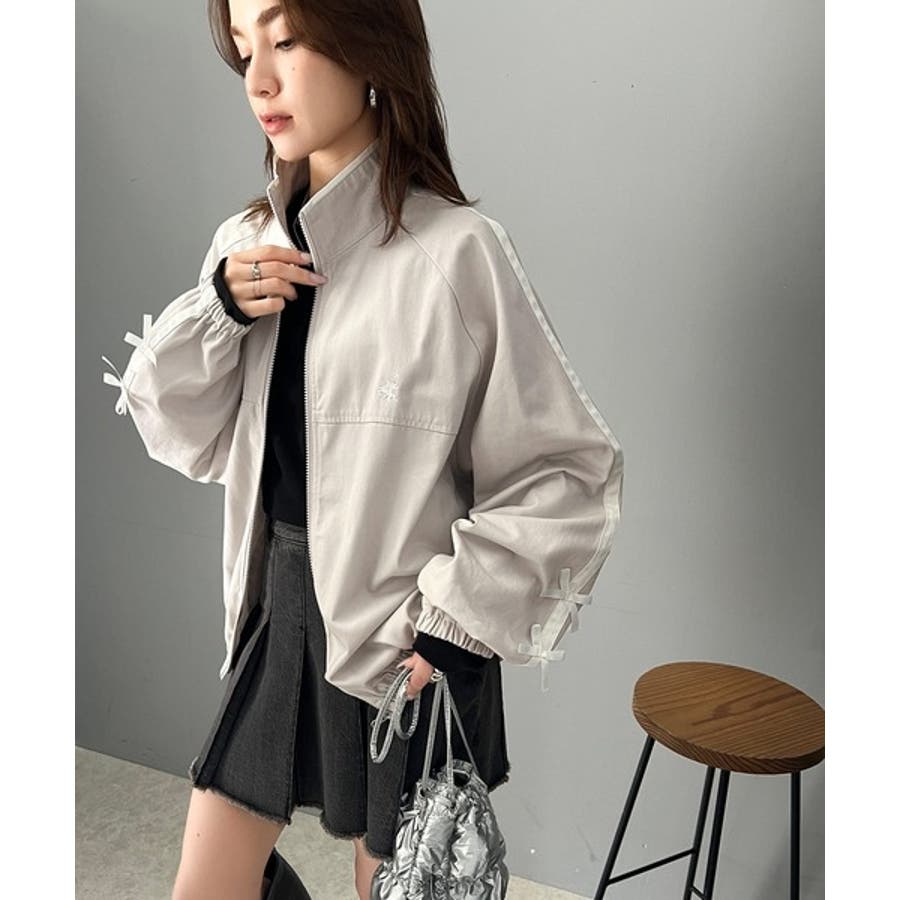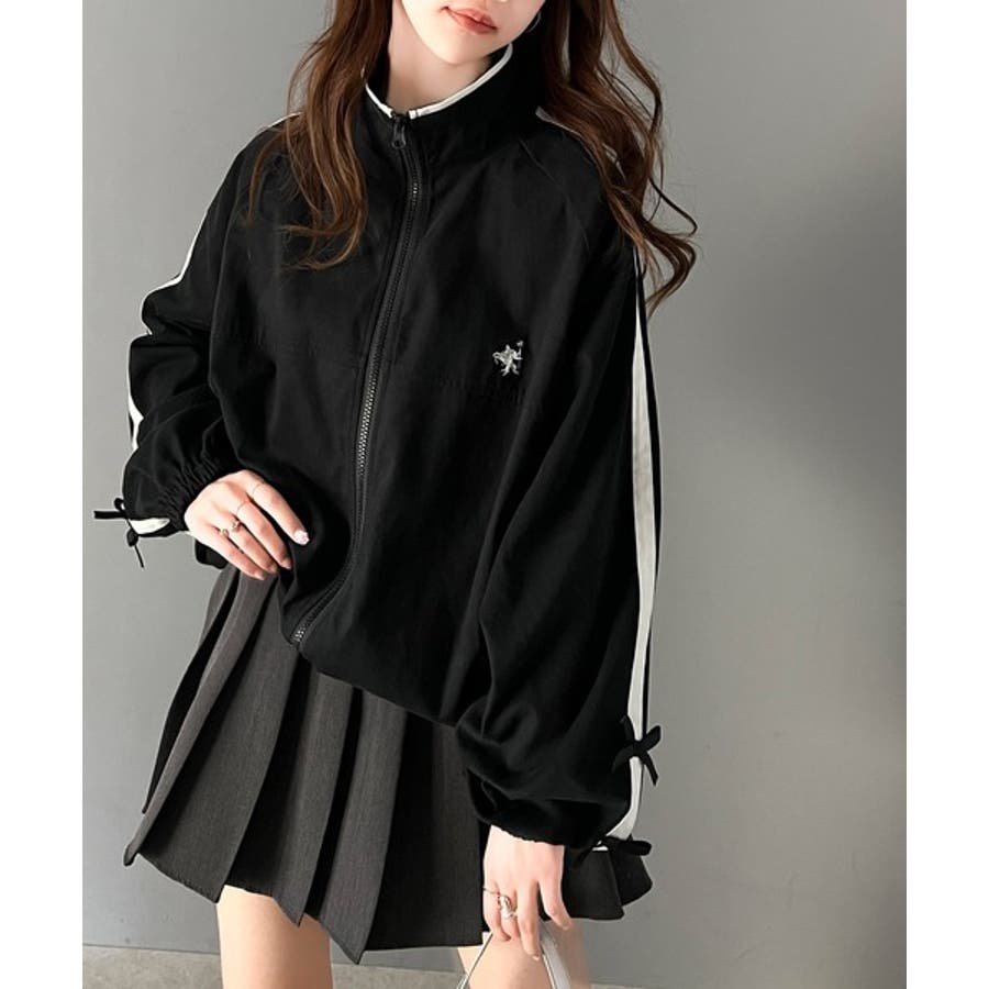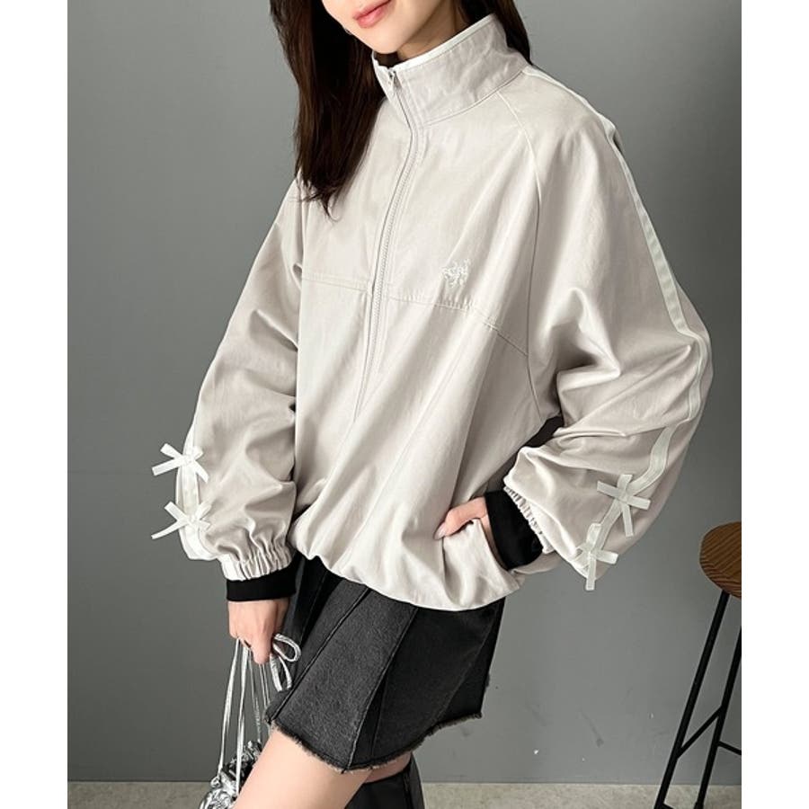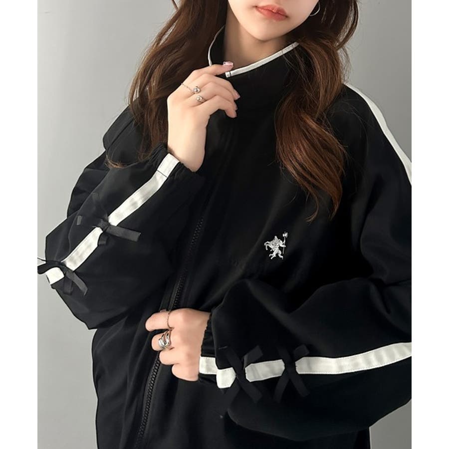 袖のサイドライン×リボンがトレンドライクなトラックジャケット。