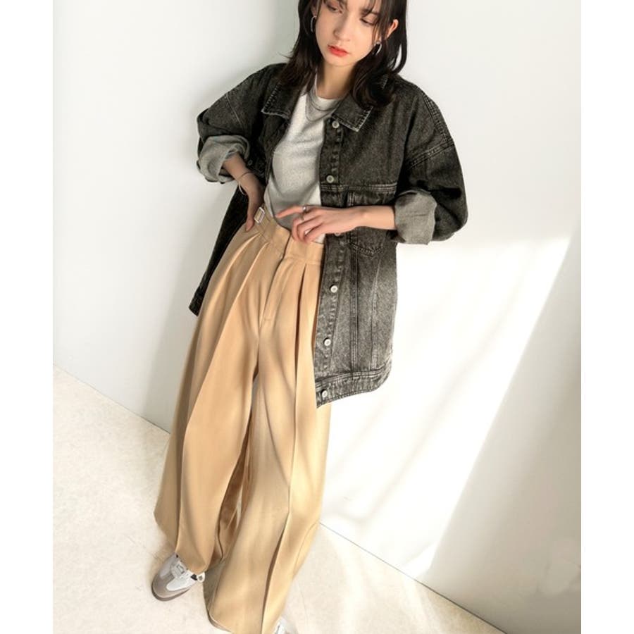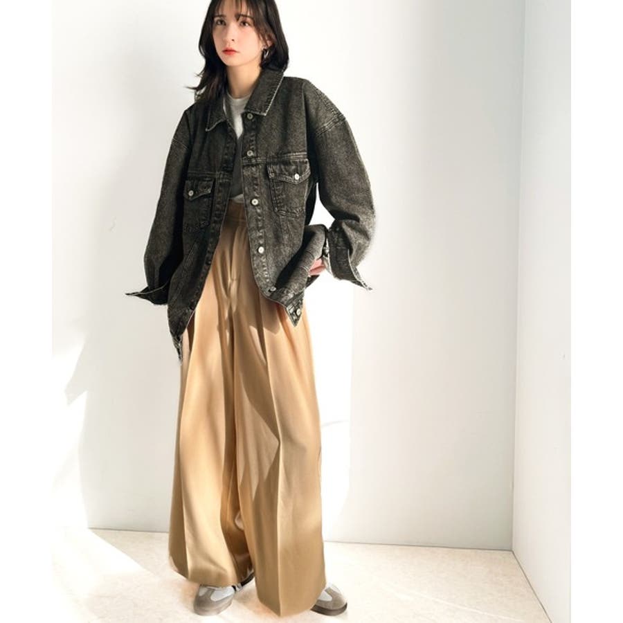 あえて同じトーンのカラーのワイドデニムパンツと合わせて