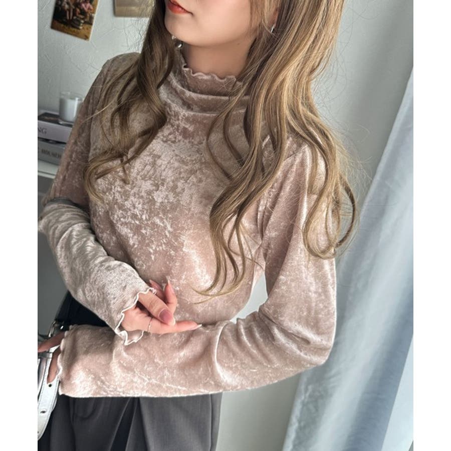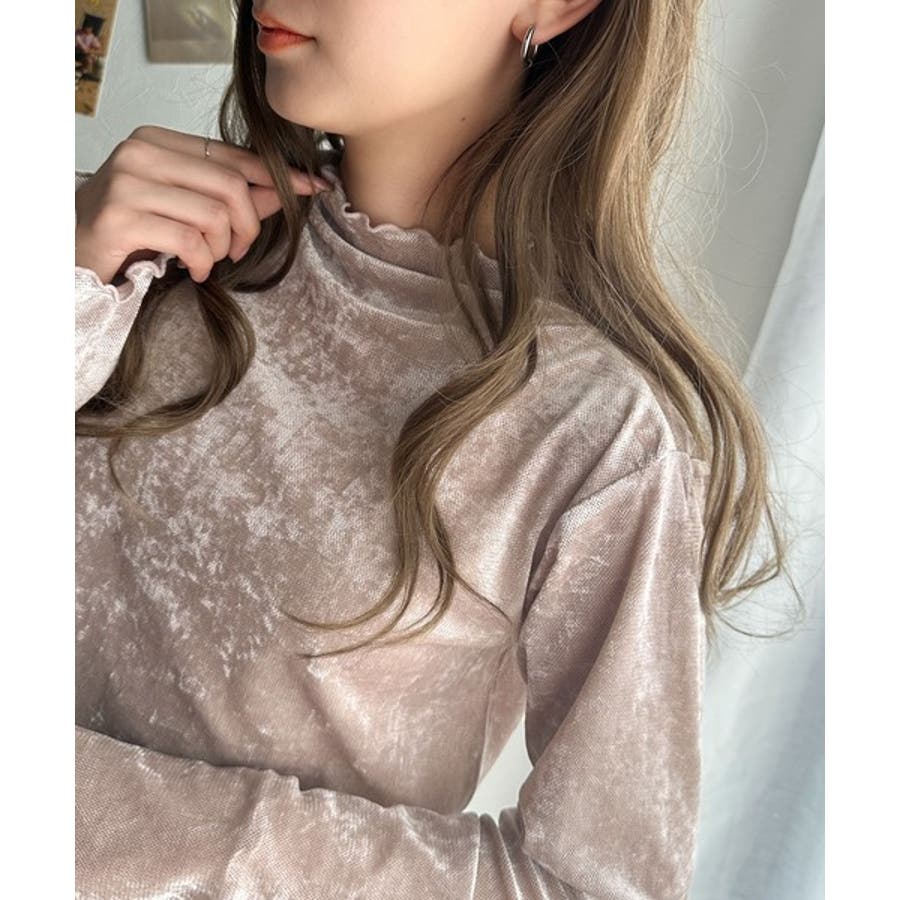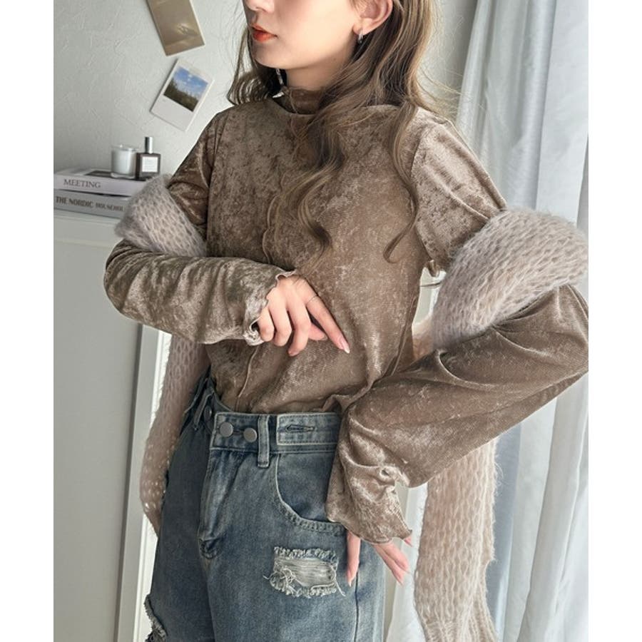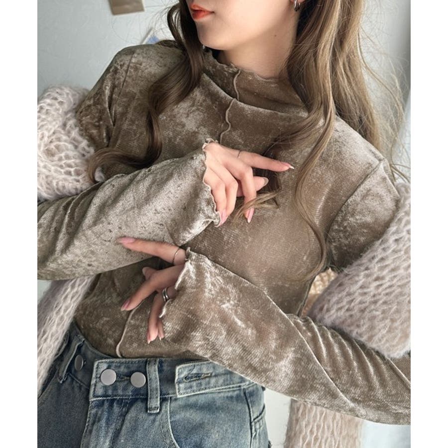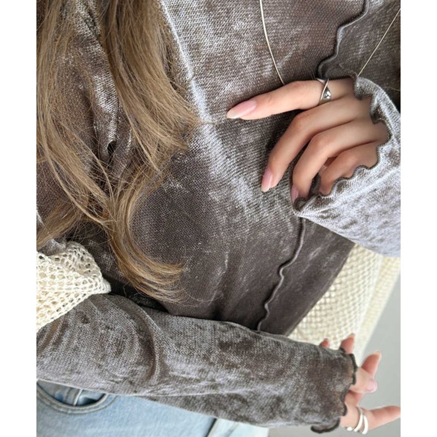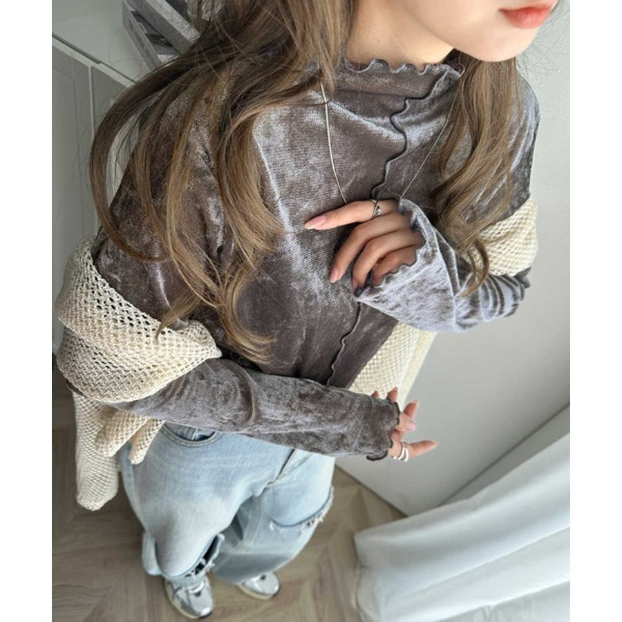 さり気ない透け感のあるベロア素材のメロートップス。