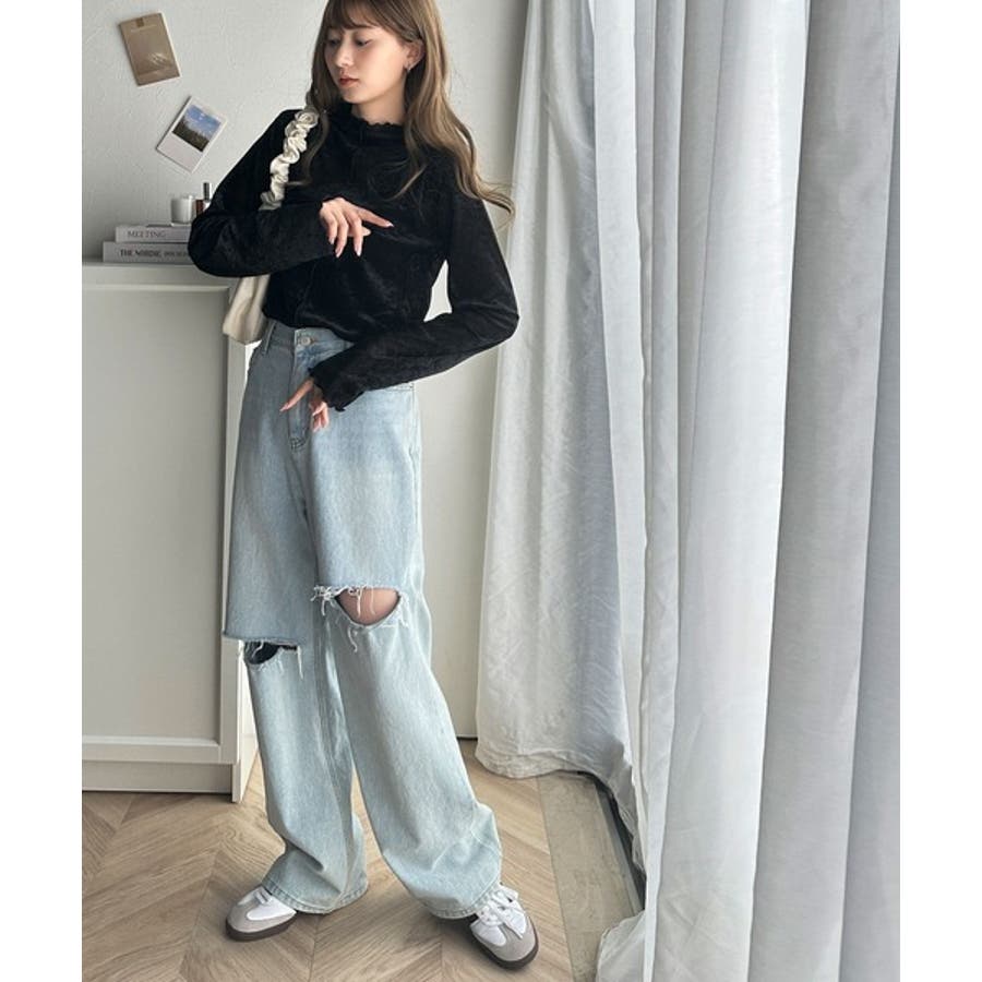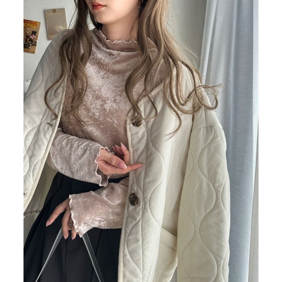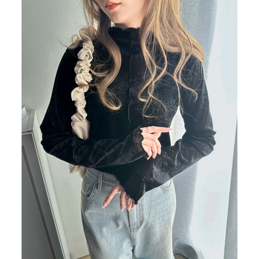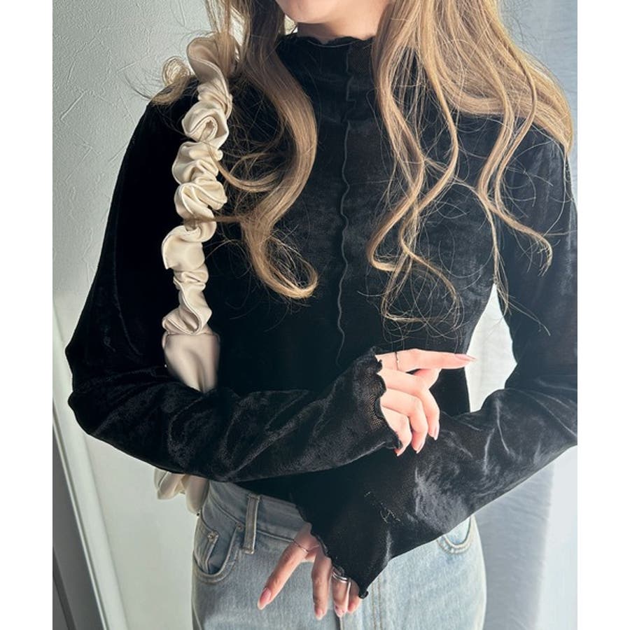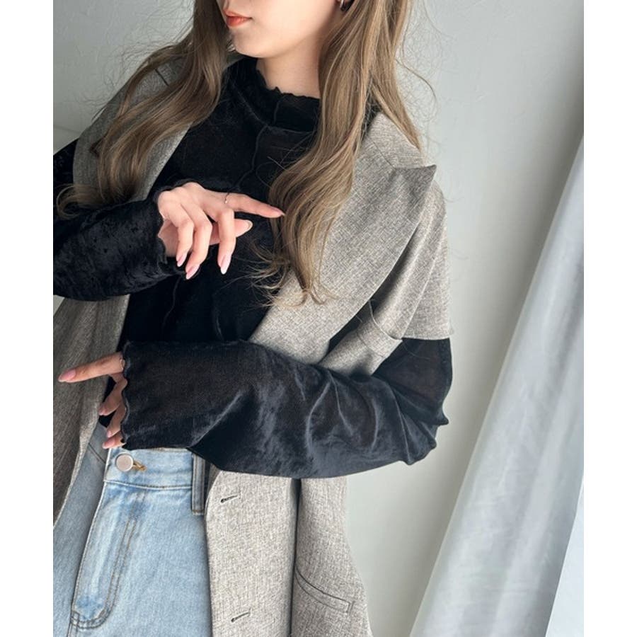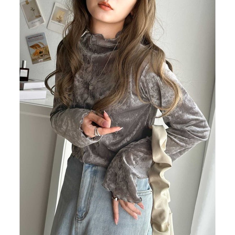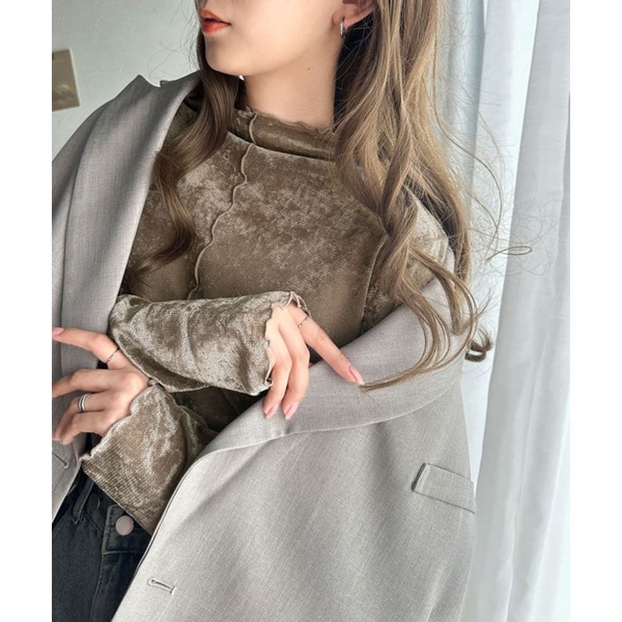さり気ない透け感のあるベロア素材のメロートップス。