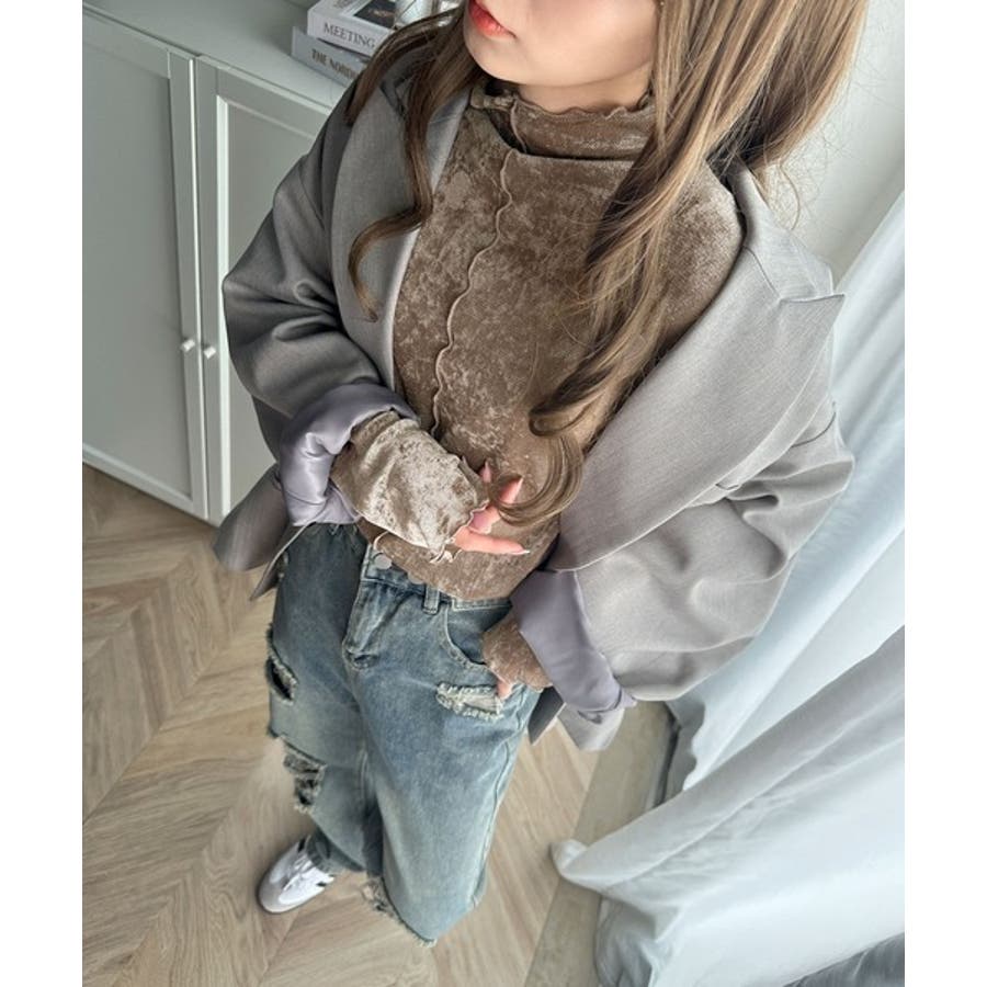メロー加工の袖や裾、襟元は様々なコーデで存在感を発揮し、