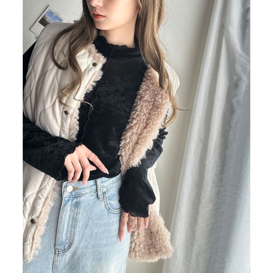 【ブラック】主役も引き立て役もこなす万能アイテム。前後2wayシアーベロアハイネックメロート…