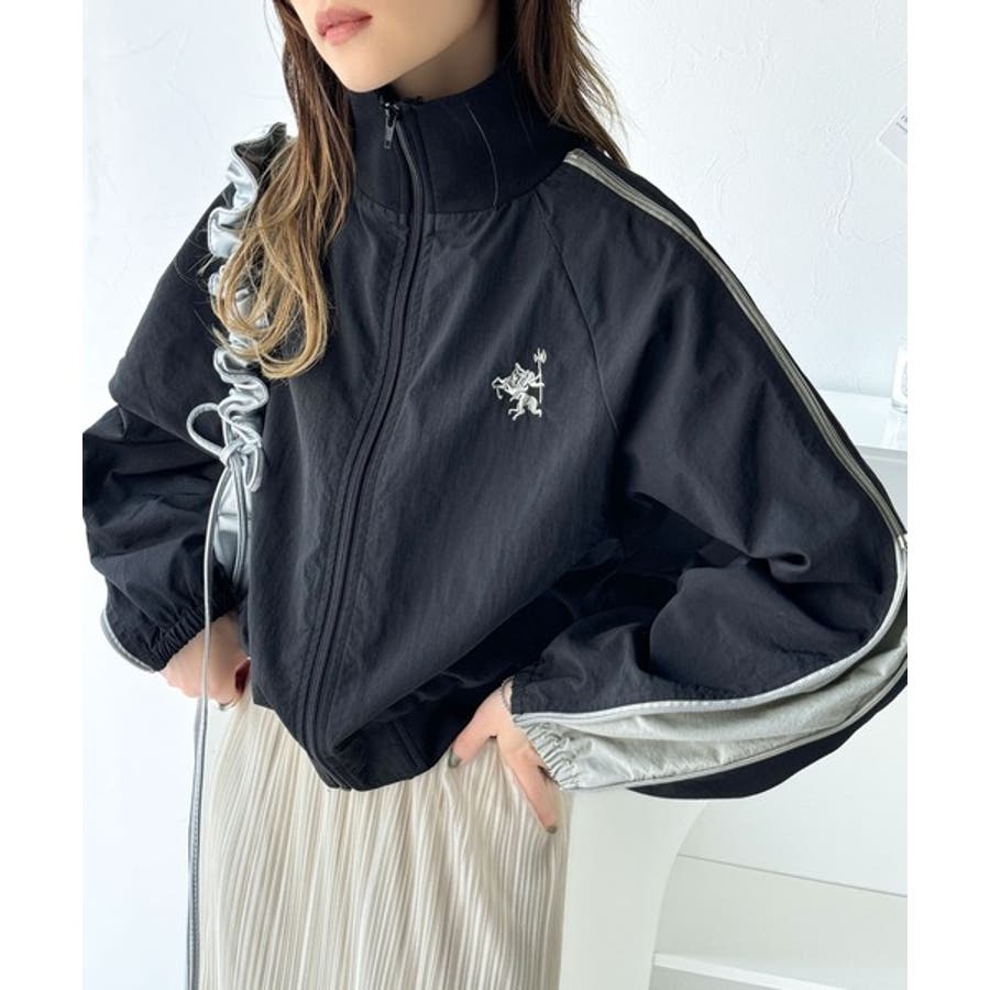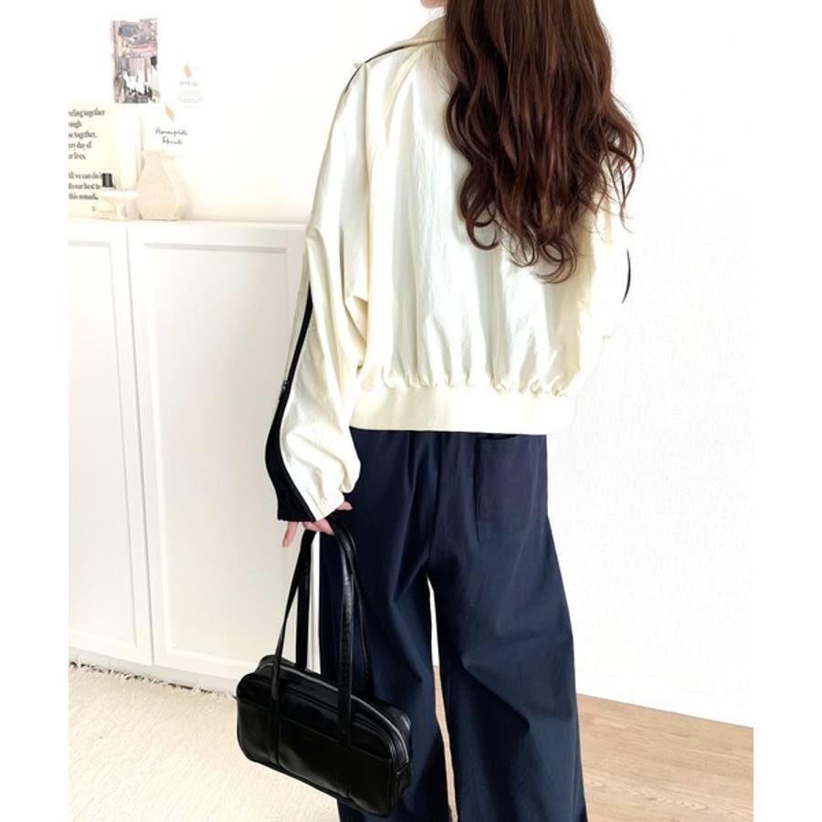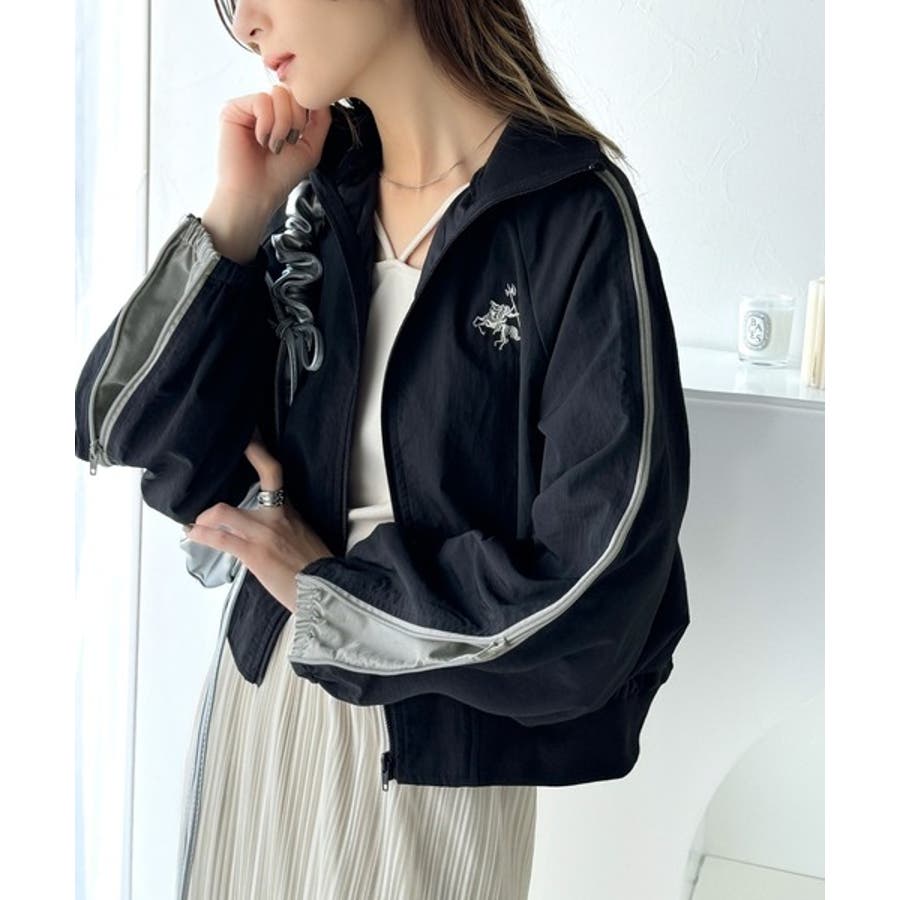 リブハイネックと配色の袖ラインがストリート感を演出するスポーティアイテム。