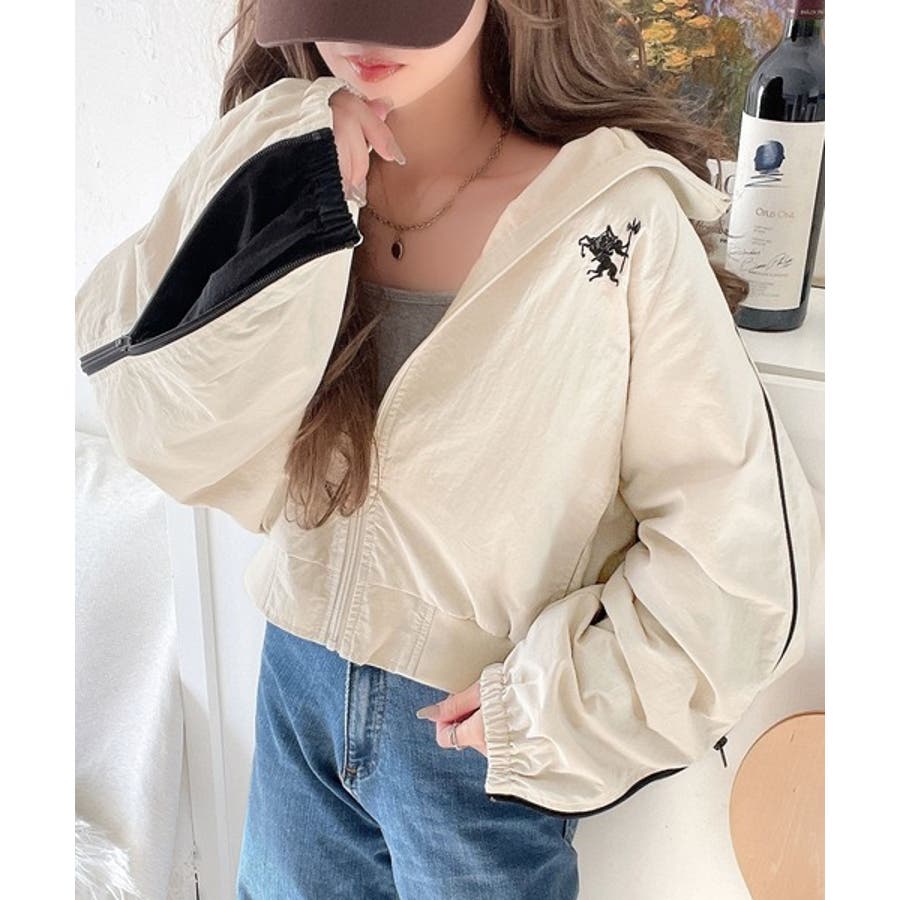 胸刺繍と同色で施されたジップデザインでこなれ感をプラスし