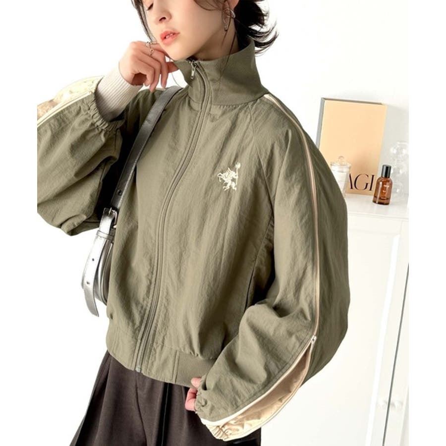 大人スポーティMIX。胸刺繍入り袖ファスナー配色ナイロンジャケット