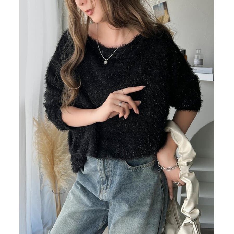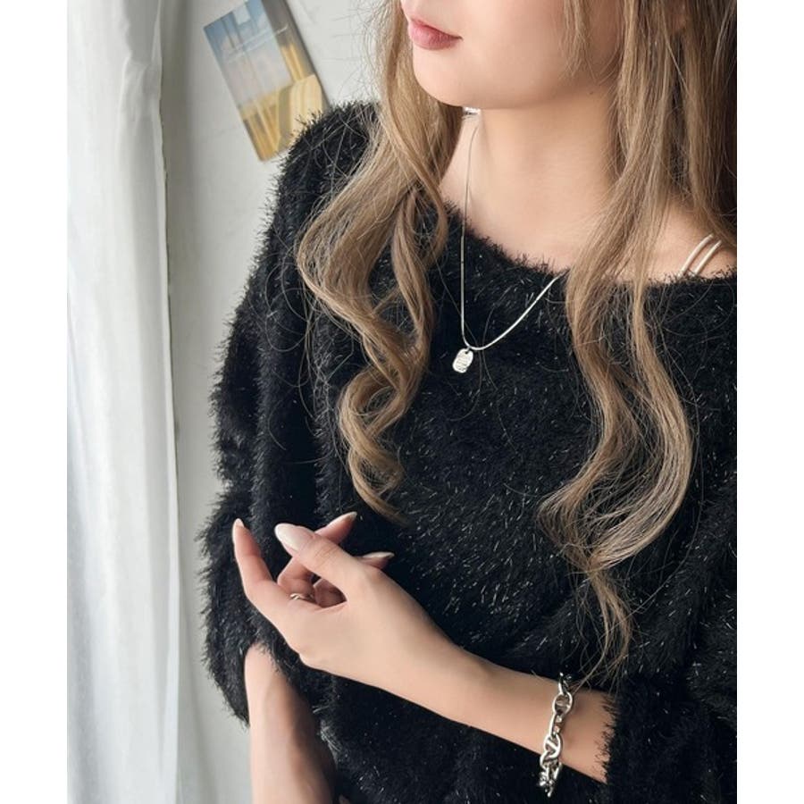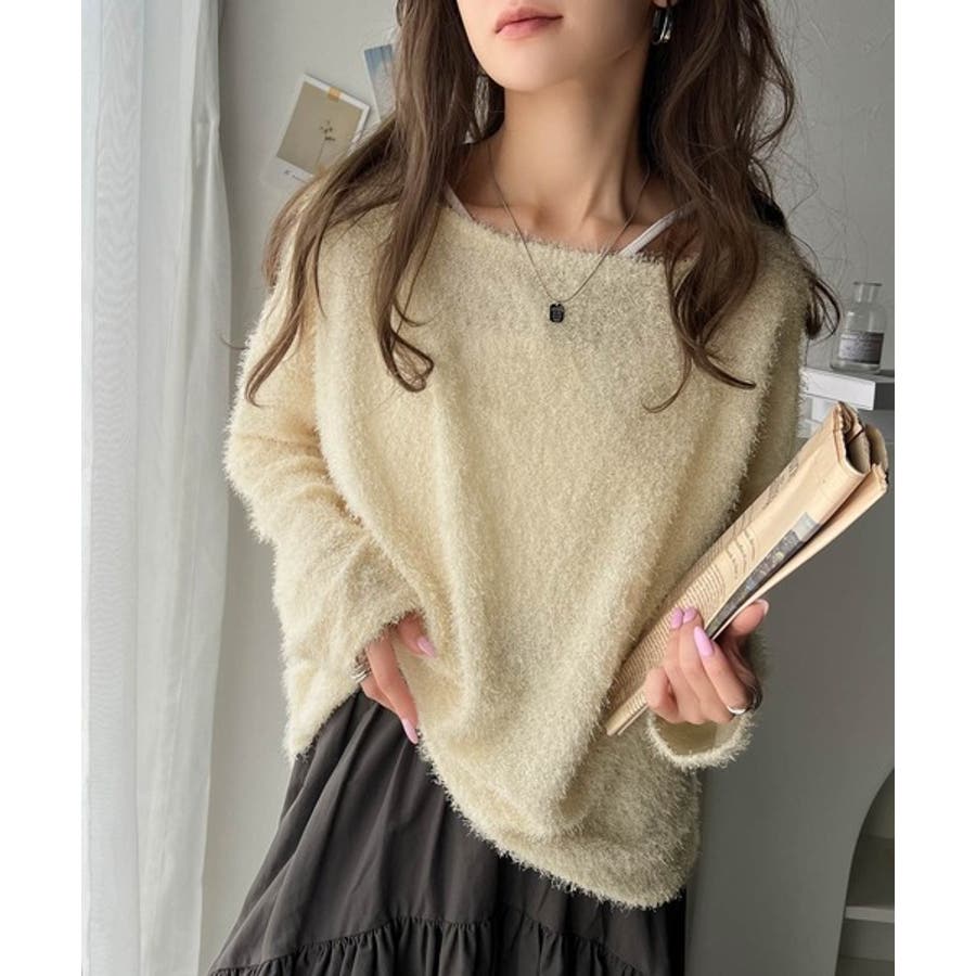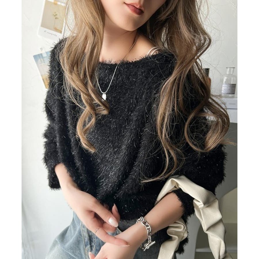 印象派大人レディ。ボートネックラメシャギーニットプルオーバー