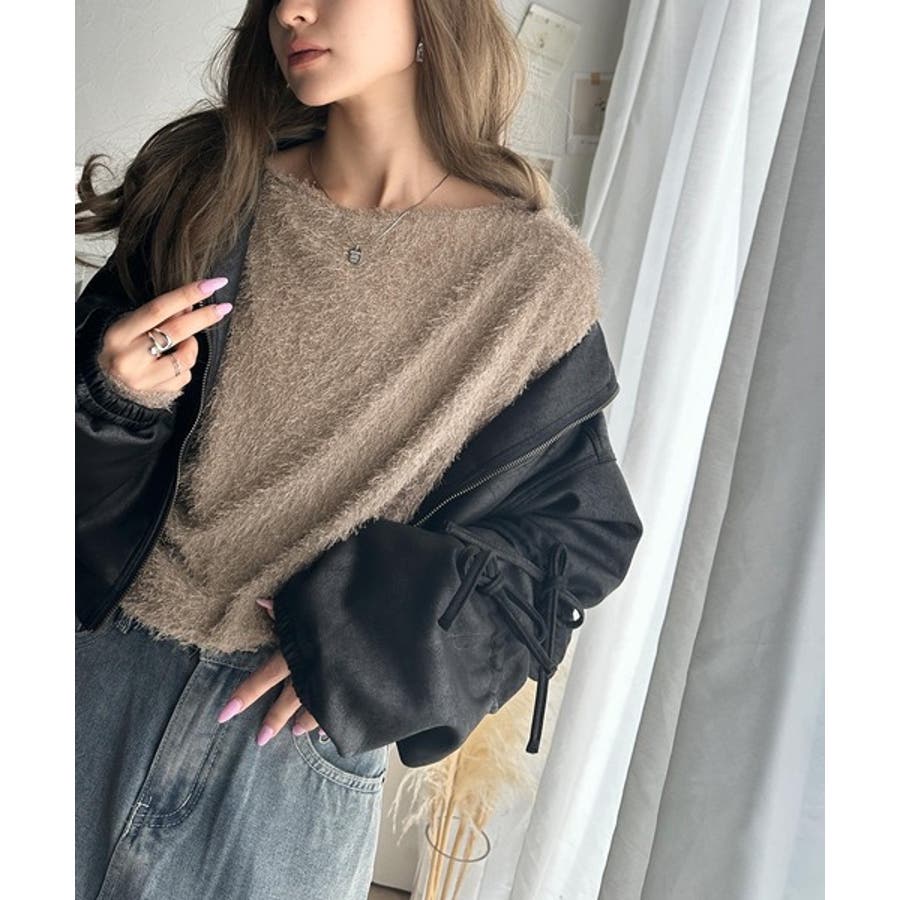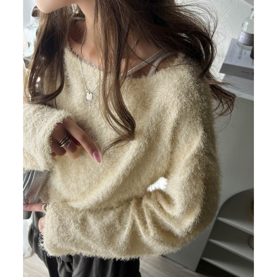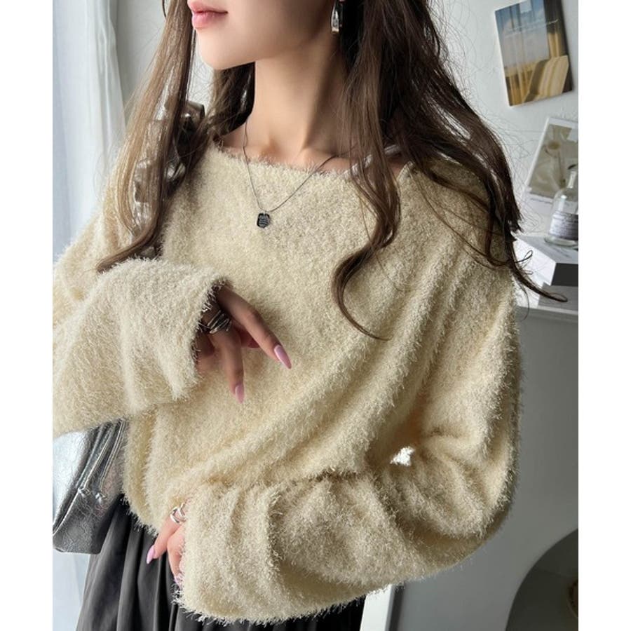柔らかなシャギーニット素材は肌触りも抜群で、着心地も抜群。