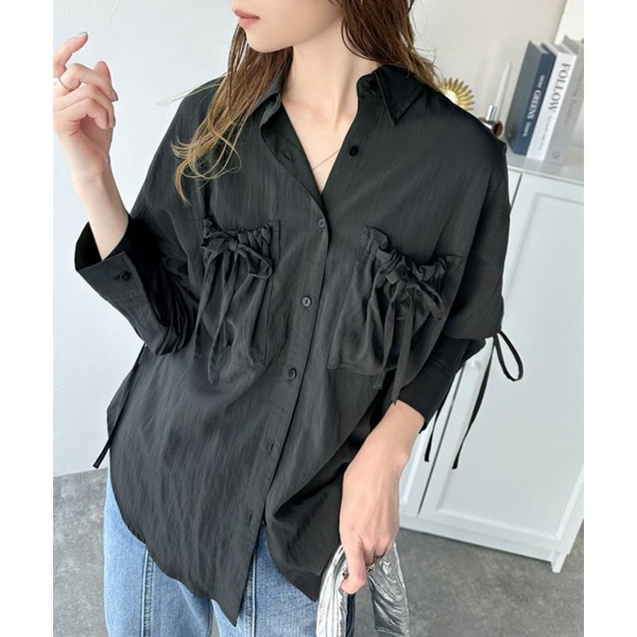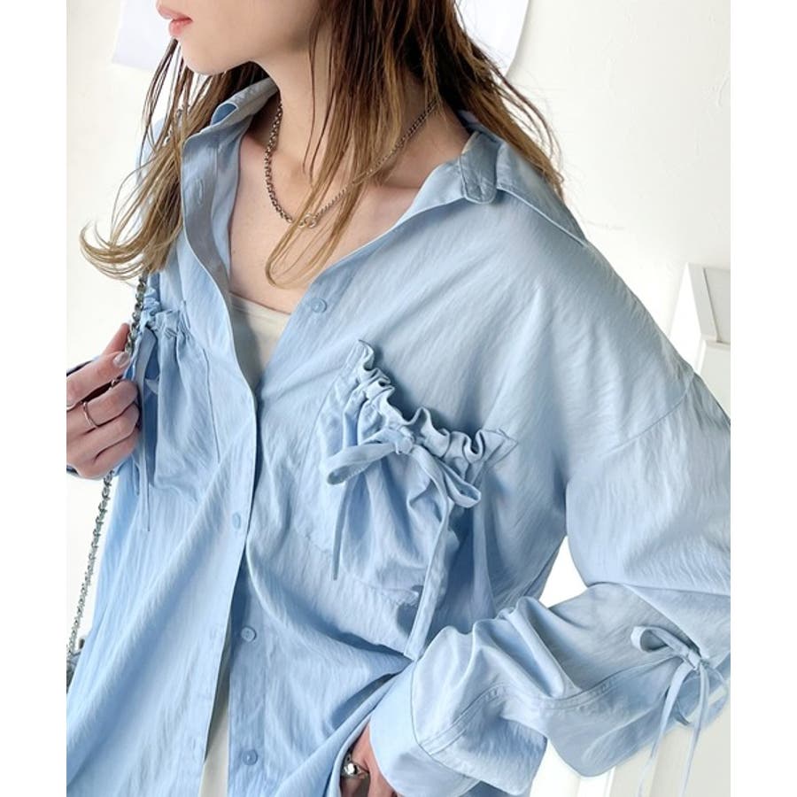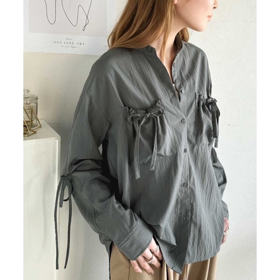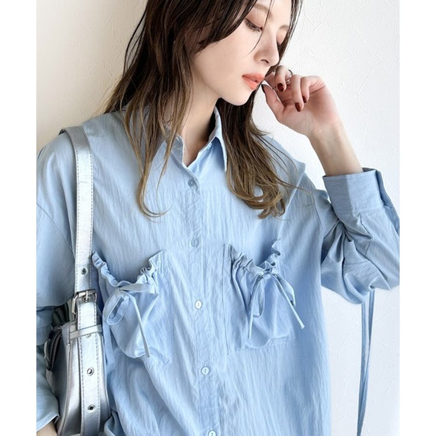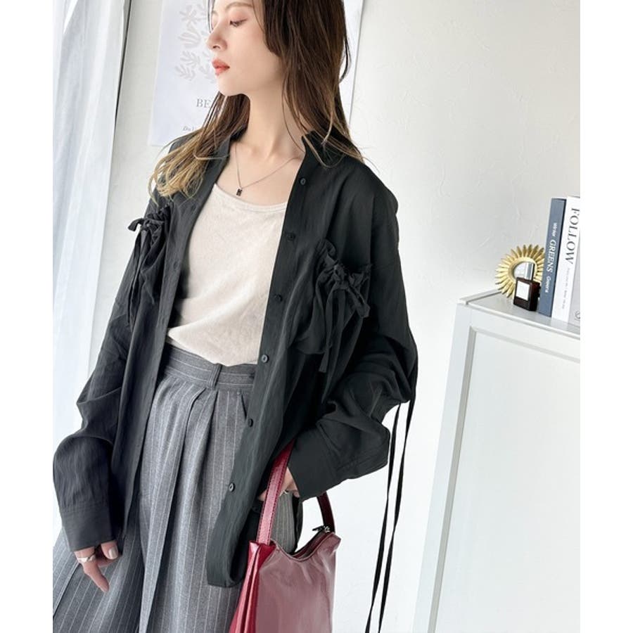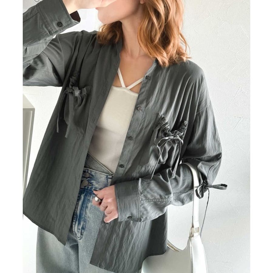 大人の甘さ薫る上品シャツ。衿2wayポケットリボンシャツ(長袖)