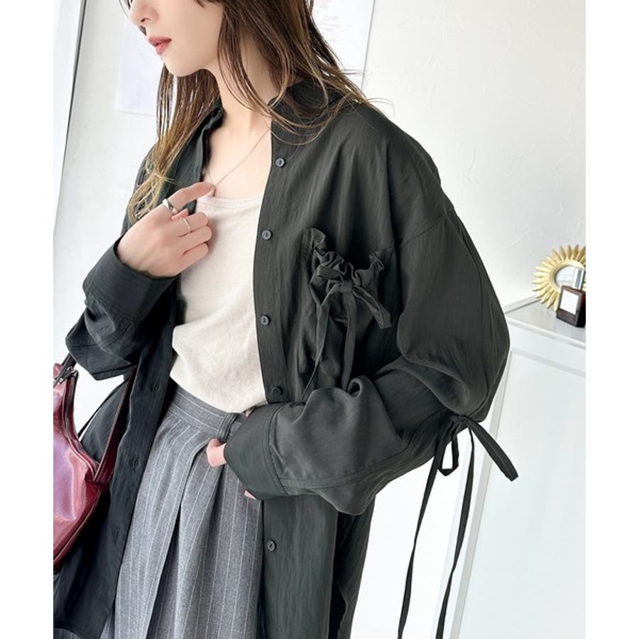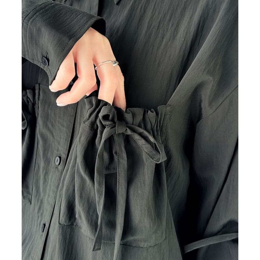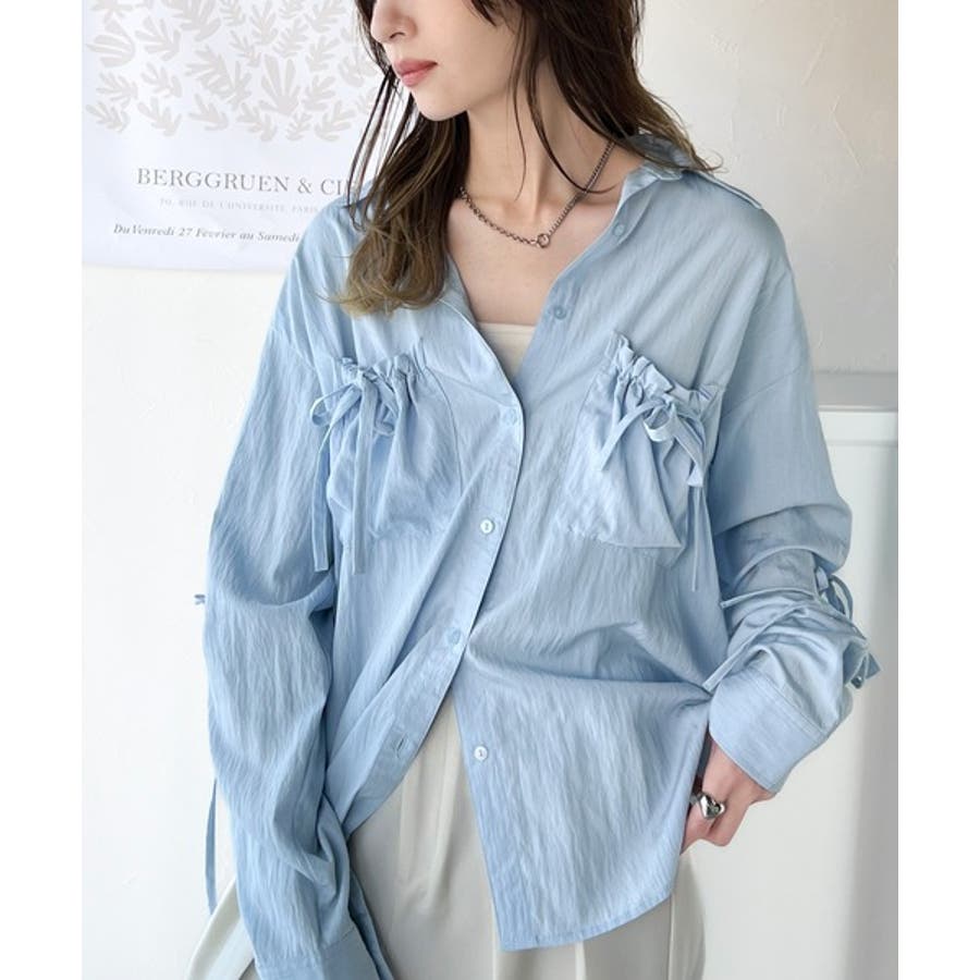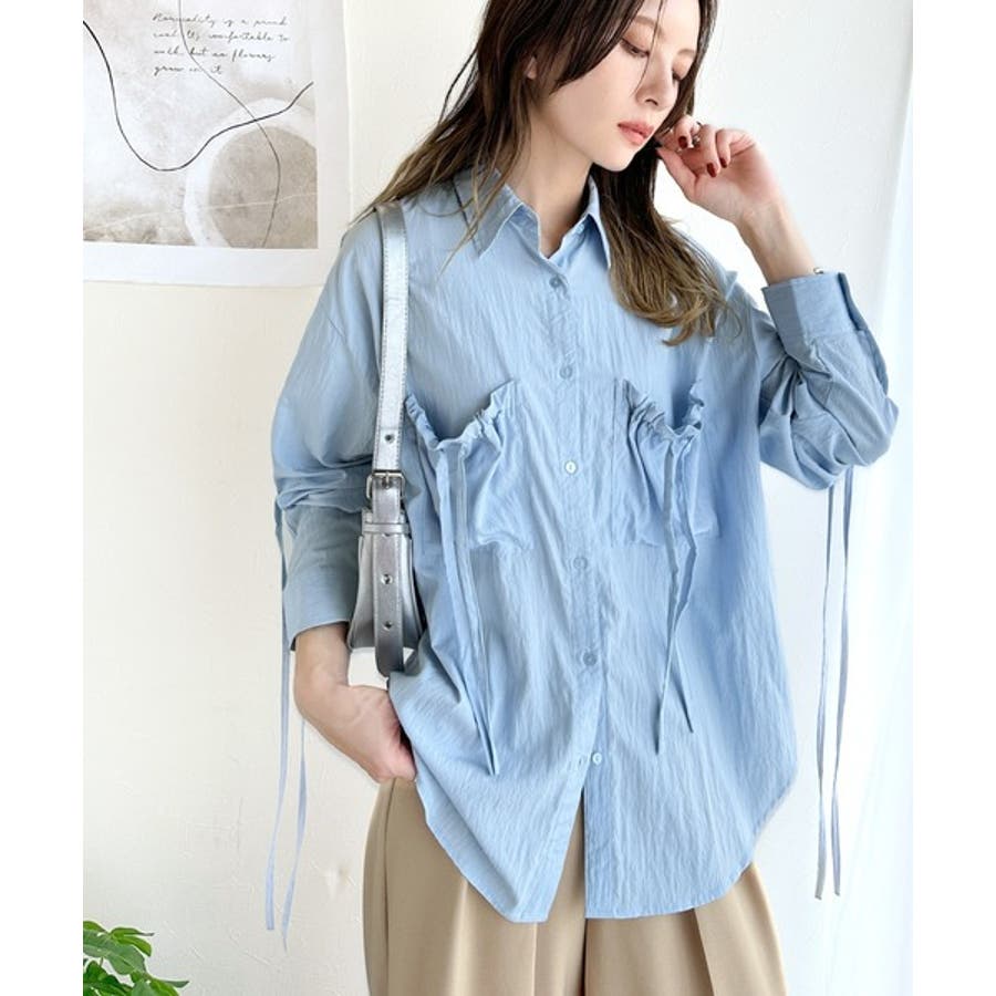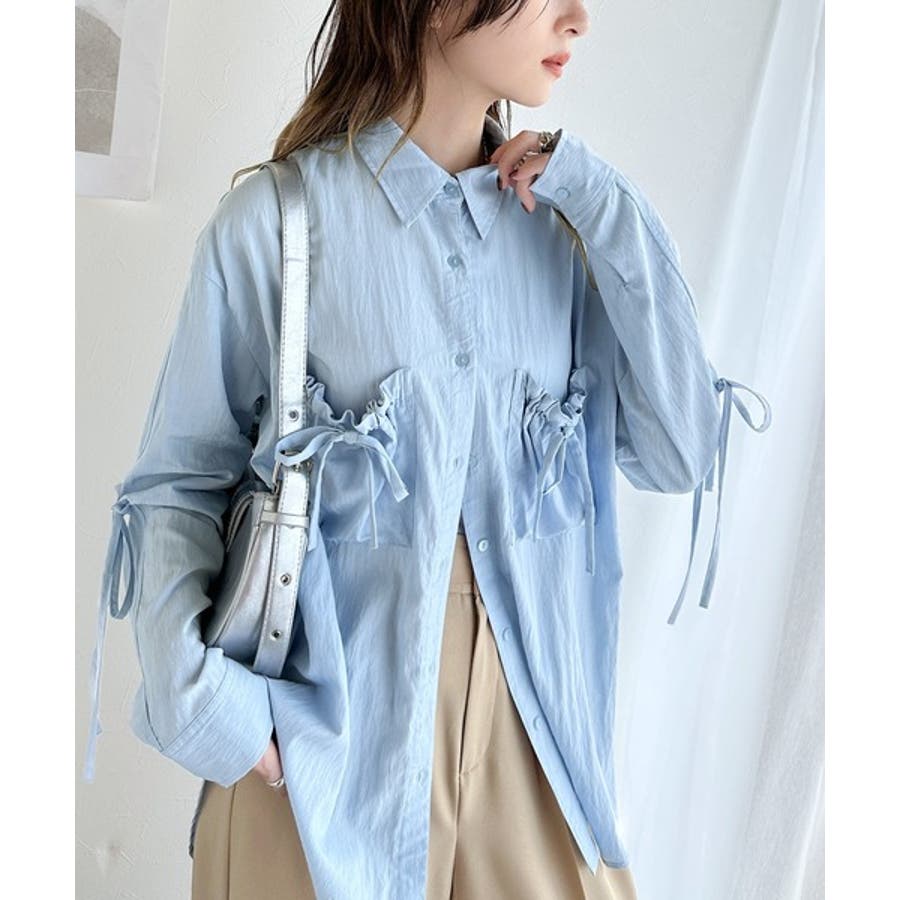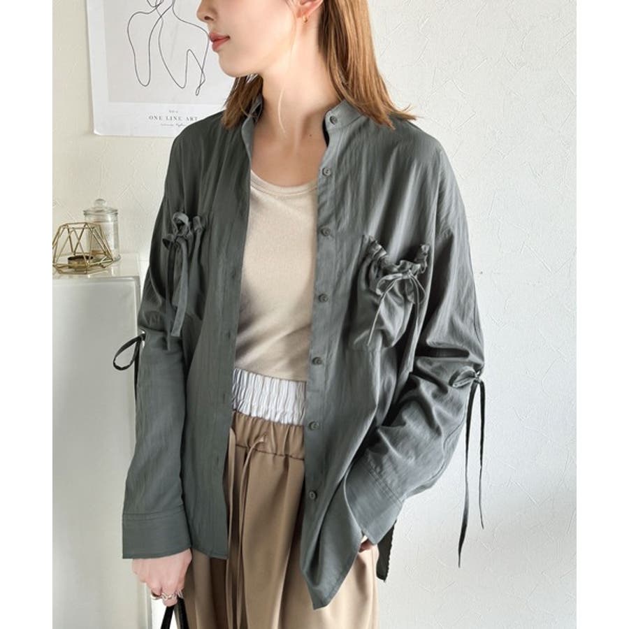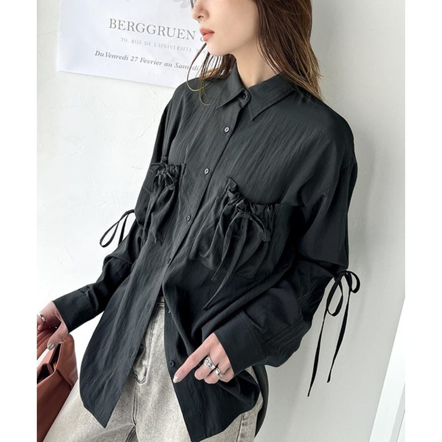大人の甘さ薫る上品シャツ。衿2wayポケットリボンシャツ(長袖)