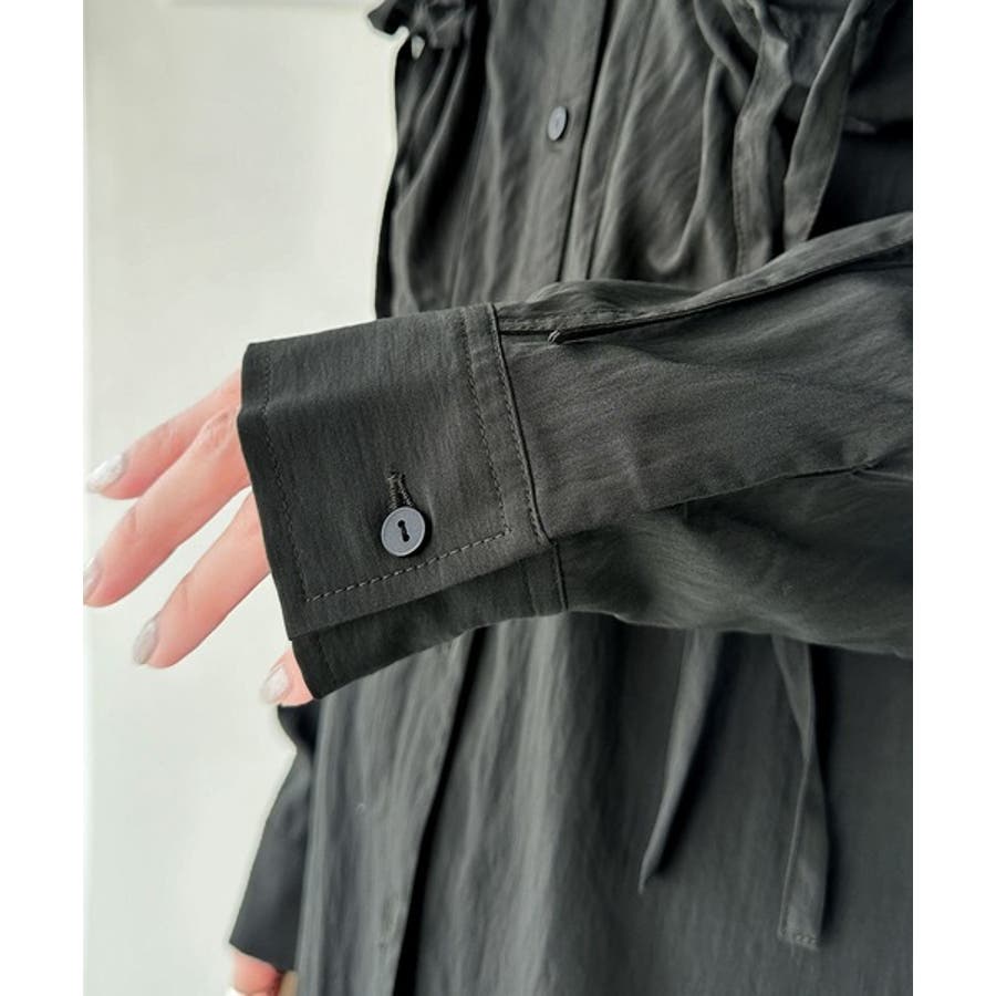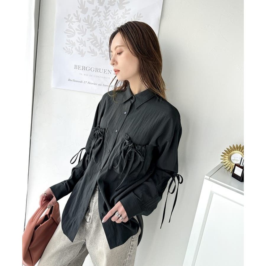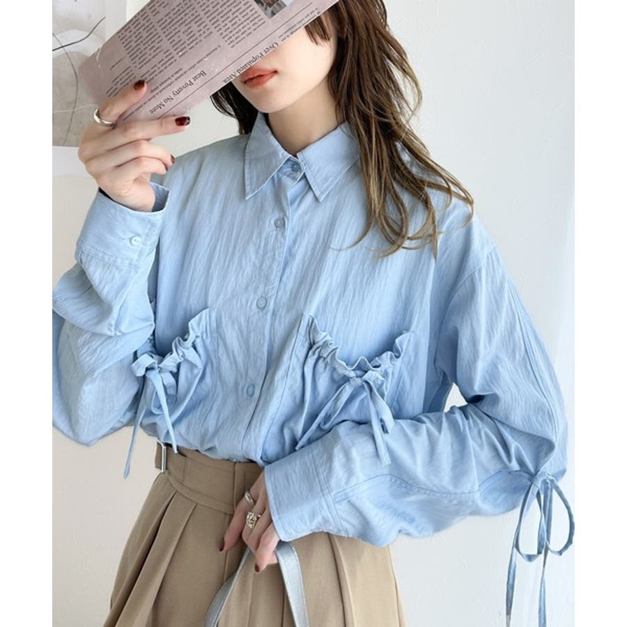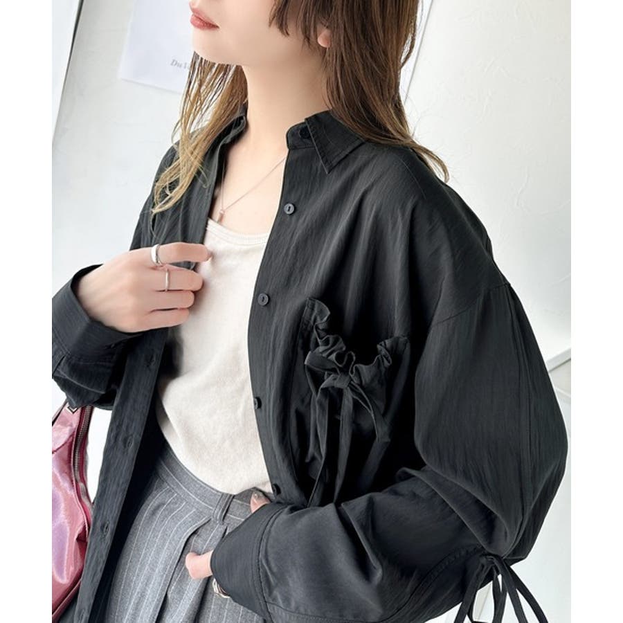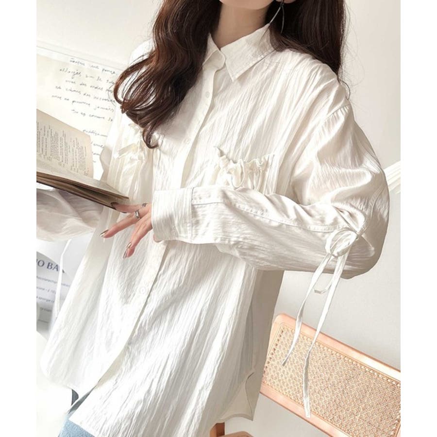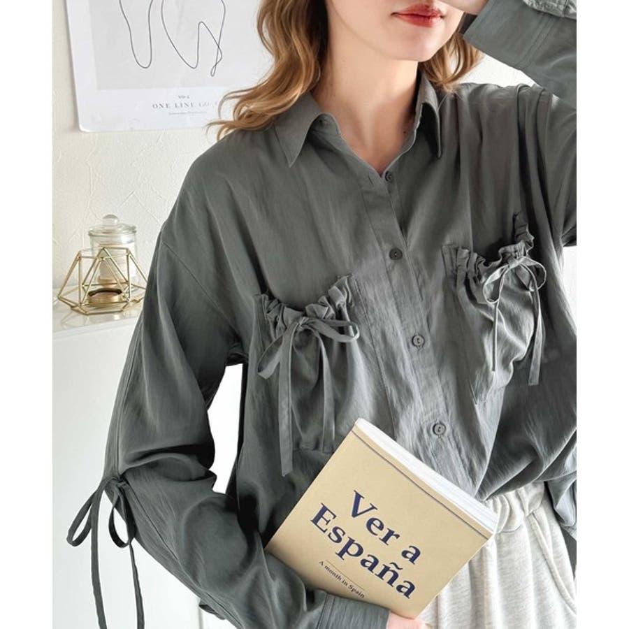 大人の甘さ薫る上品シャツ。衿2wayポケットリボンシャツ(長袖)