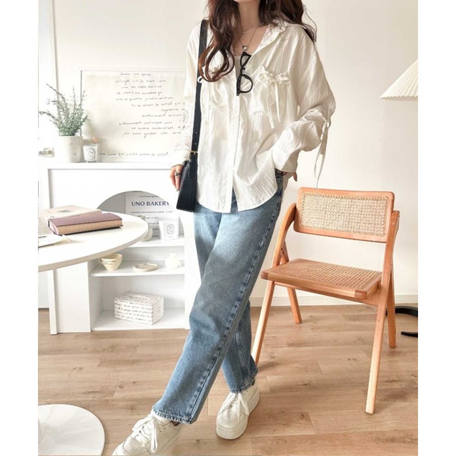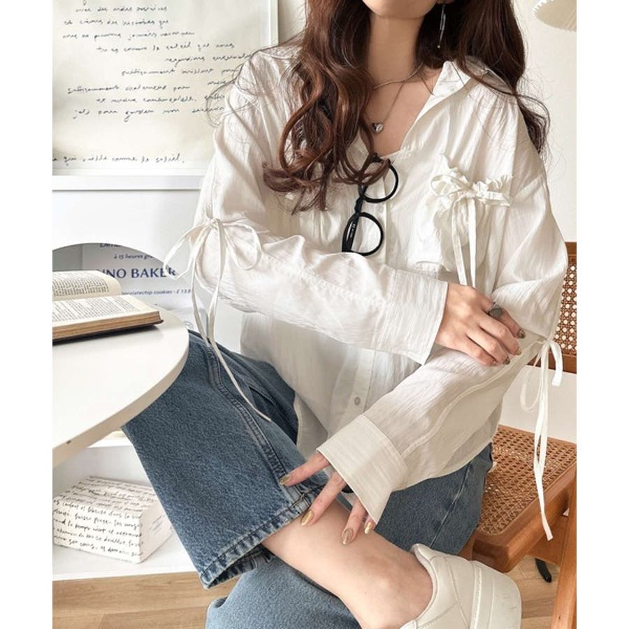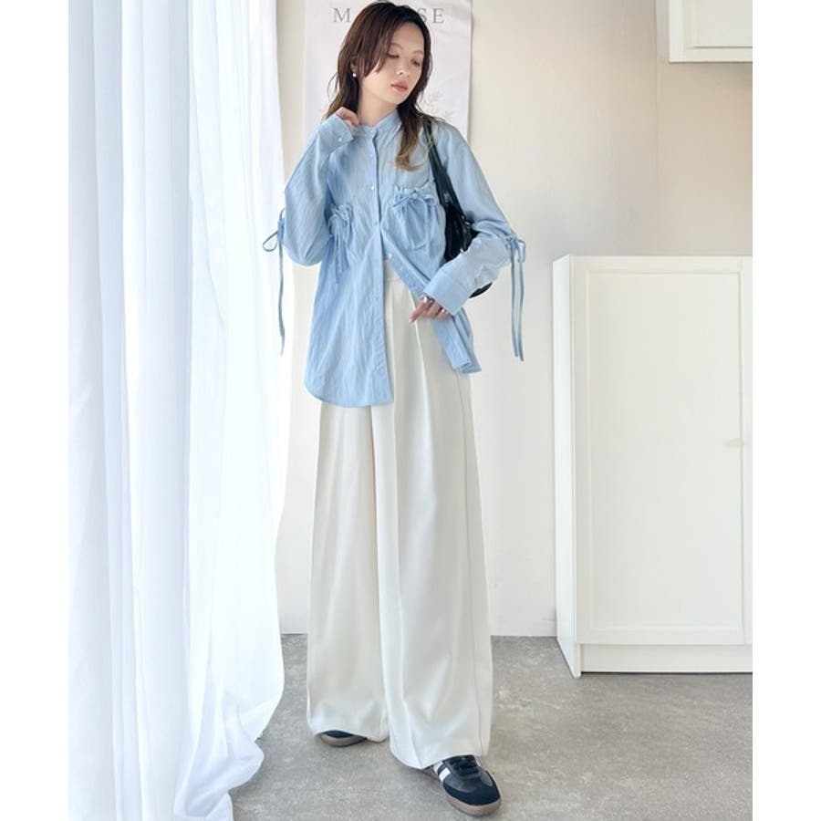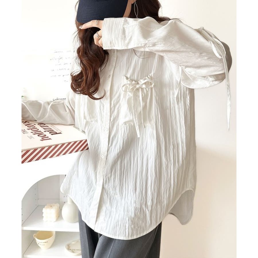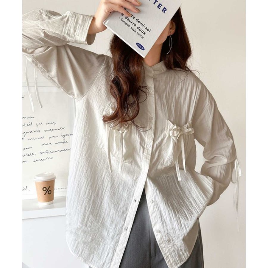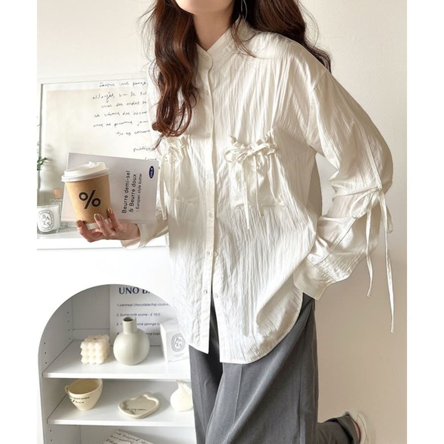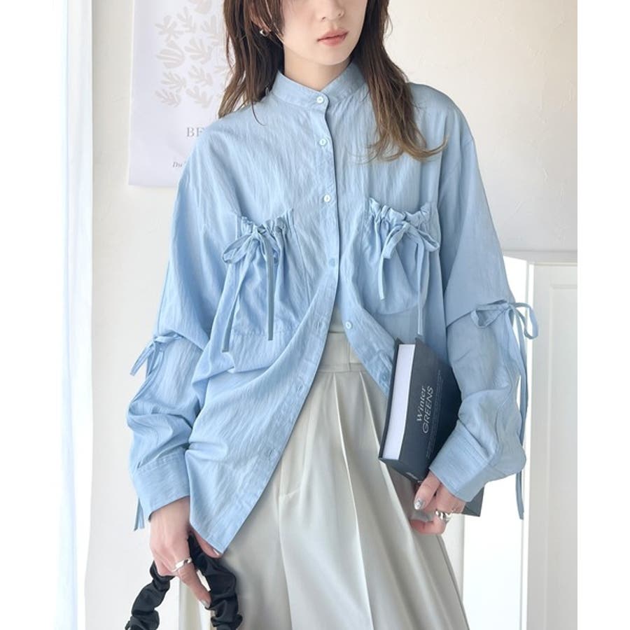 大人可愛いリボンが映える、ゆるっと着こなす2wayデザインシャツ。