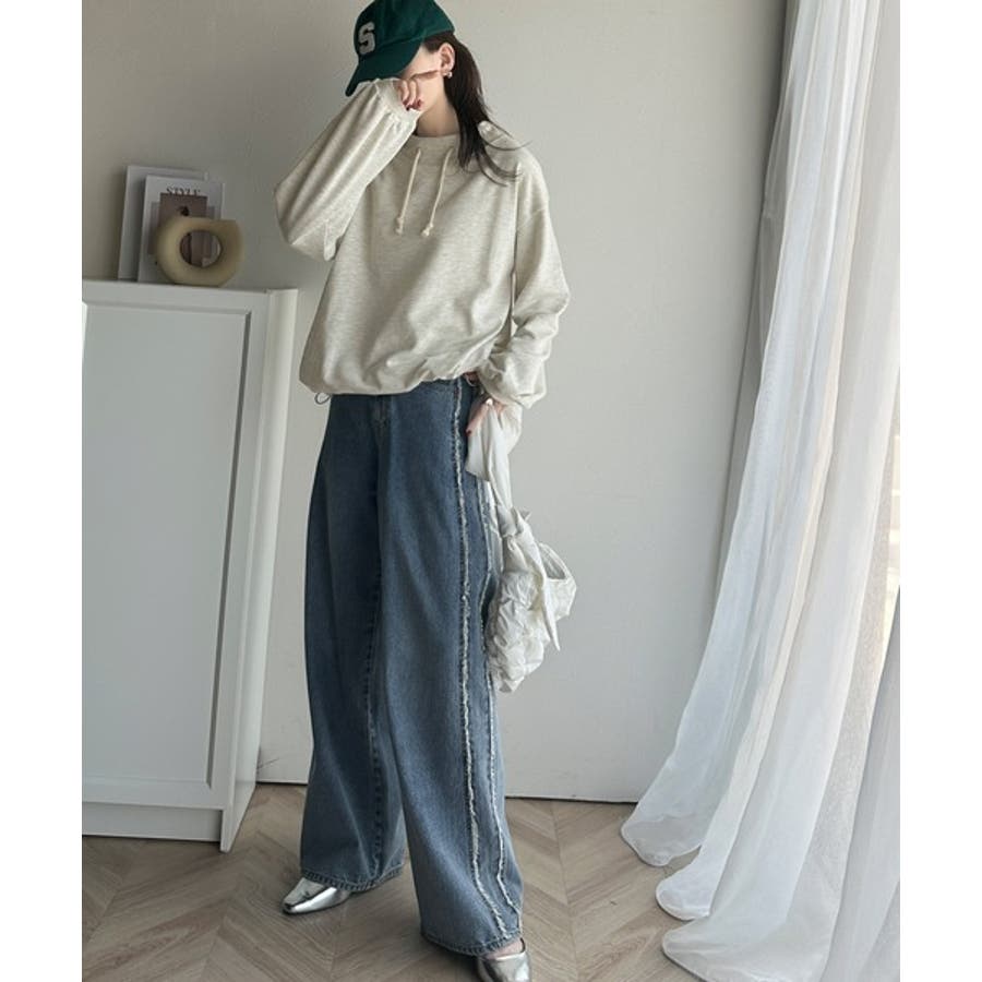 例えば、デニムパンツを合わせれば、カジュアルなデイリーコーデに。