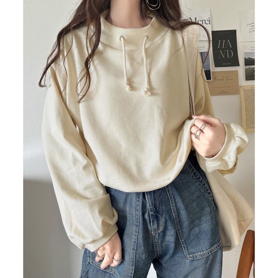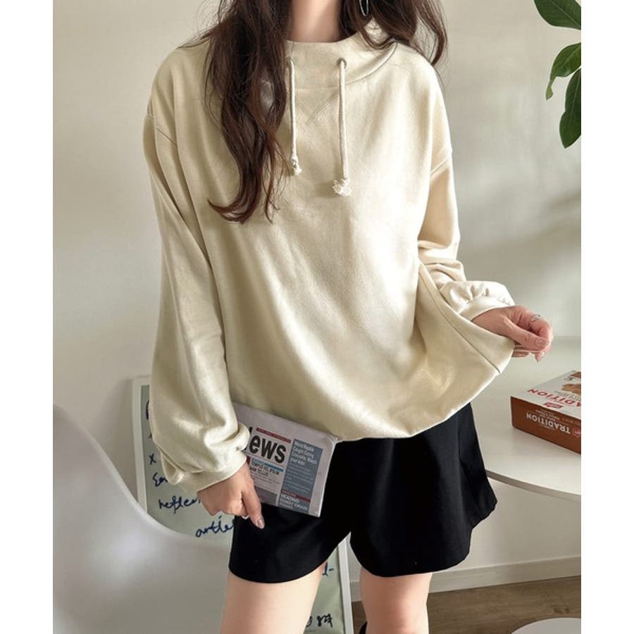 大人カジュアルをアップデート。フェイクフードスタンドネック裏毛プルオーバー