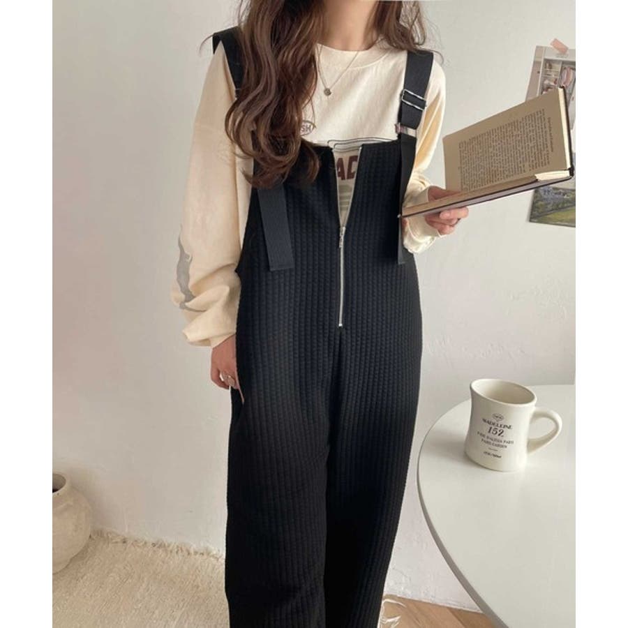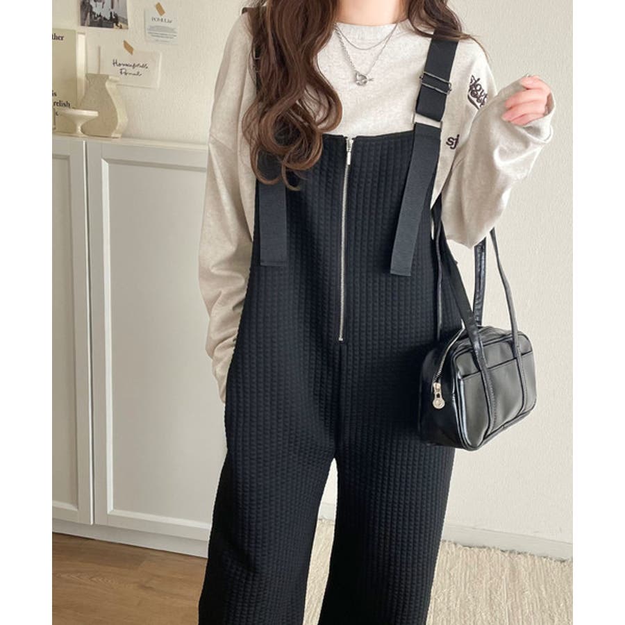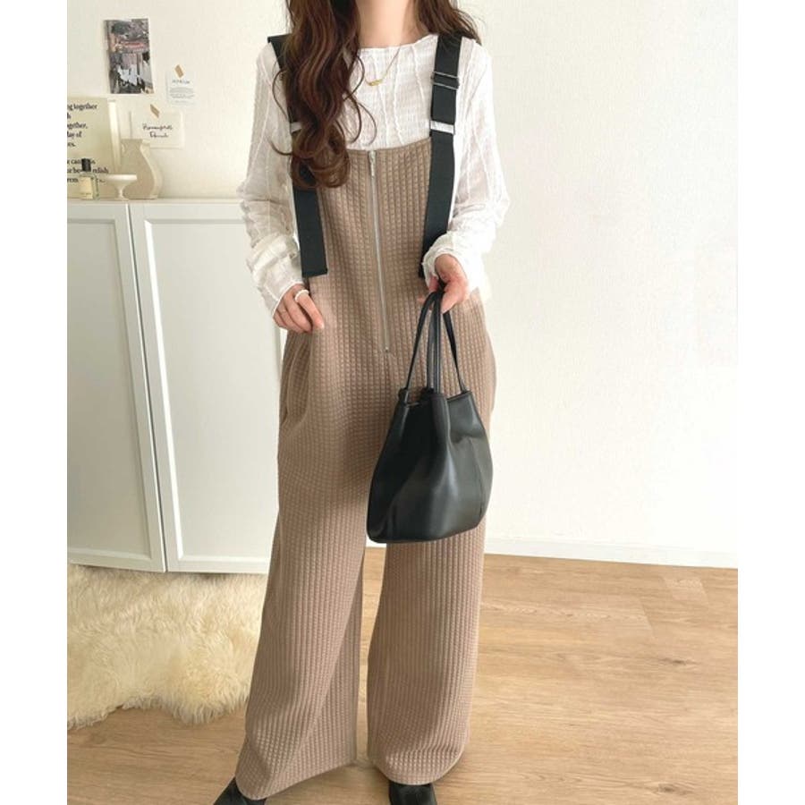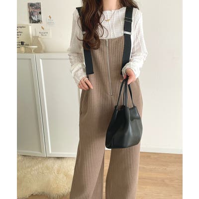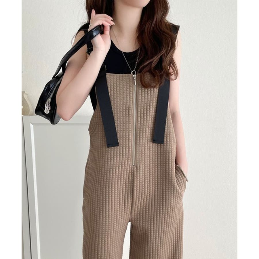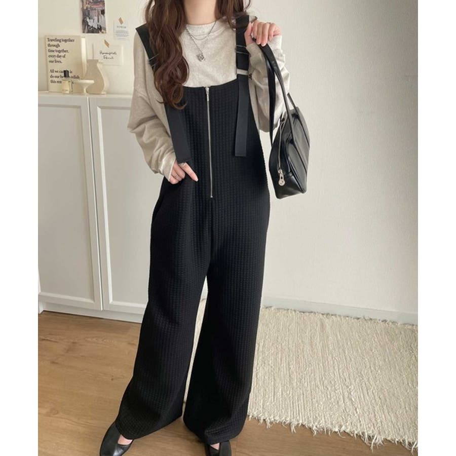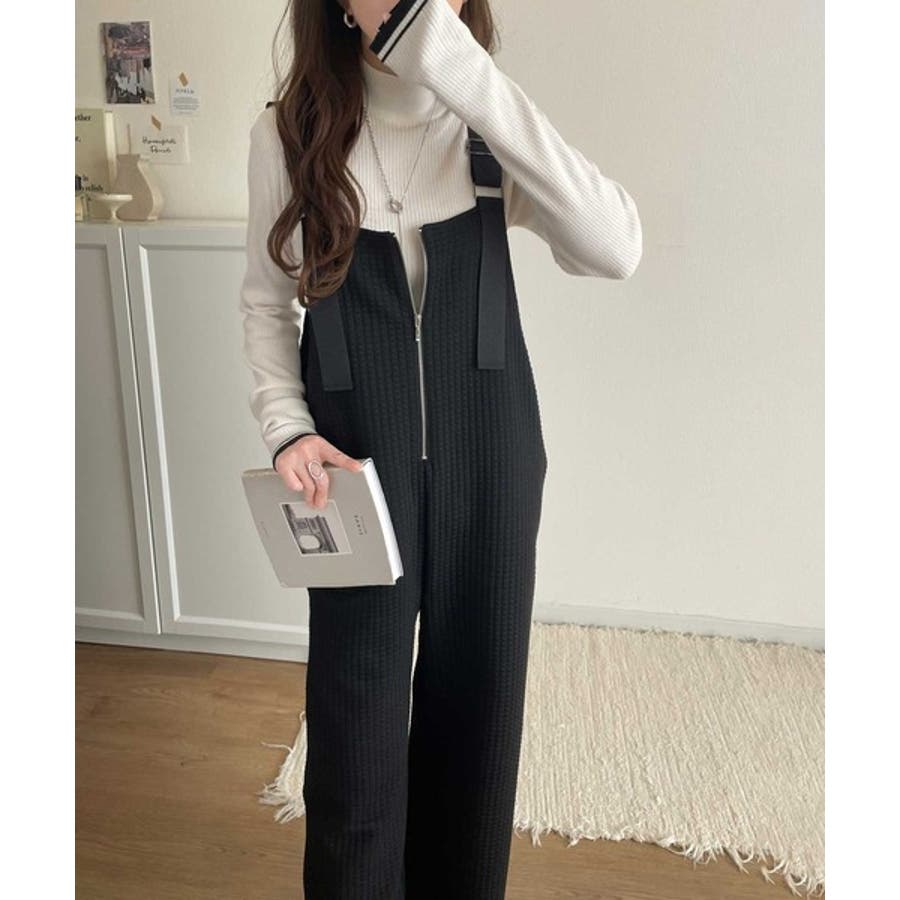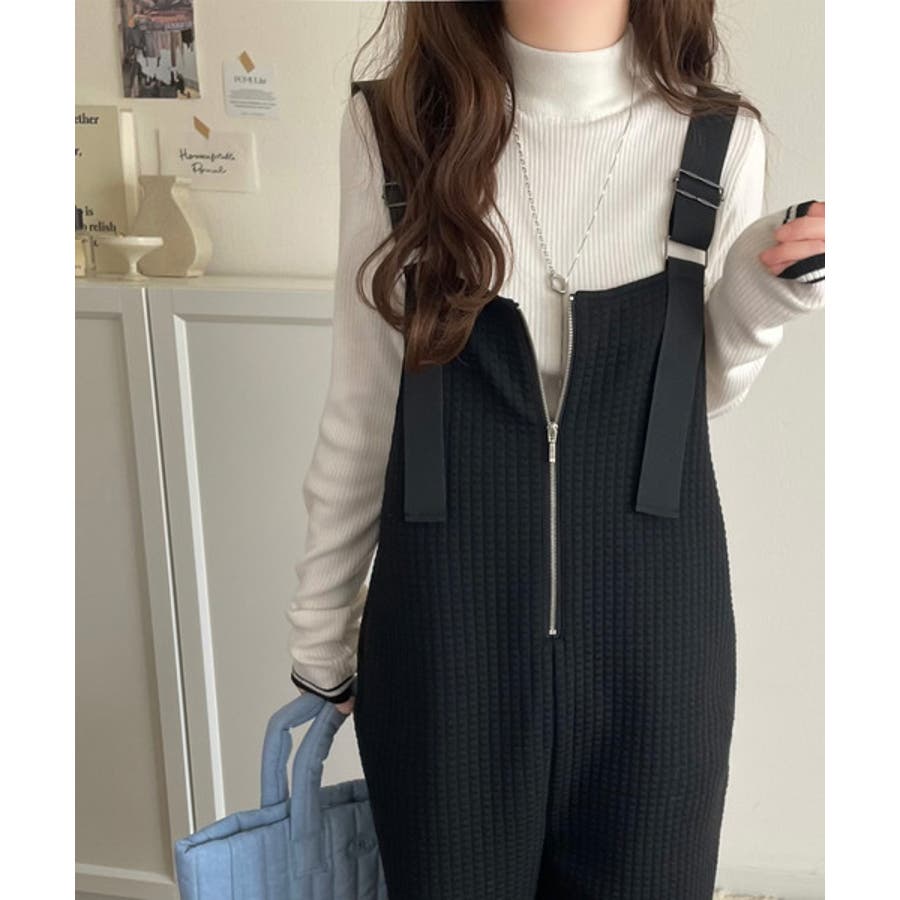 この秋冬のマストアイテム!膨れジャガードフロントジップサロペットパンツ