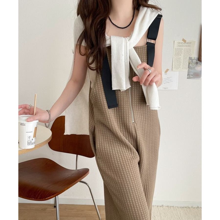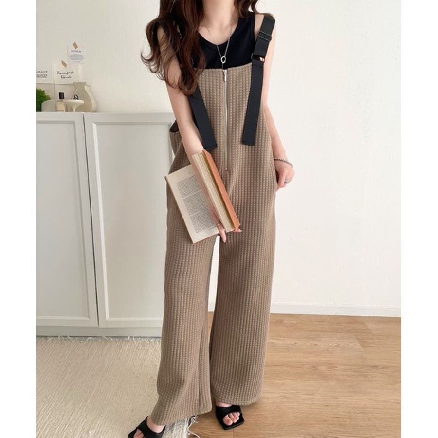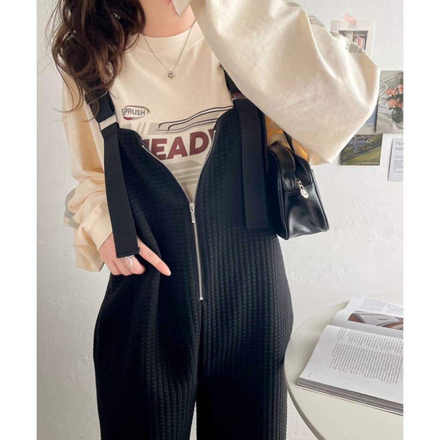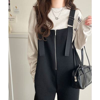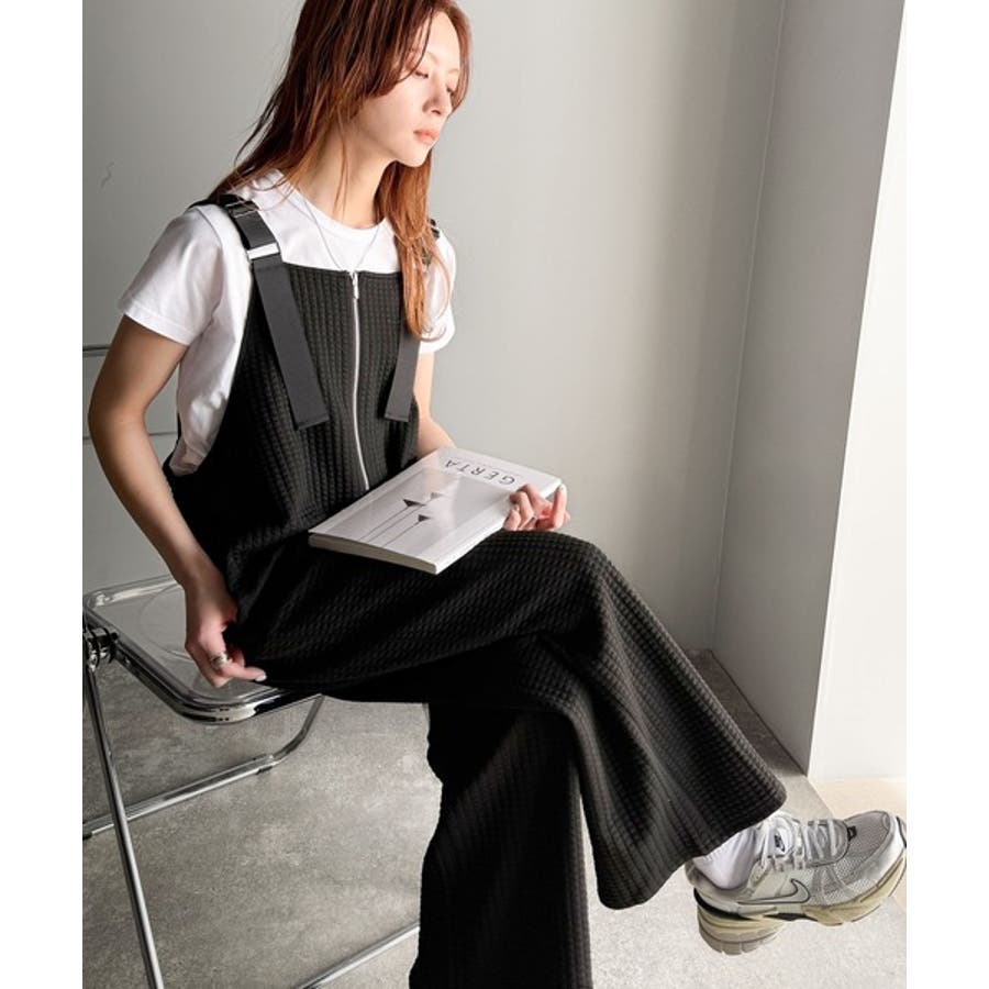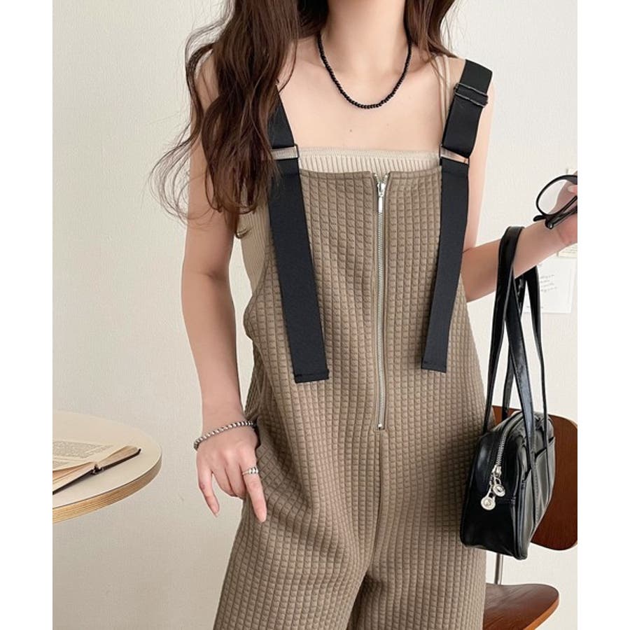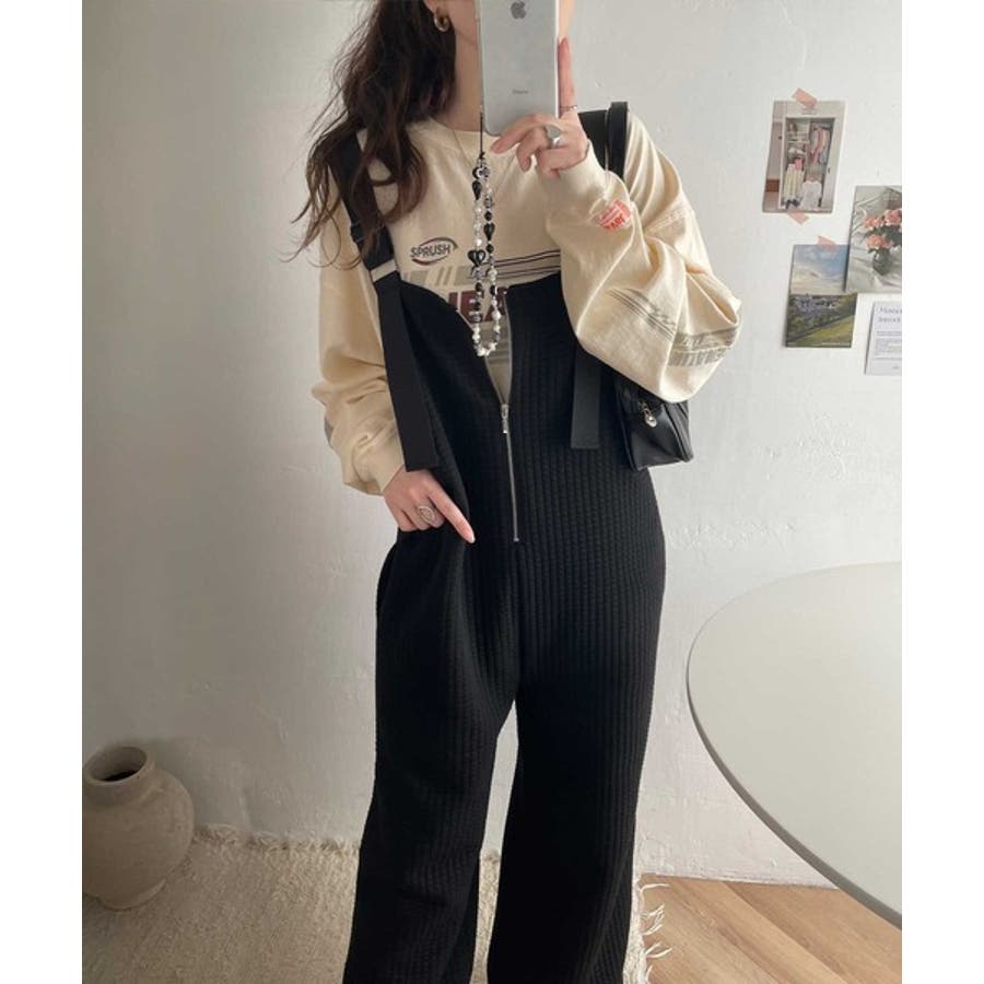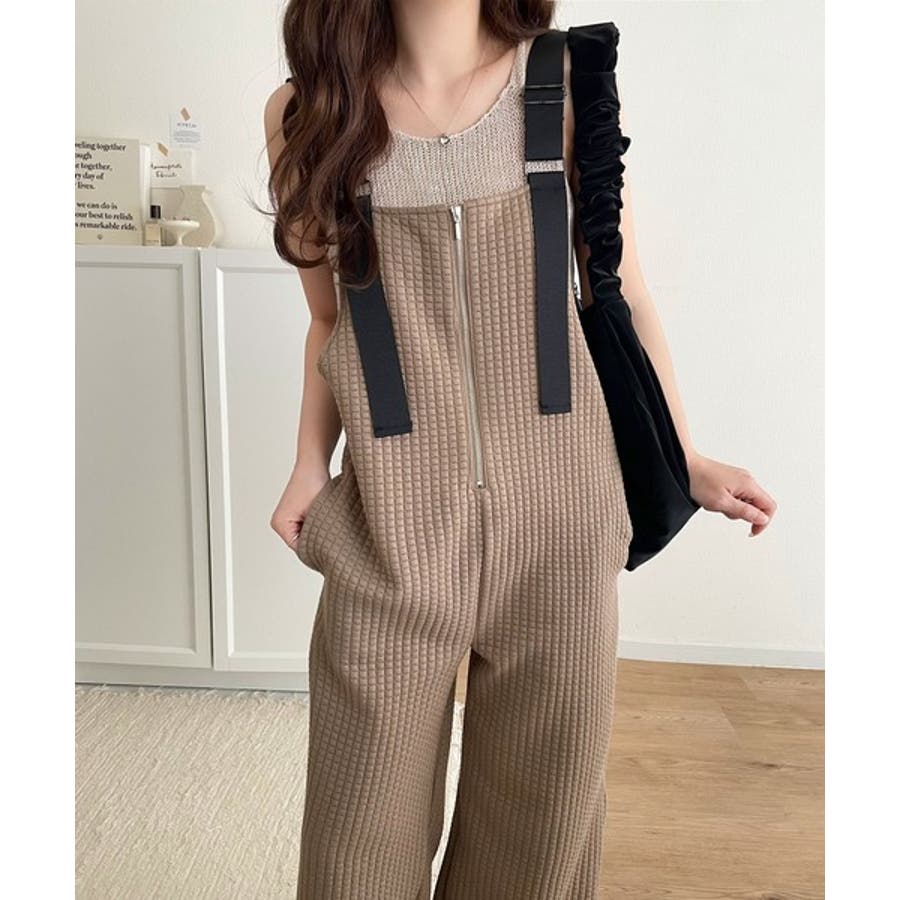 この秋冬のマストアイテム!膨れジャガードフロントジップサロペットパンツ