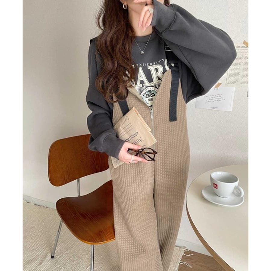 このサロペットを主役にしたコーデは、どんなアイテムでもぴったりです♪