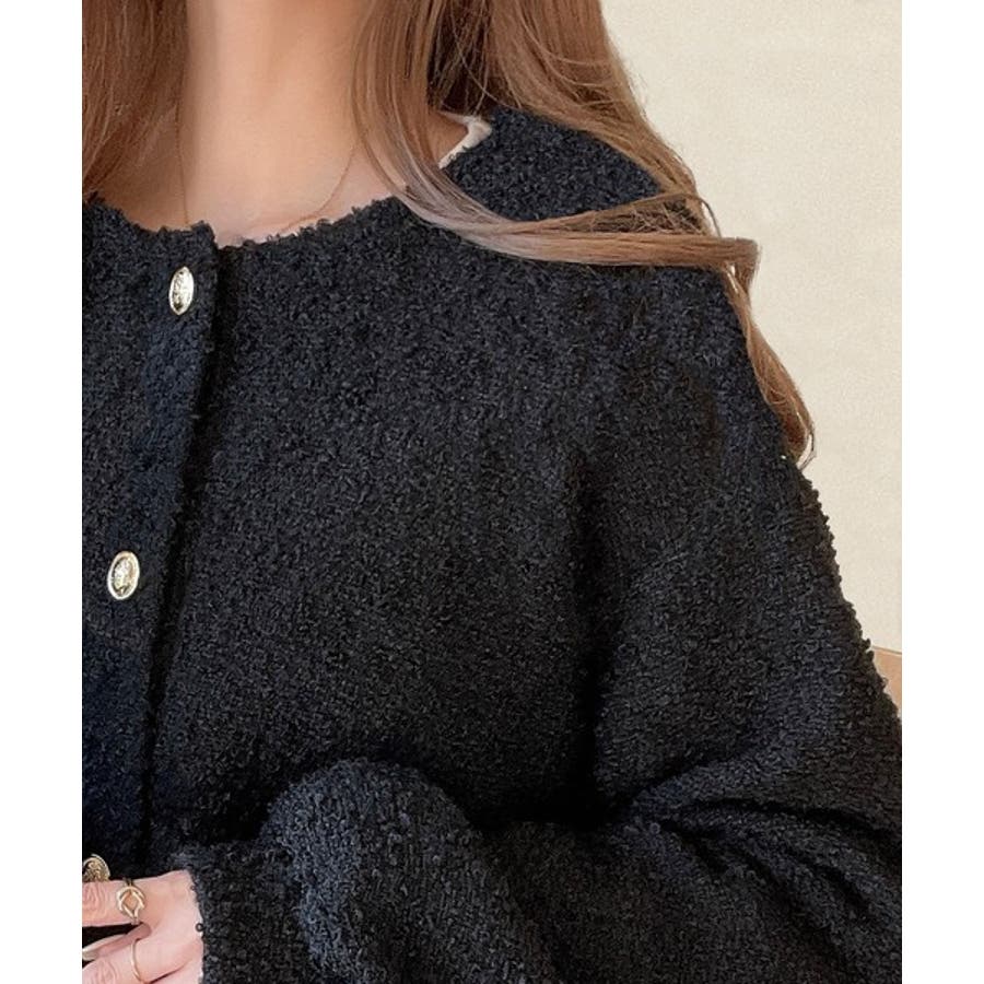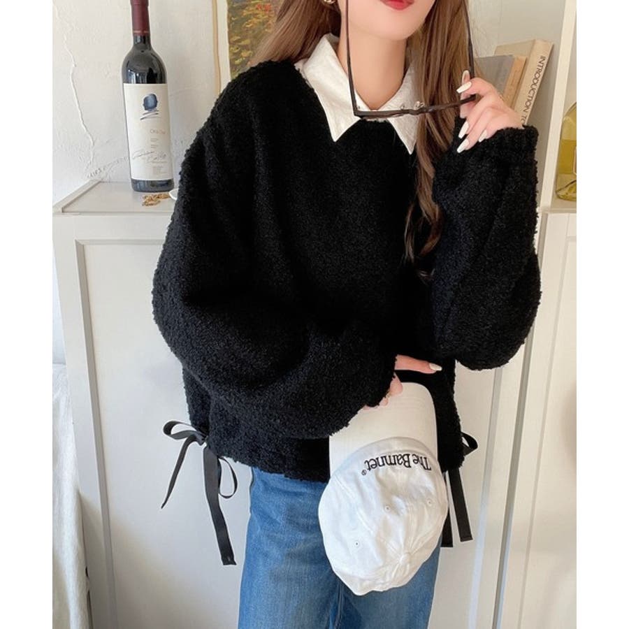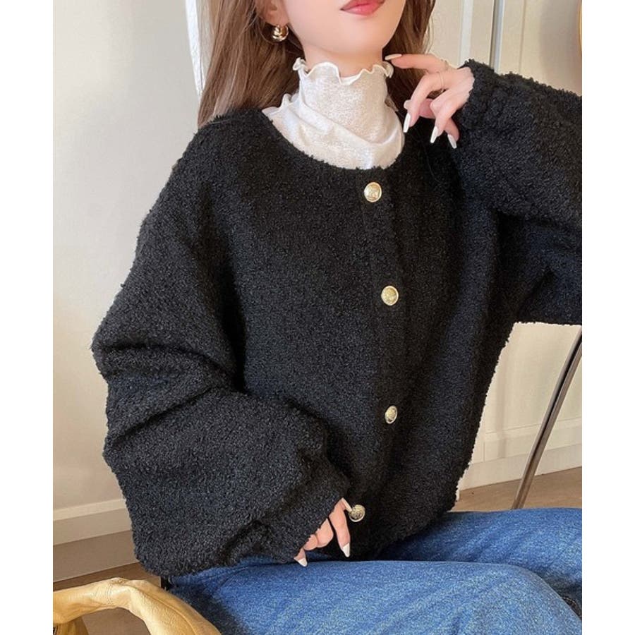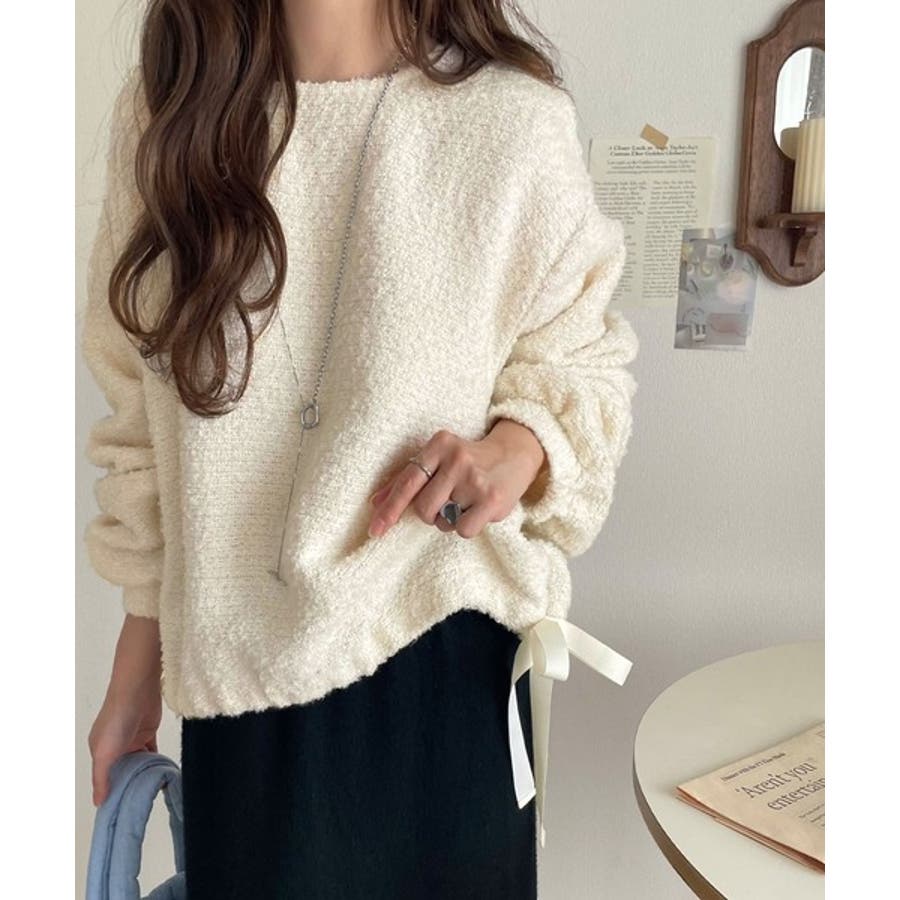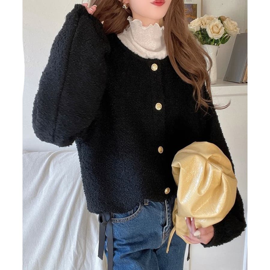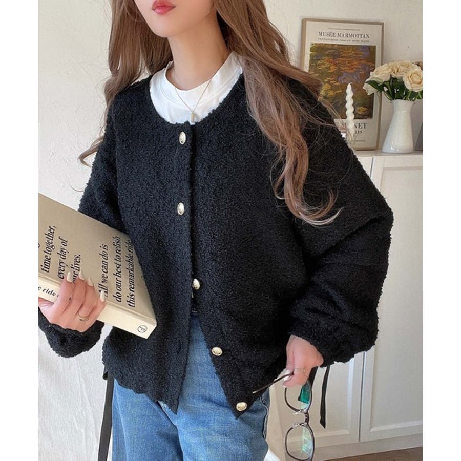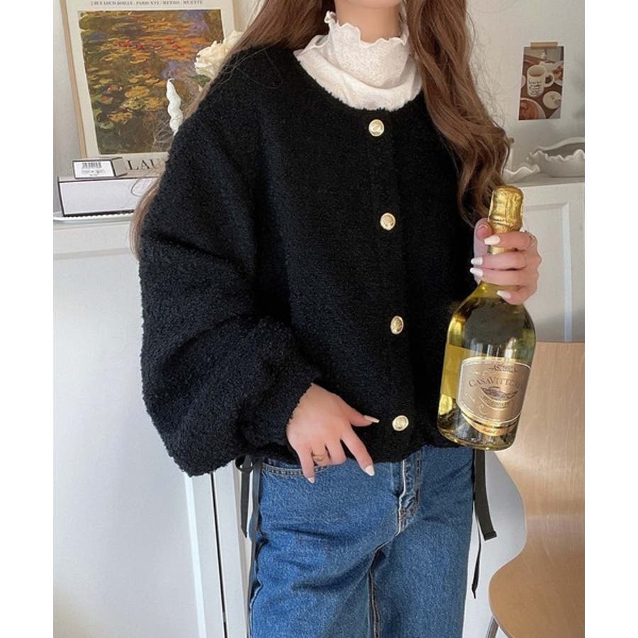 サイドリボンで差をつける! 前後2wayふわふわブークレ素材カーディガン