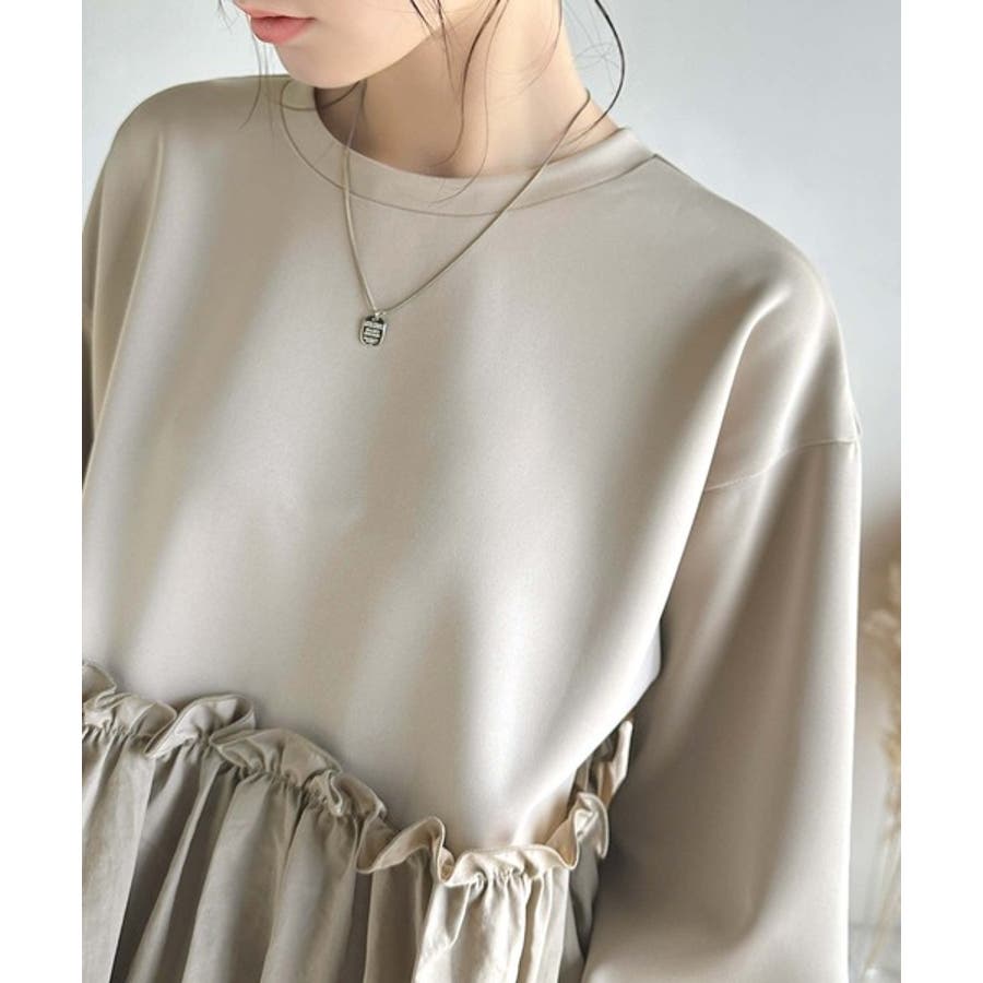 どんなシーンにも大活躍する、高見え異素材ドッキングトップス♪