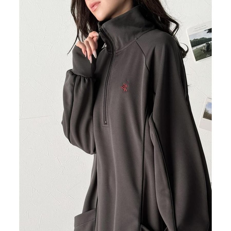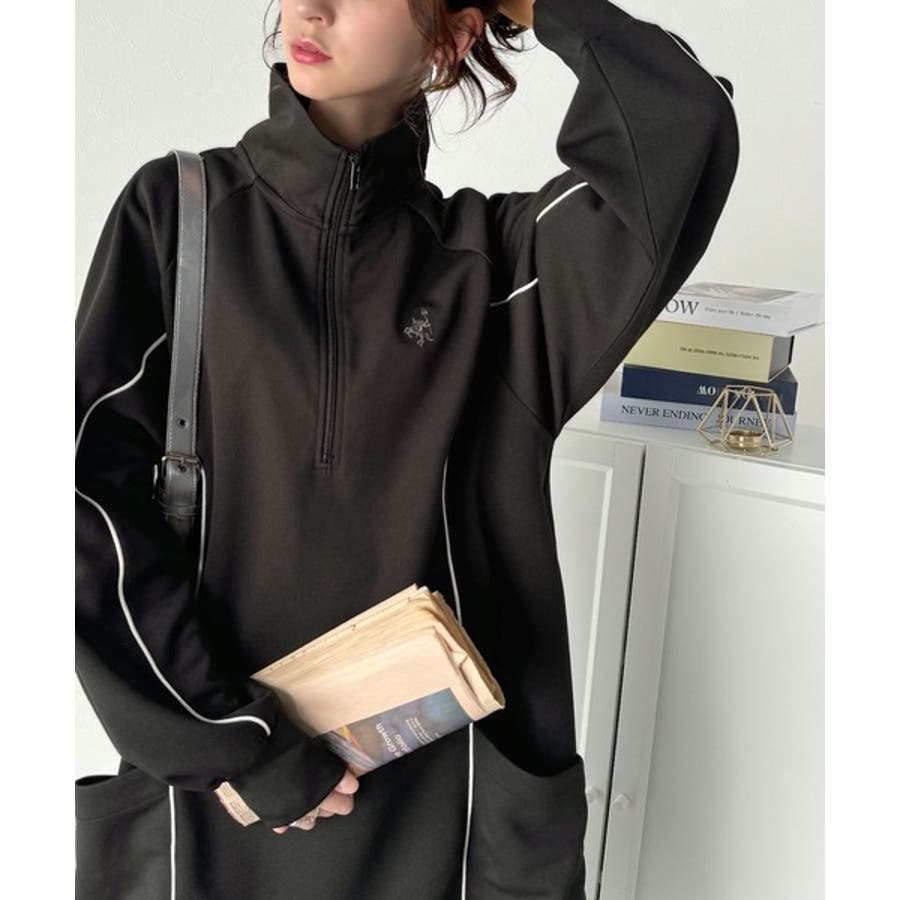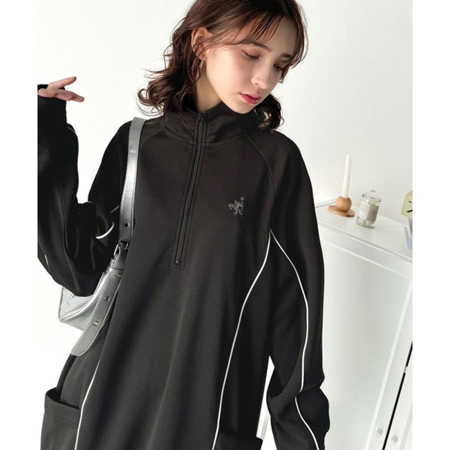 スポーツMIIX!胸元刺繍入り異素材ドッキングハーフジップパイピングジャージワン…