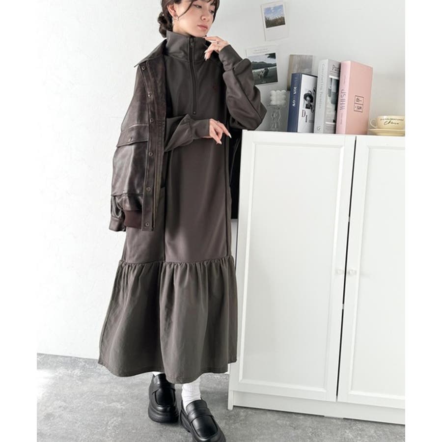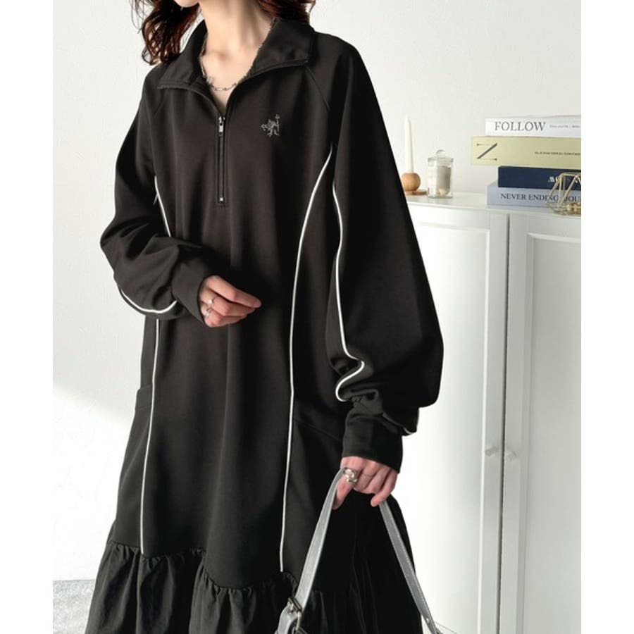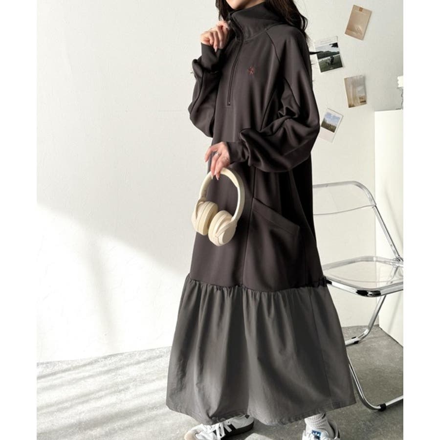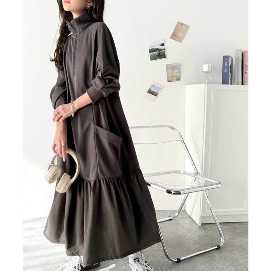 大人の余裕と旬な可愛さを兼ね備えたジャージ素材のドッキングワンピース♪