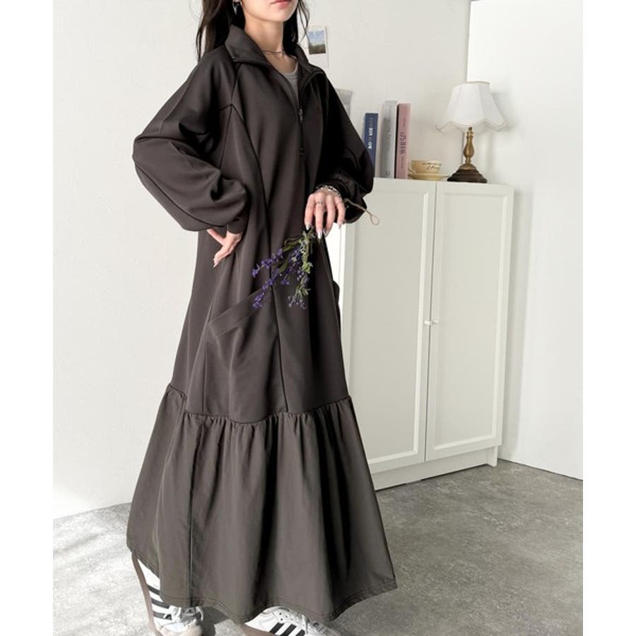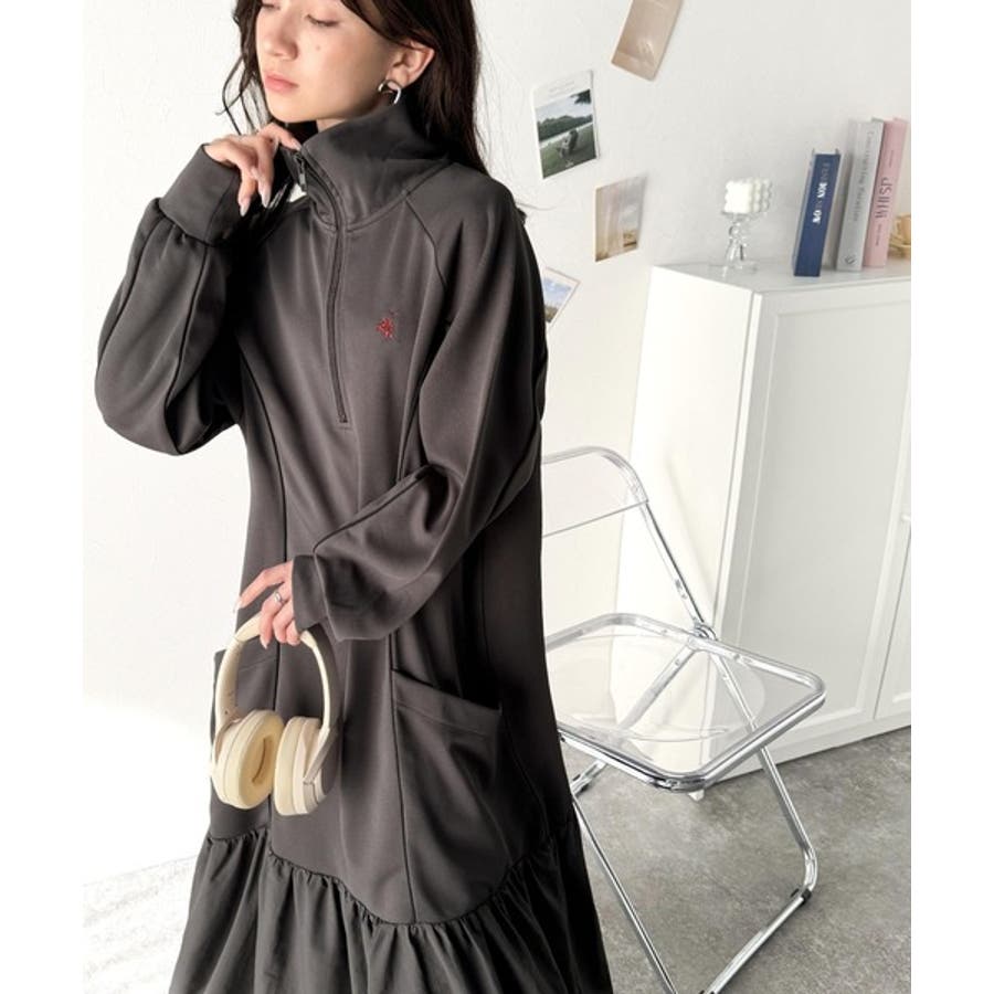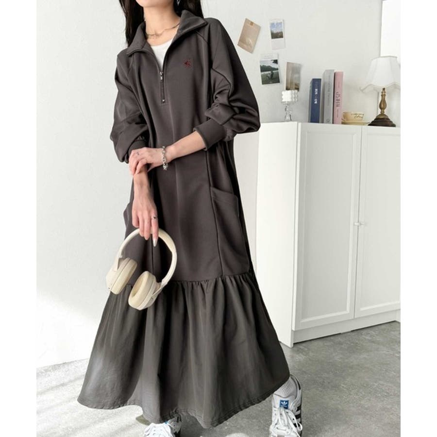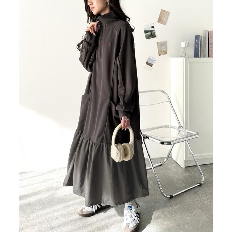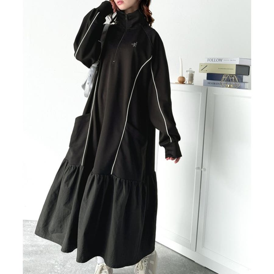 大人の余裕と旬な可愛さを兼ね備えたジャージ素材のドッキングワンピース♪