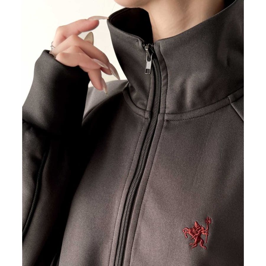 ジャージ素材との組み合わせがスタイリッシュな印象。