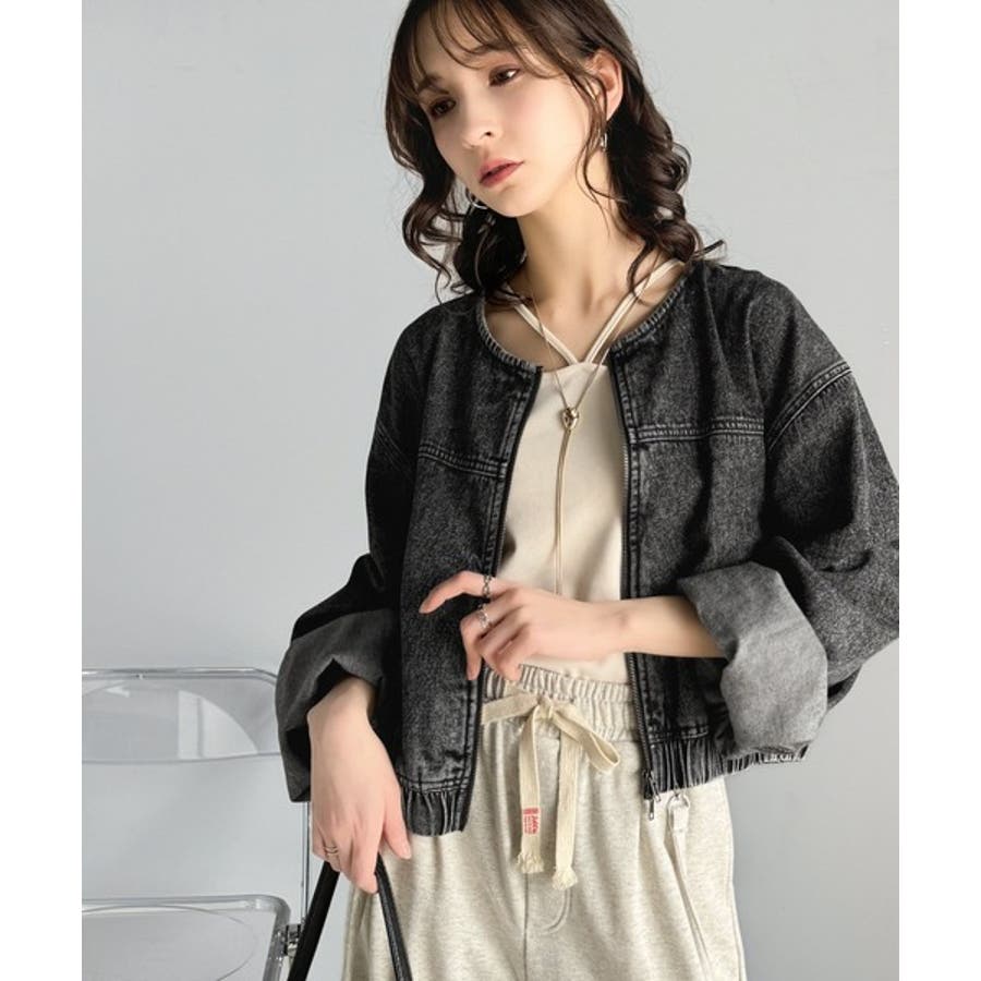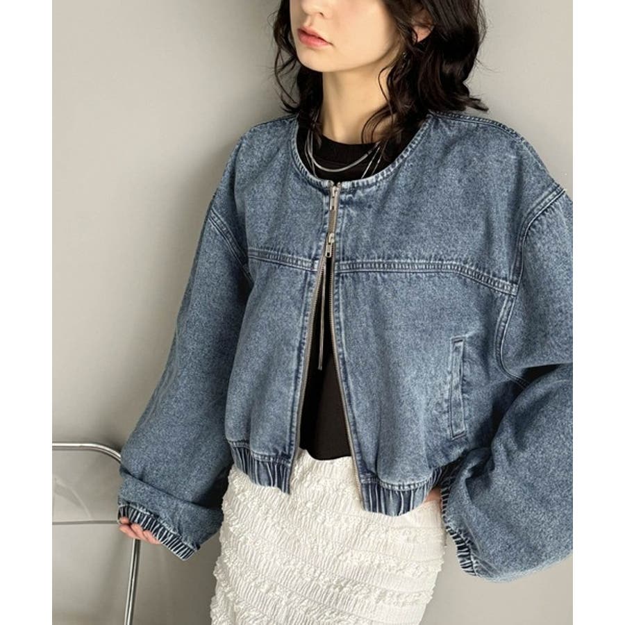 ノーカラー短丈ダブルジップデニムジャケットブルゾンの登場。