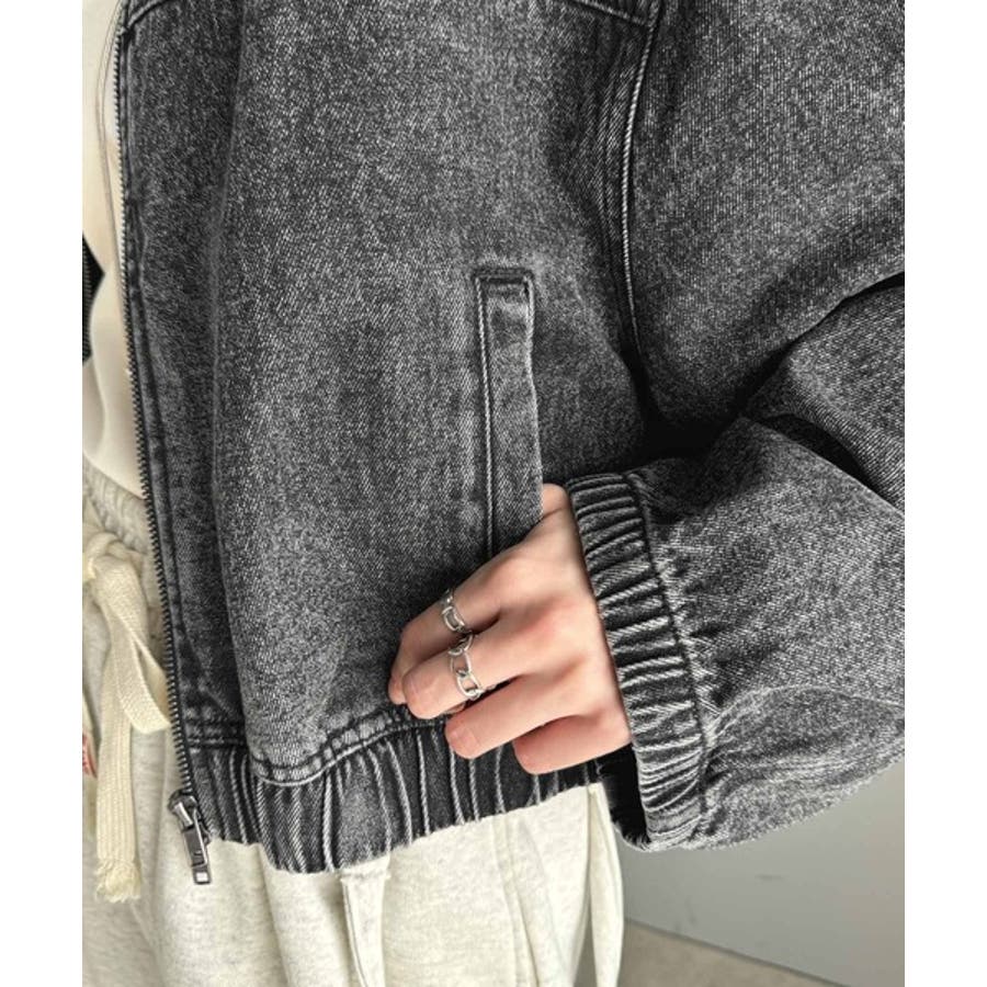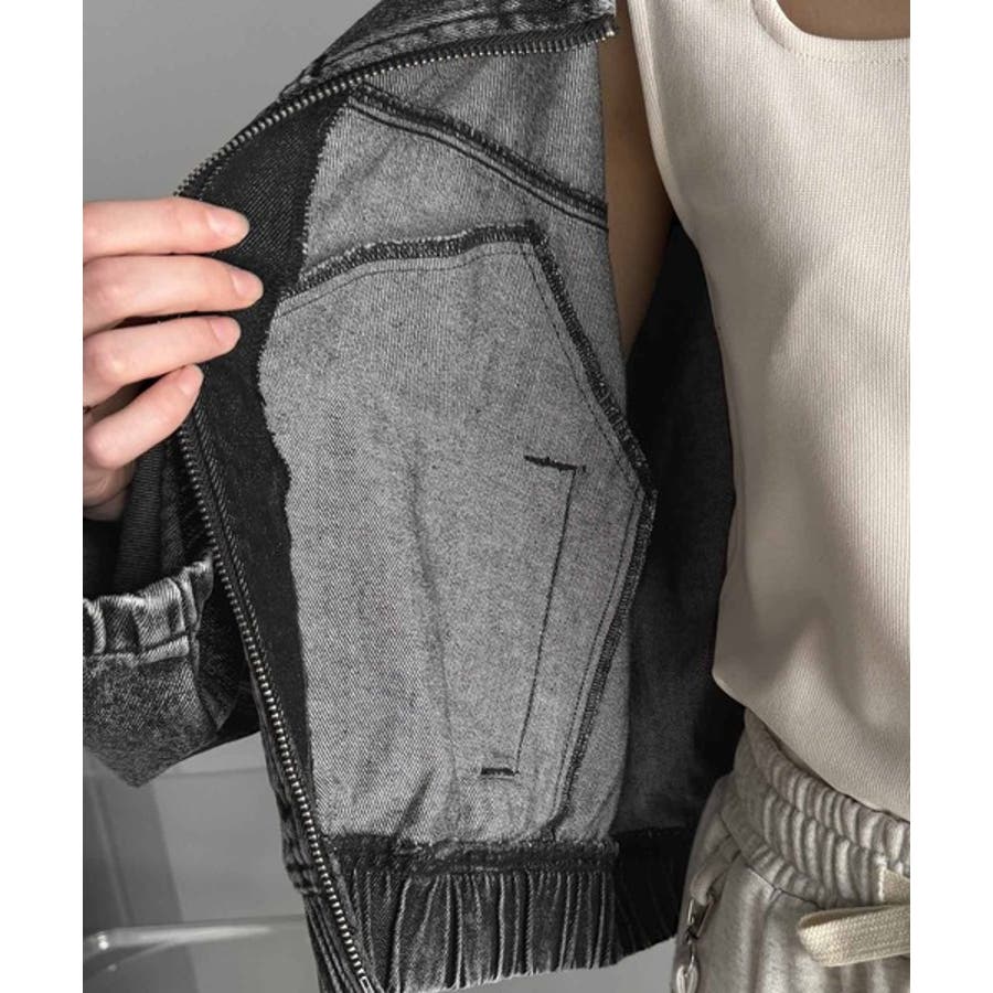 ノーカラー短丈ダブルジップデニムジャケットは、シンプルながらも存在感があり、