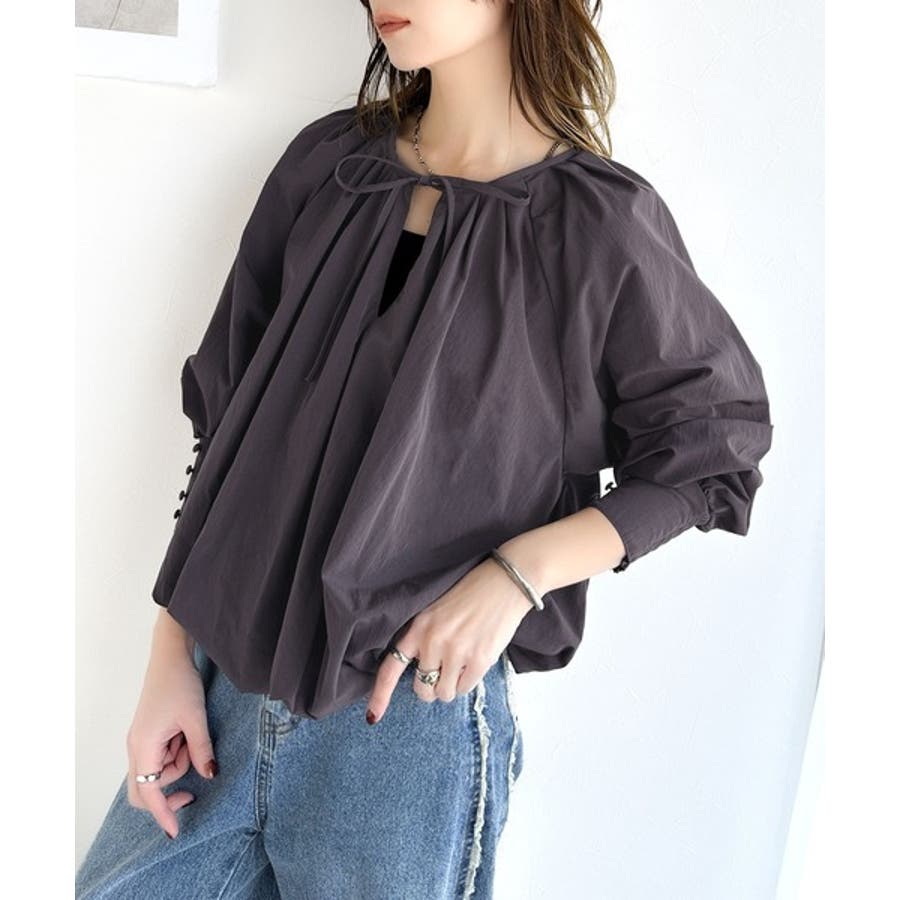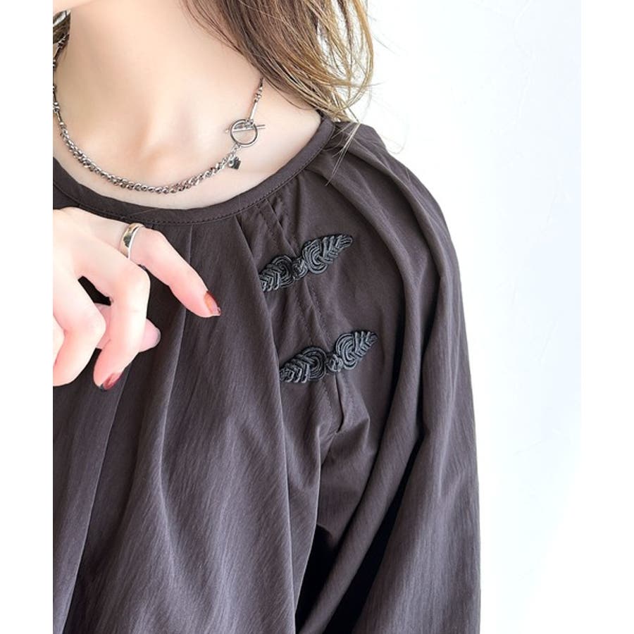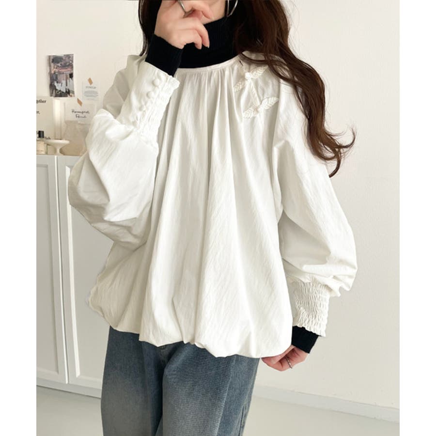 チャイナボタンが旬を先取り♪前後2wayリボン使いタックブラウス(長袖)