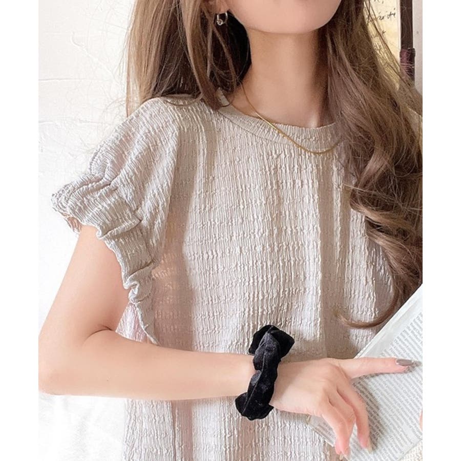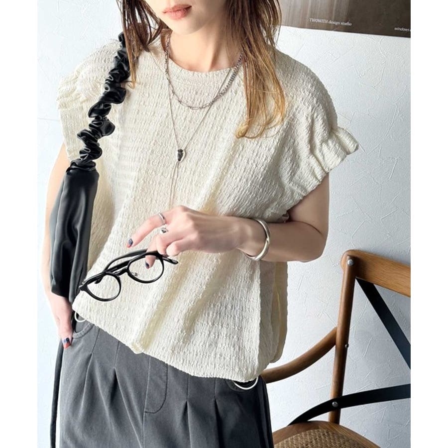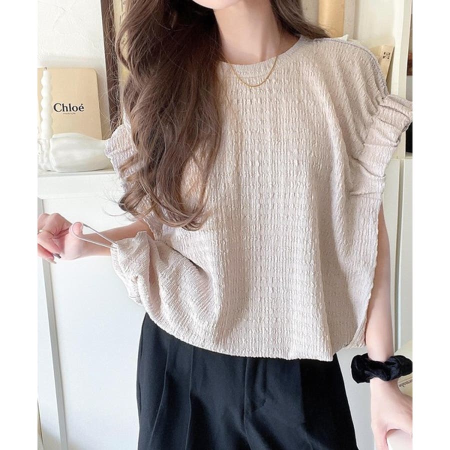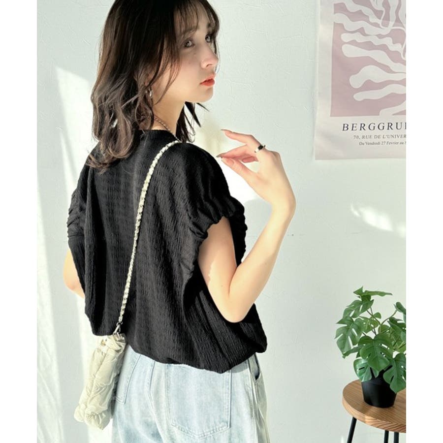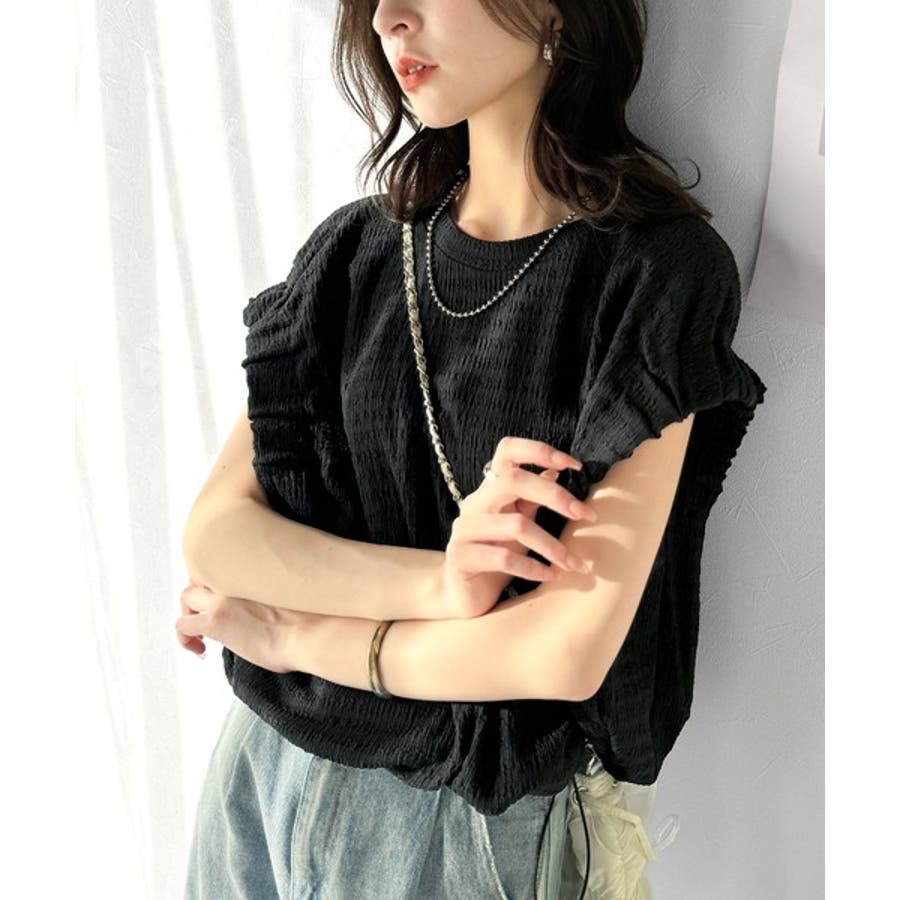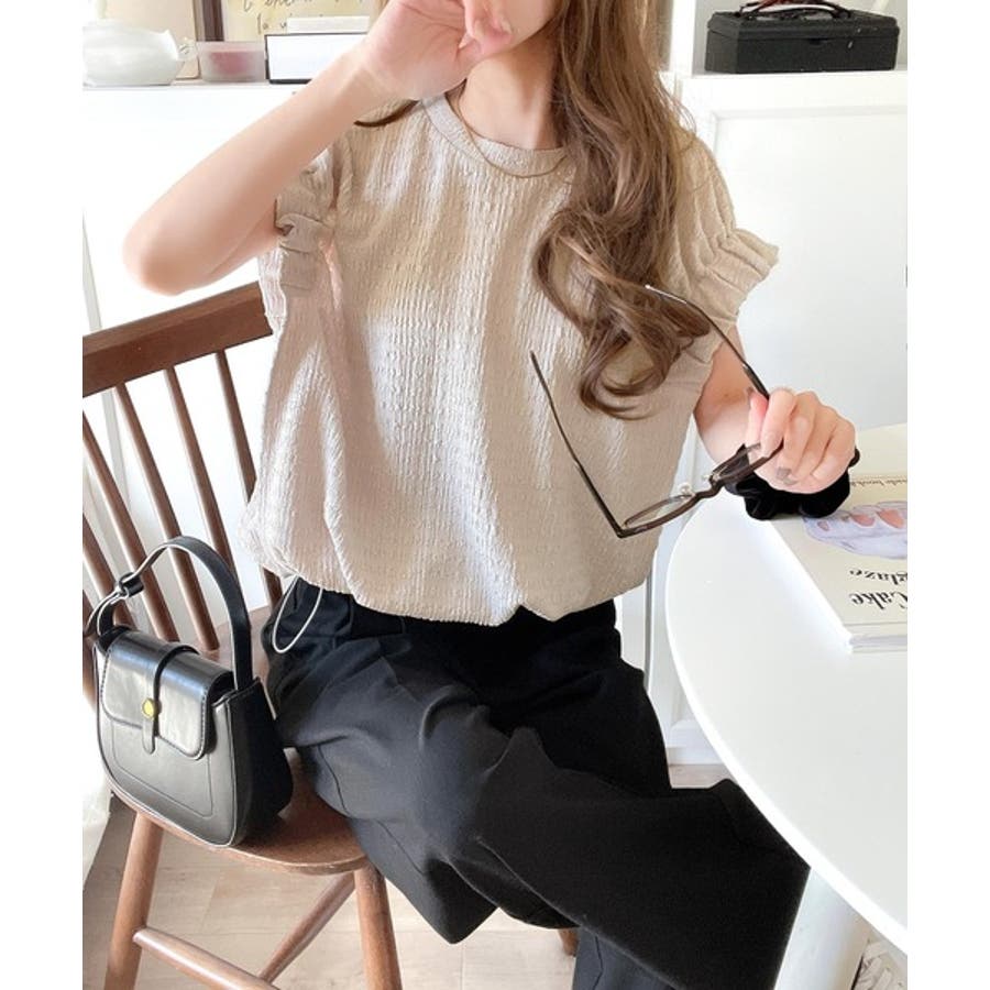 このシャーリング風ジャガードフレンチスリーブは、スタイリングの幅を広げる優れたアイテムです。