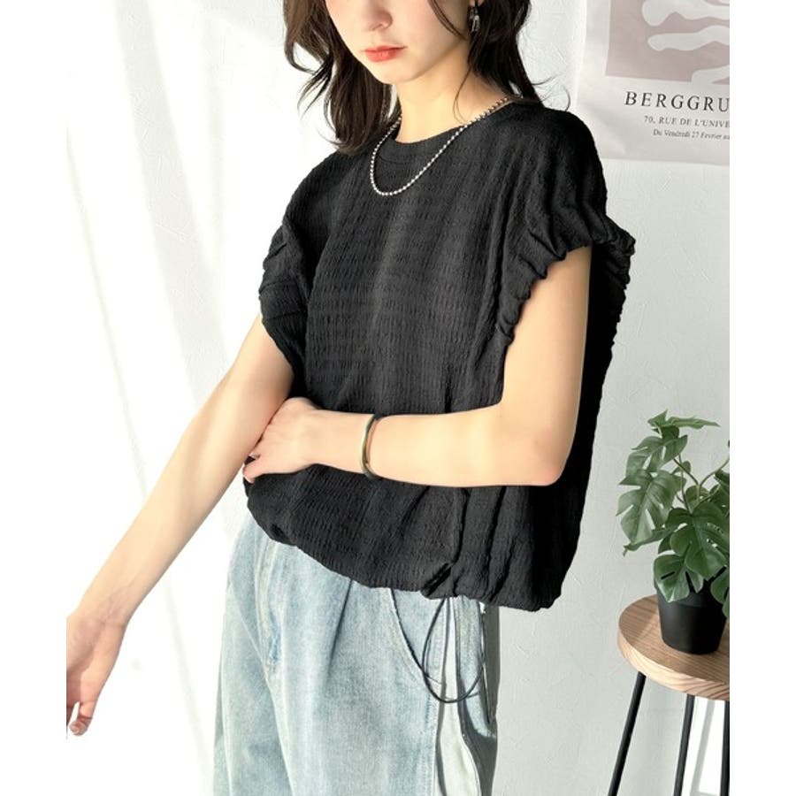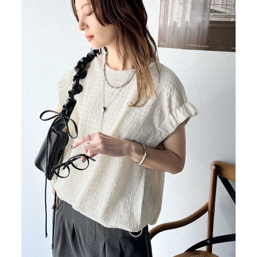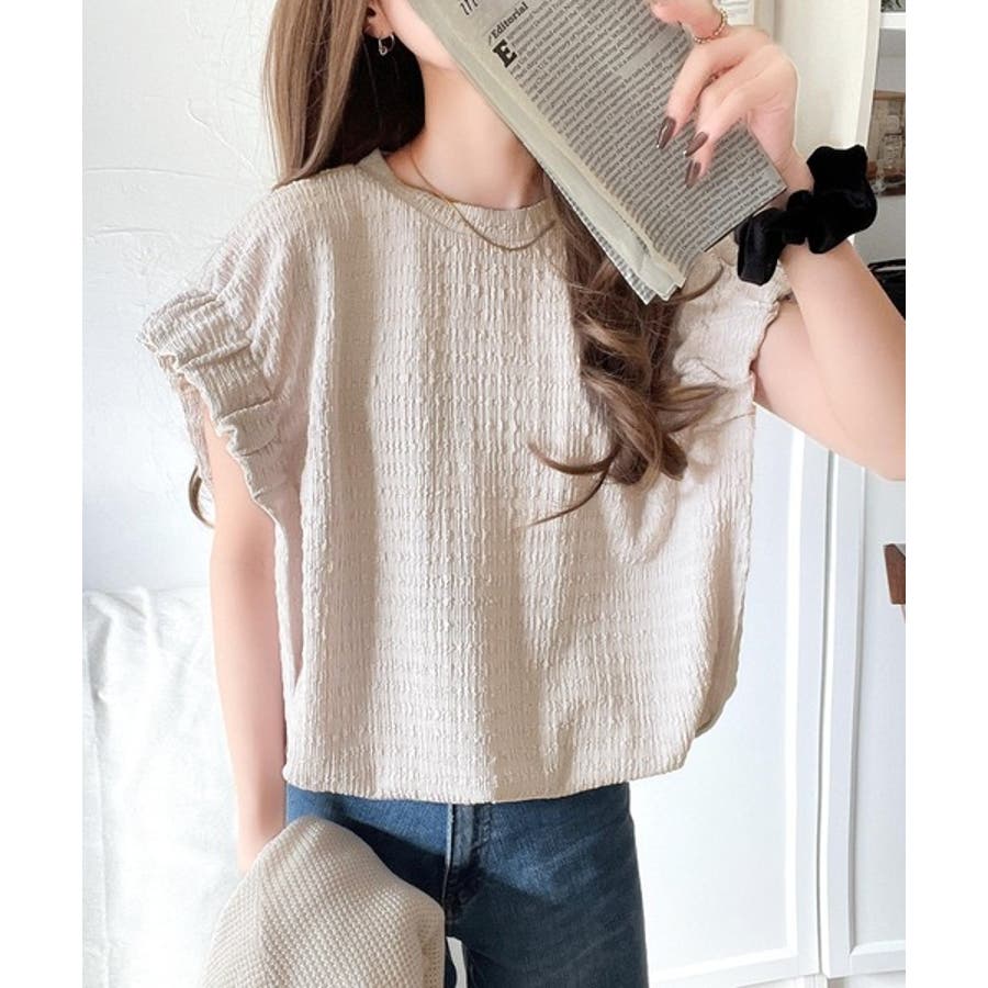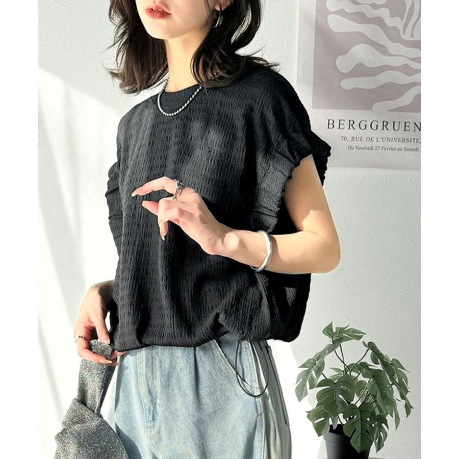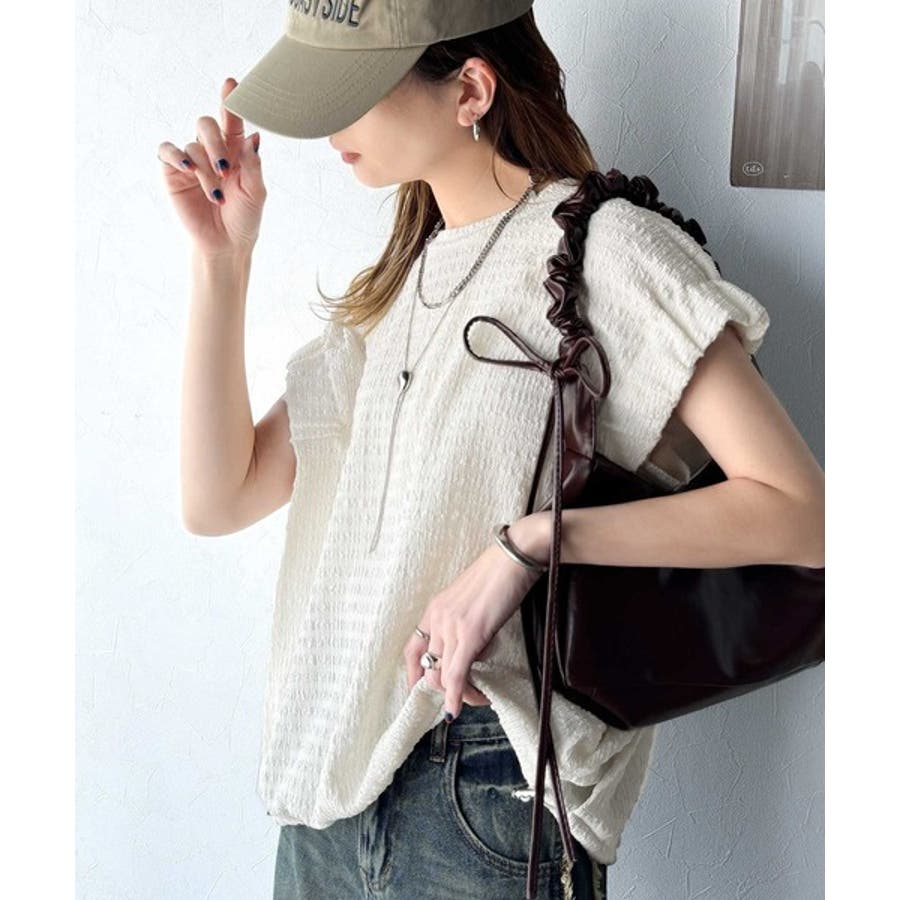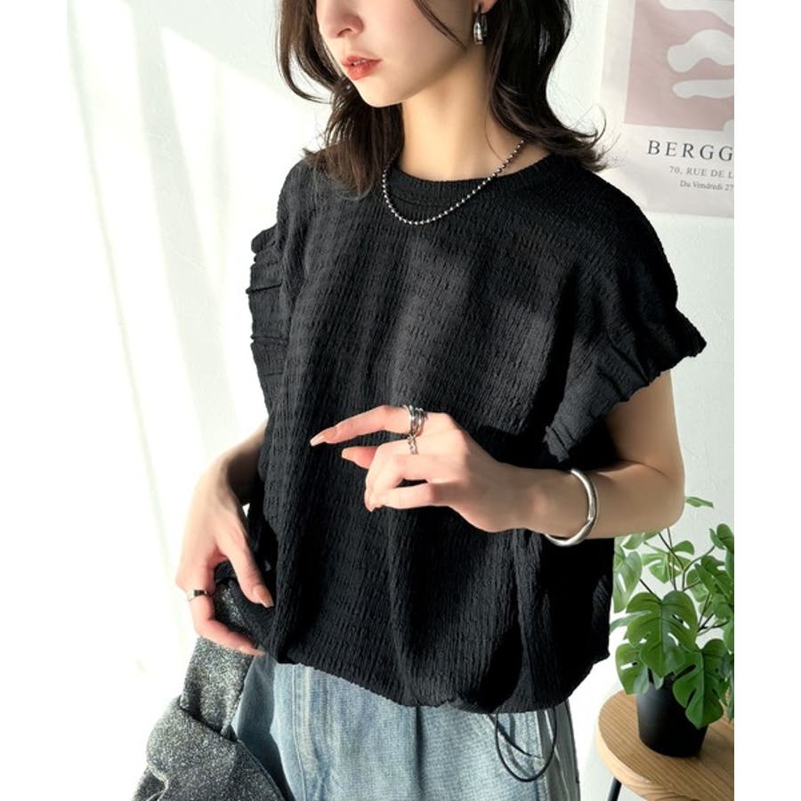 このシャーリング風ジャガードフレンチスリーブは、スタイリングの幅を広げる優れたアイテムです。