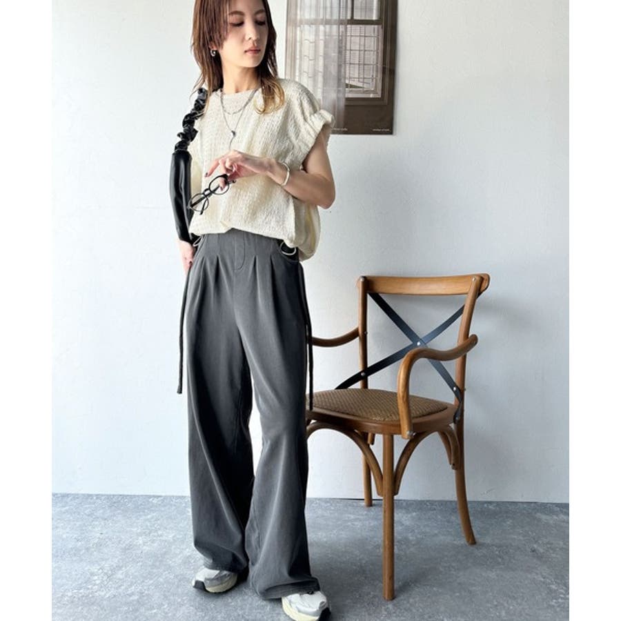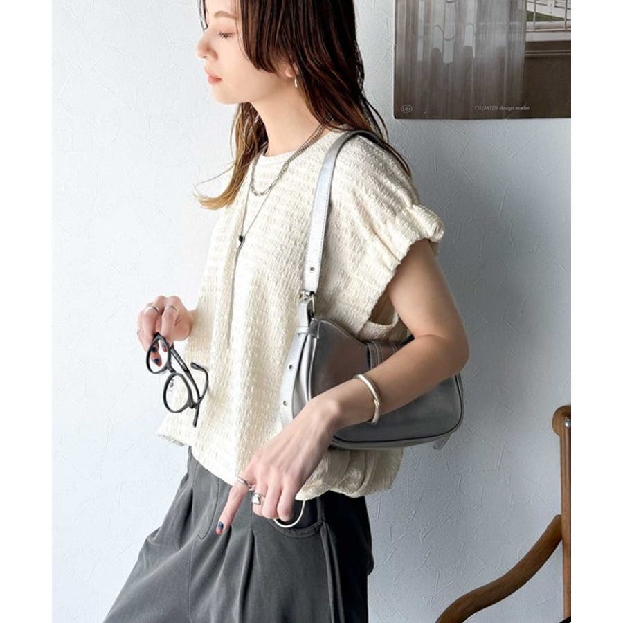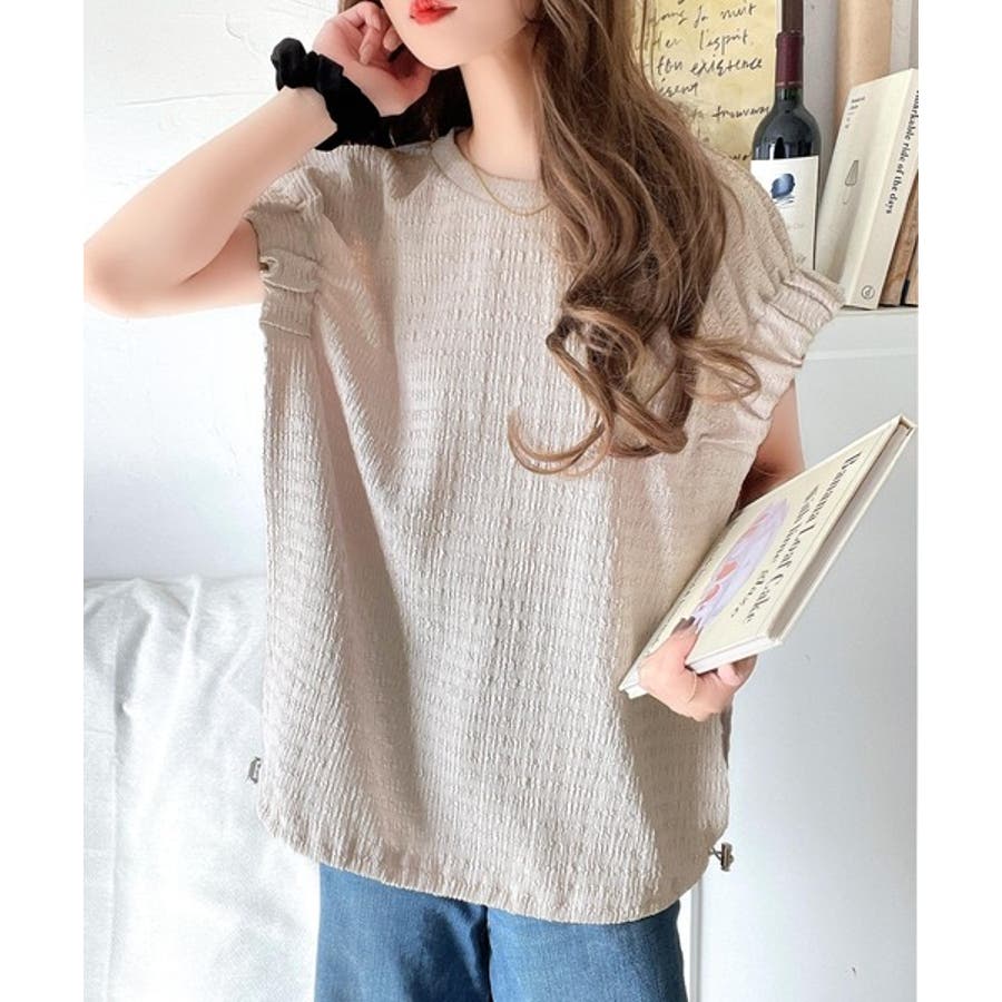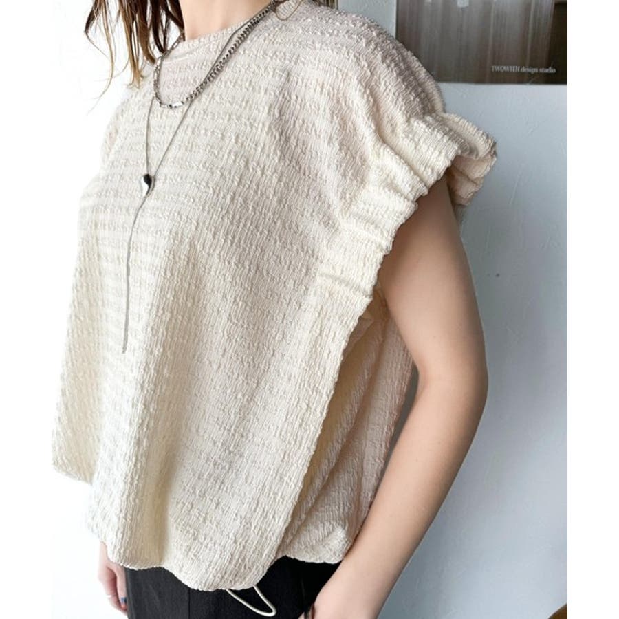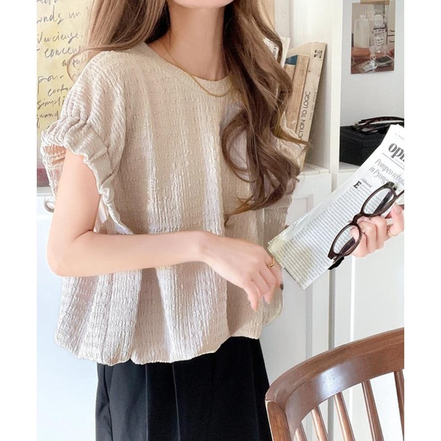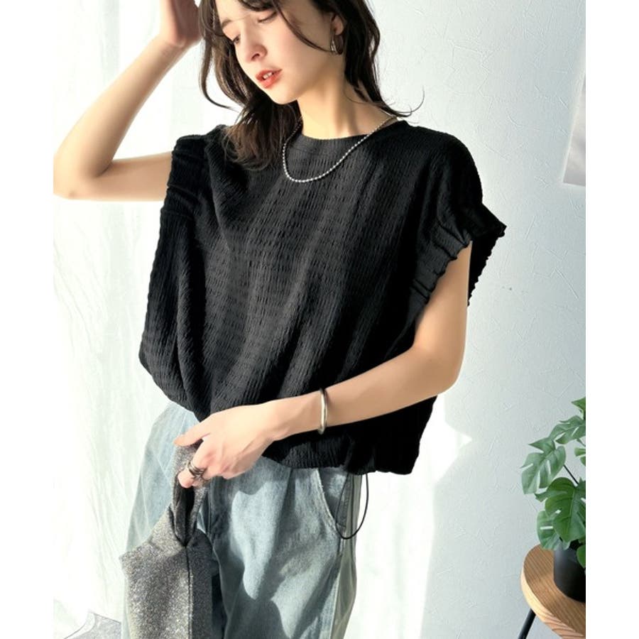 このシャーリング風ジャガードフレンチスリーブは、スタイリングの幅を広げる優れたアイテムです。