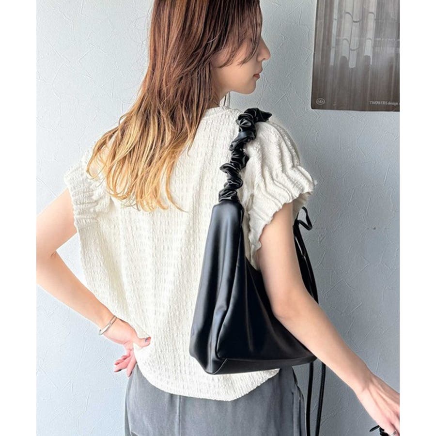 脇部分の立体感とギャザーが、しっかりとしたボリューム感を持ちながらも華奢な印象を与え、