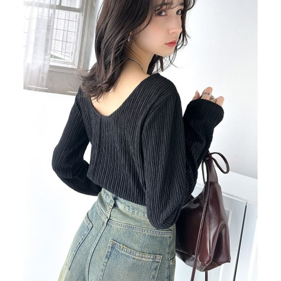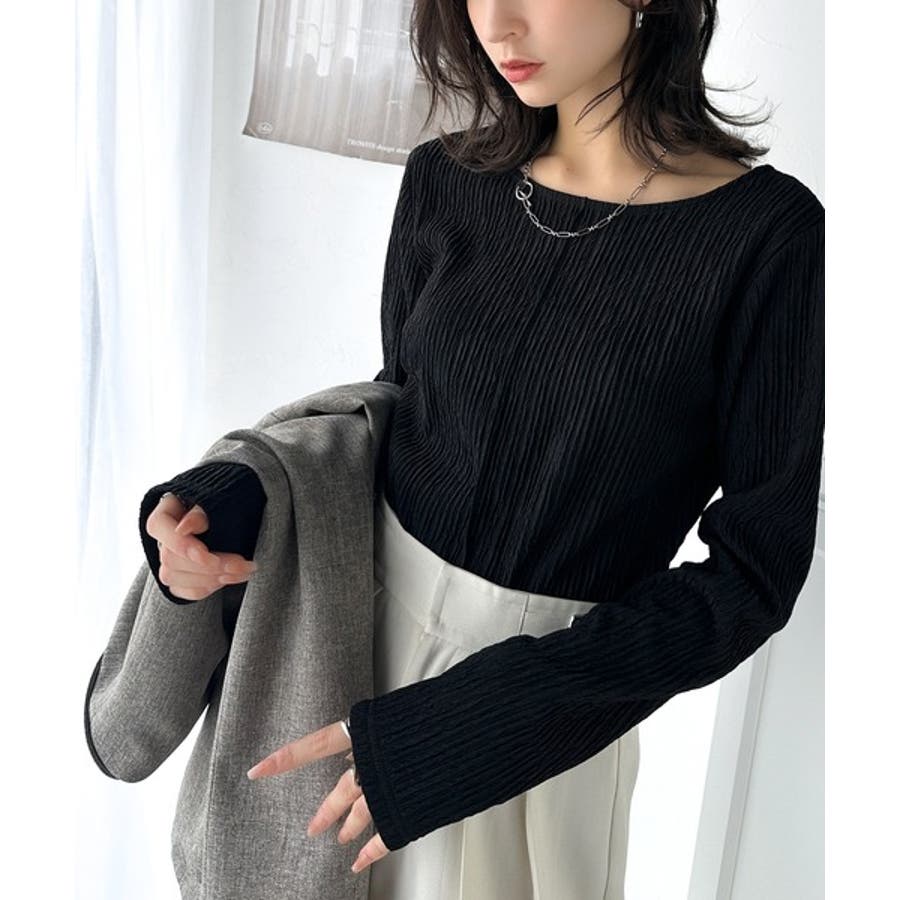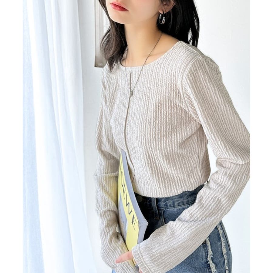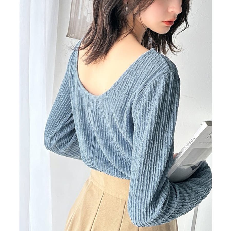 ストライプで煌めく抜け感。前後2wayバックオープンジャガードトップス(長袖)