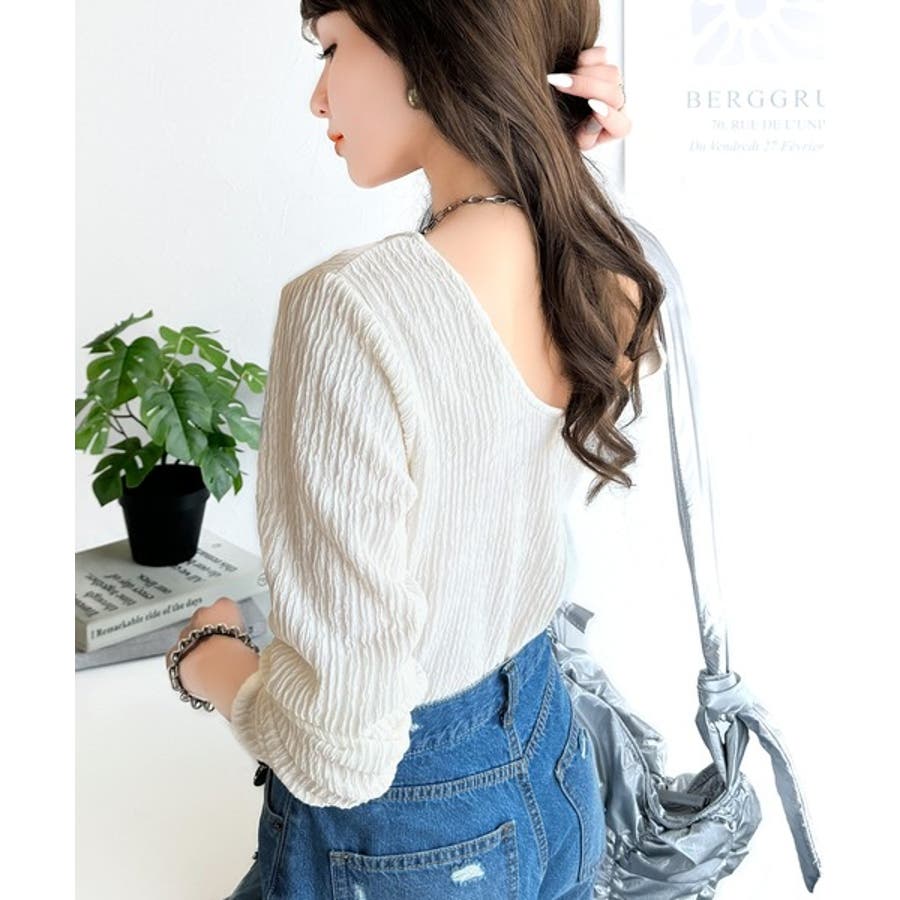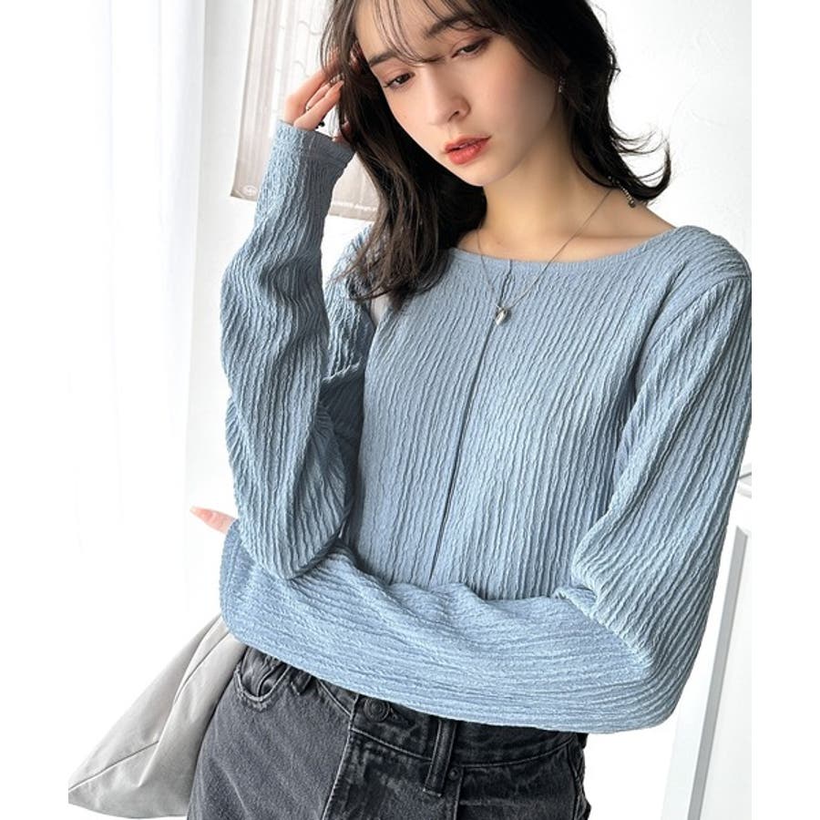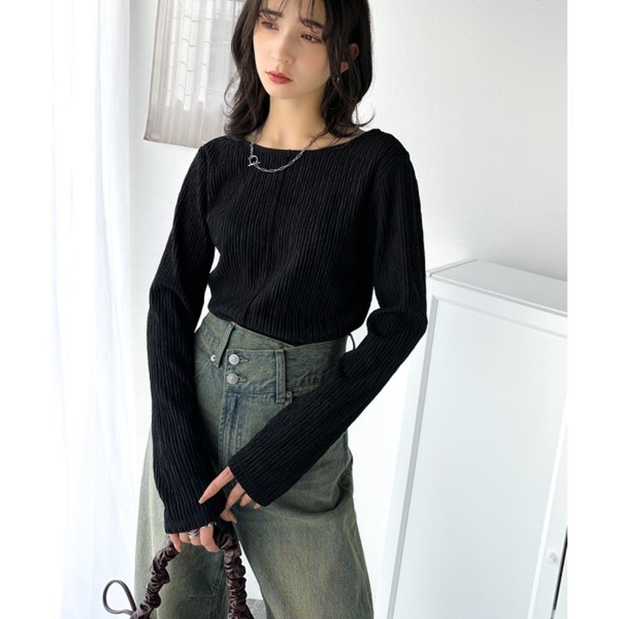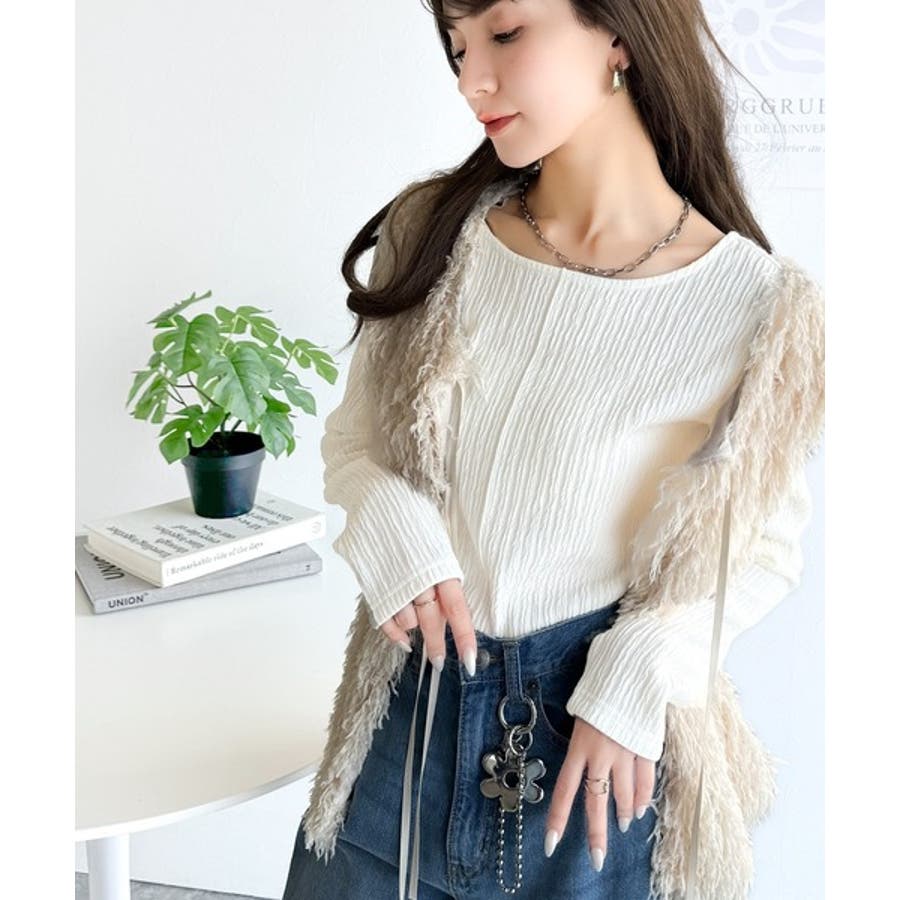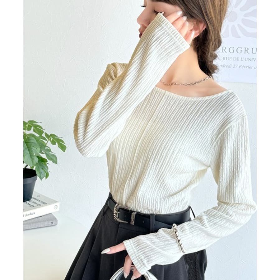 ストライプで煌めく抜け感。前後2wayバックオープンジャガードトップス(長袖)