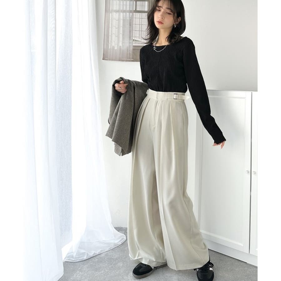 シンプルなデザインなのでトレンドのワイドパンツに合わせたり、