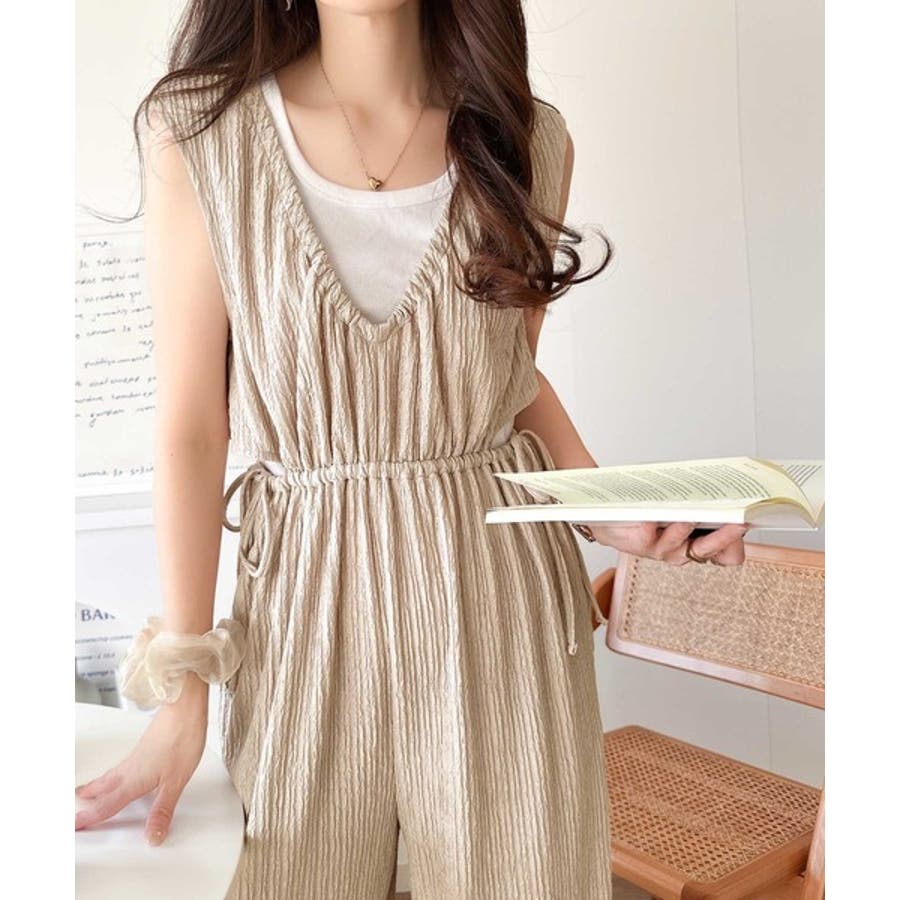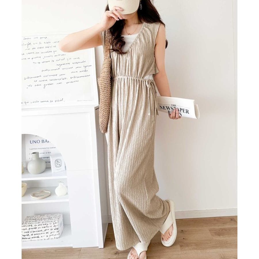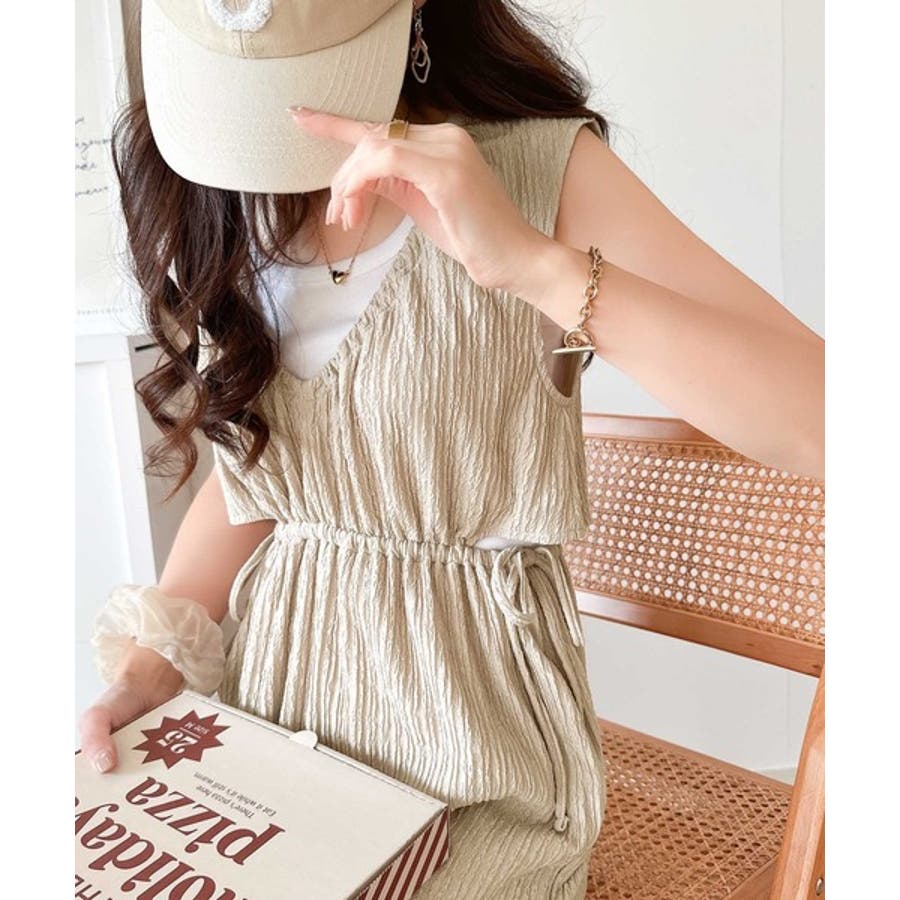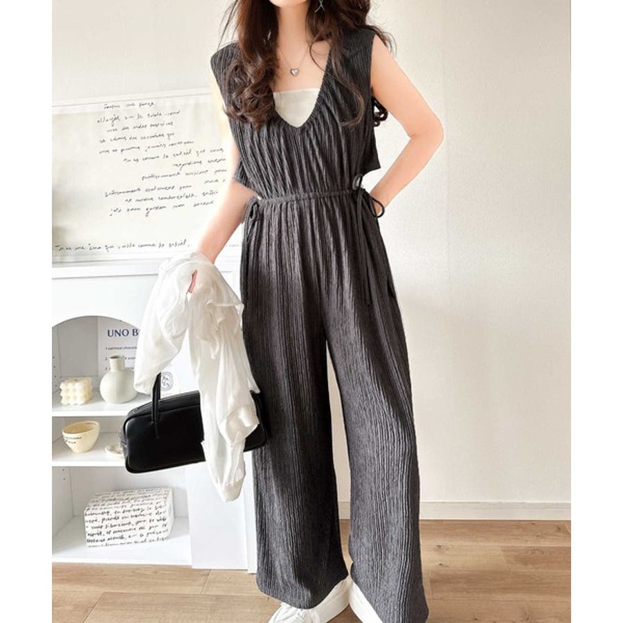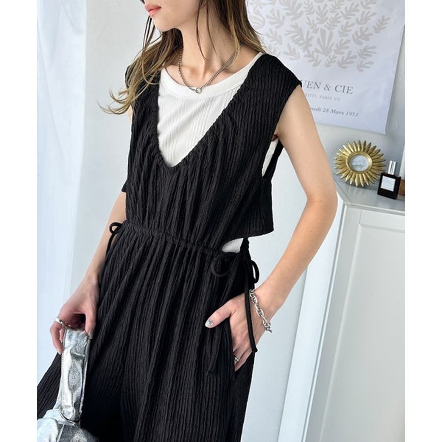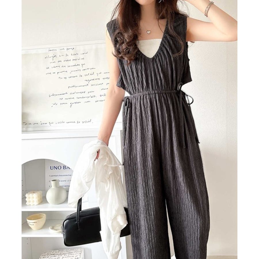 1枚でスタイリングが決まる、前後2wayウエストリボン付きサロペット!