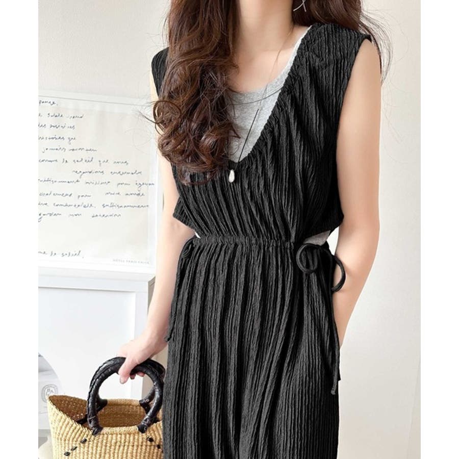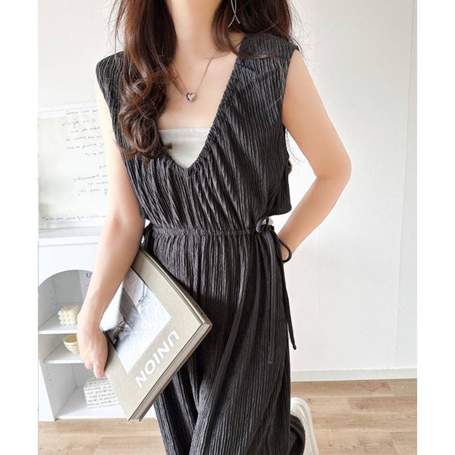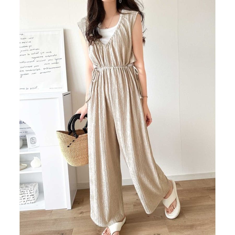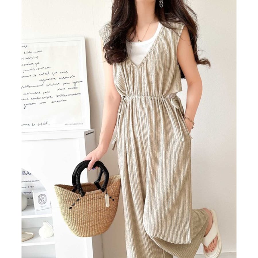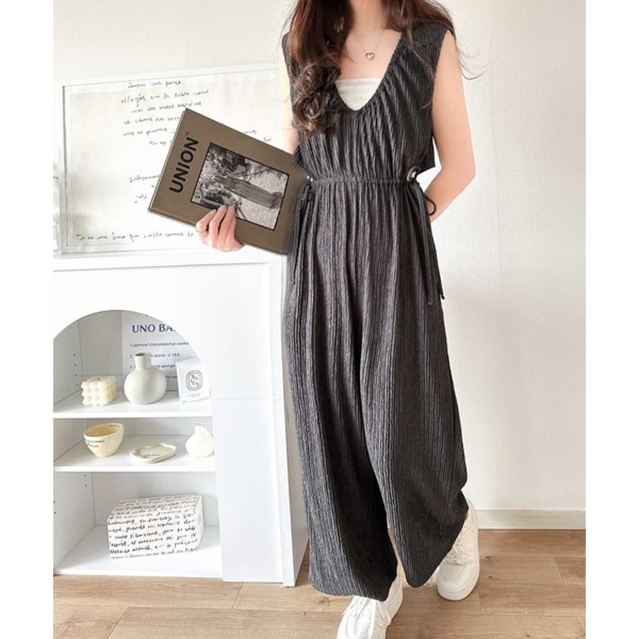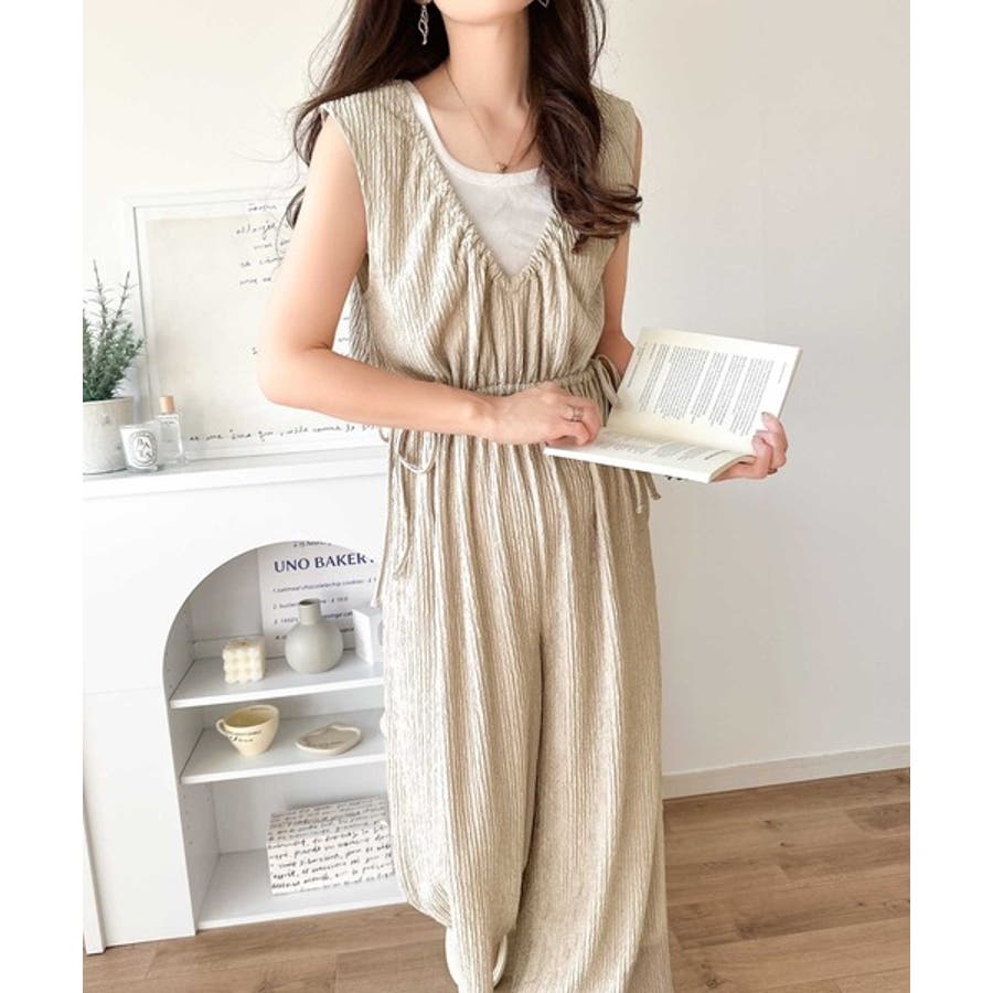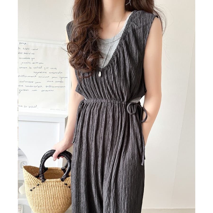 1枚でスタイリングが決まる、前後2wayウエストリボン付きサロペット!