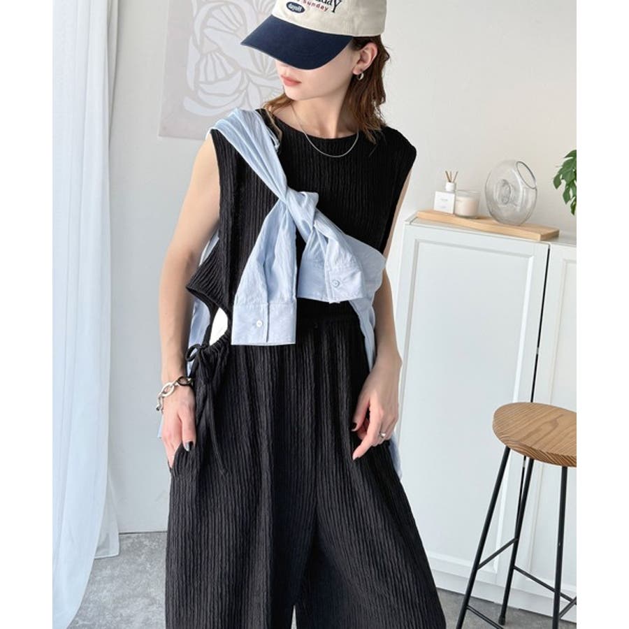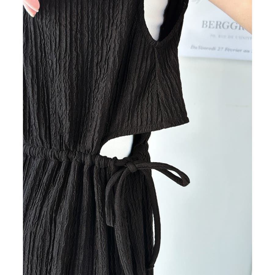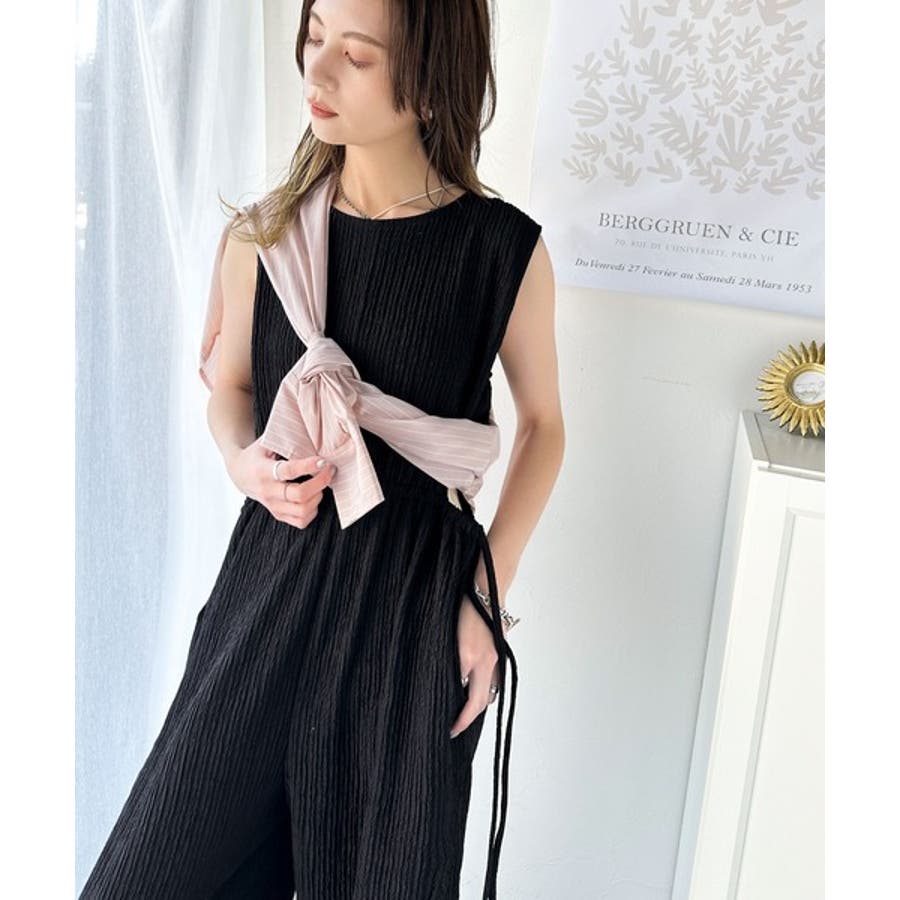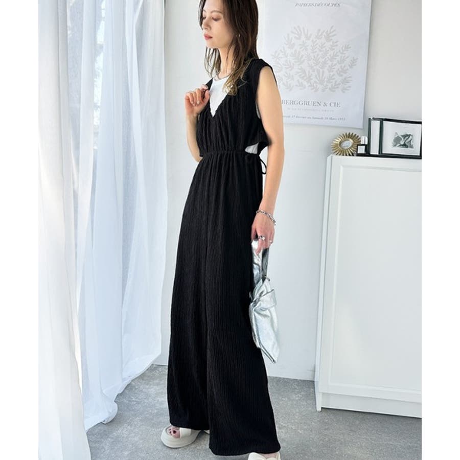 上品な抜け感。前後2WAYサイドリボンカットアウトジャガードサロペット(つなぎ)