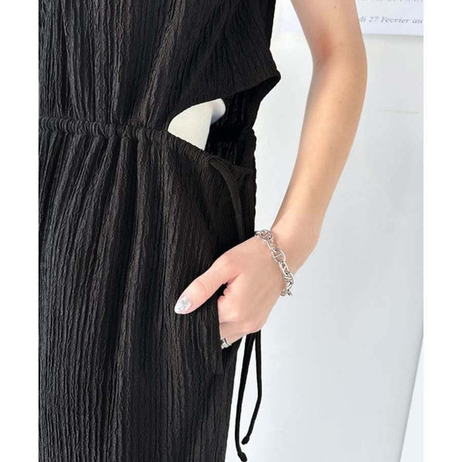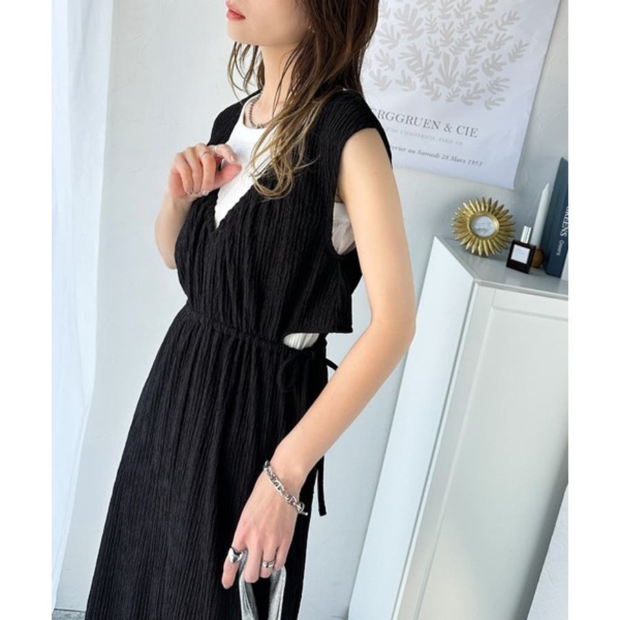 大人かわいいウエストリボンと、カットアウトデザインで、