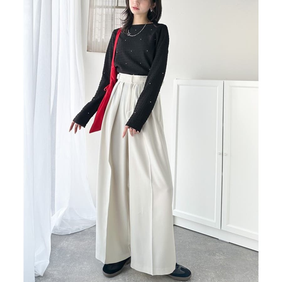 ベーシックなアイボリーやベージュのワイドパンツと組み合わせれば、