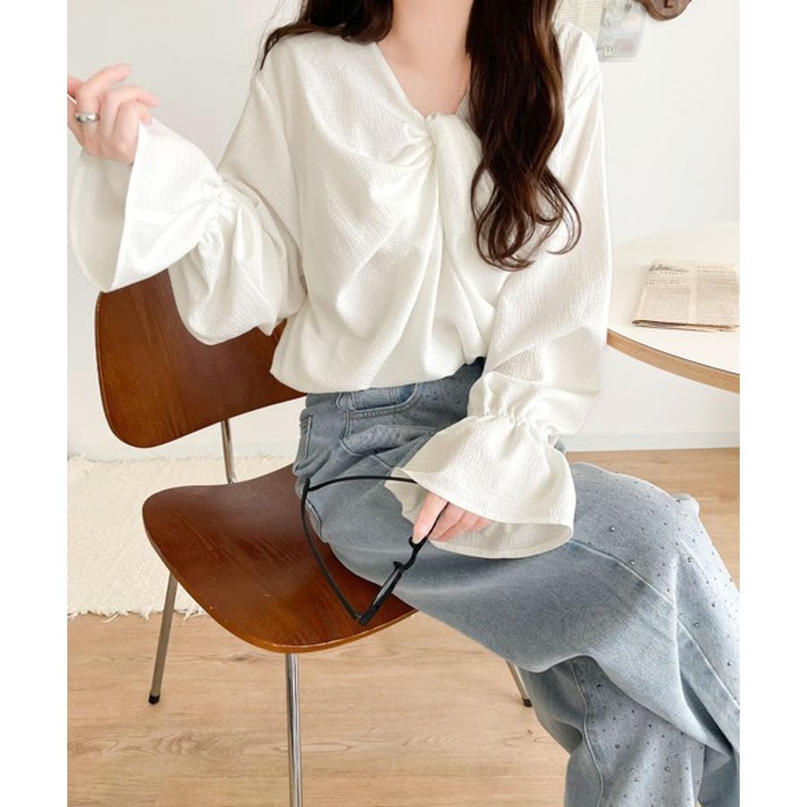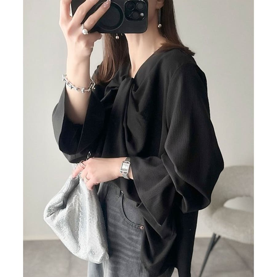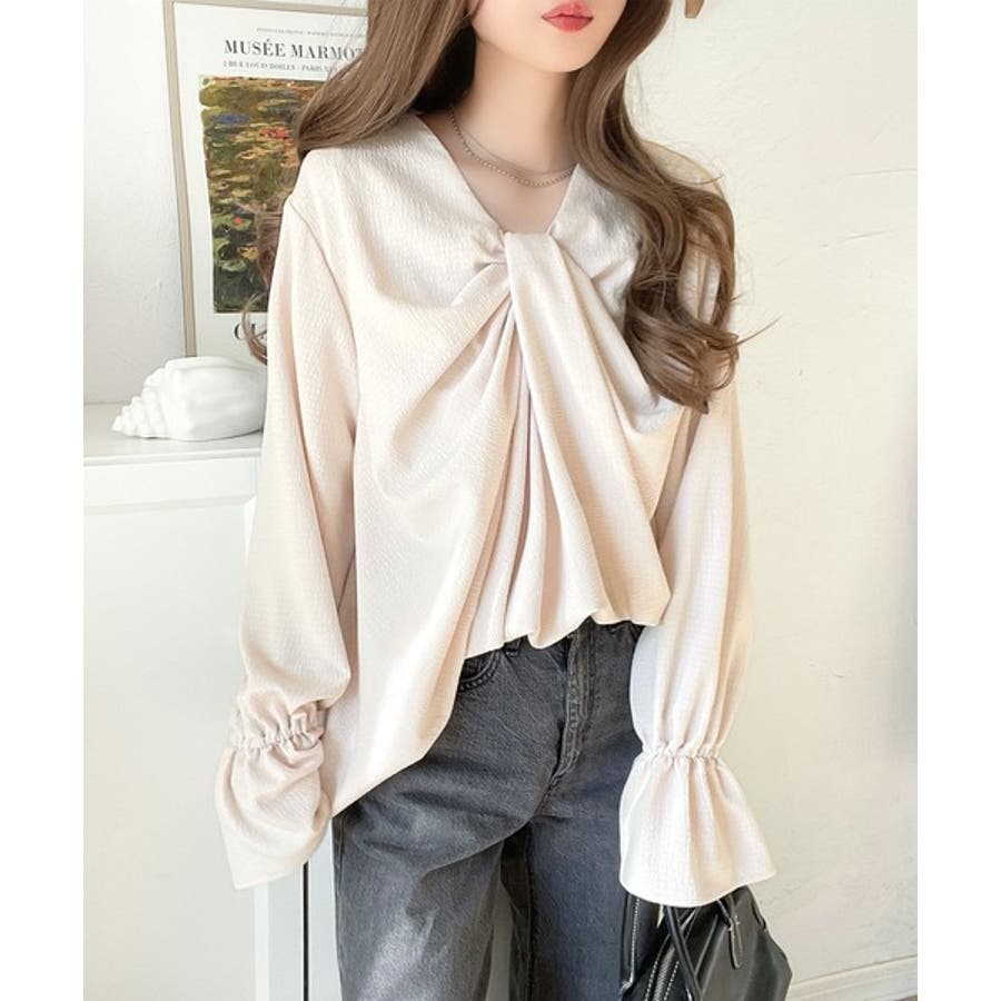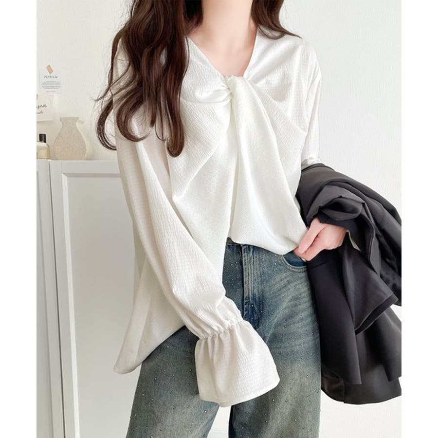 立体的なツイストリボンデザインが特徴的のブラウス。