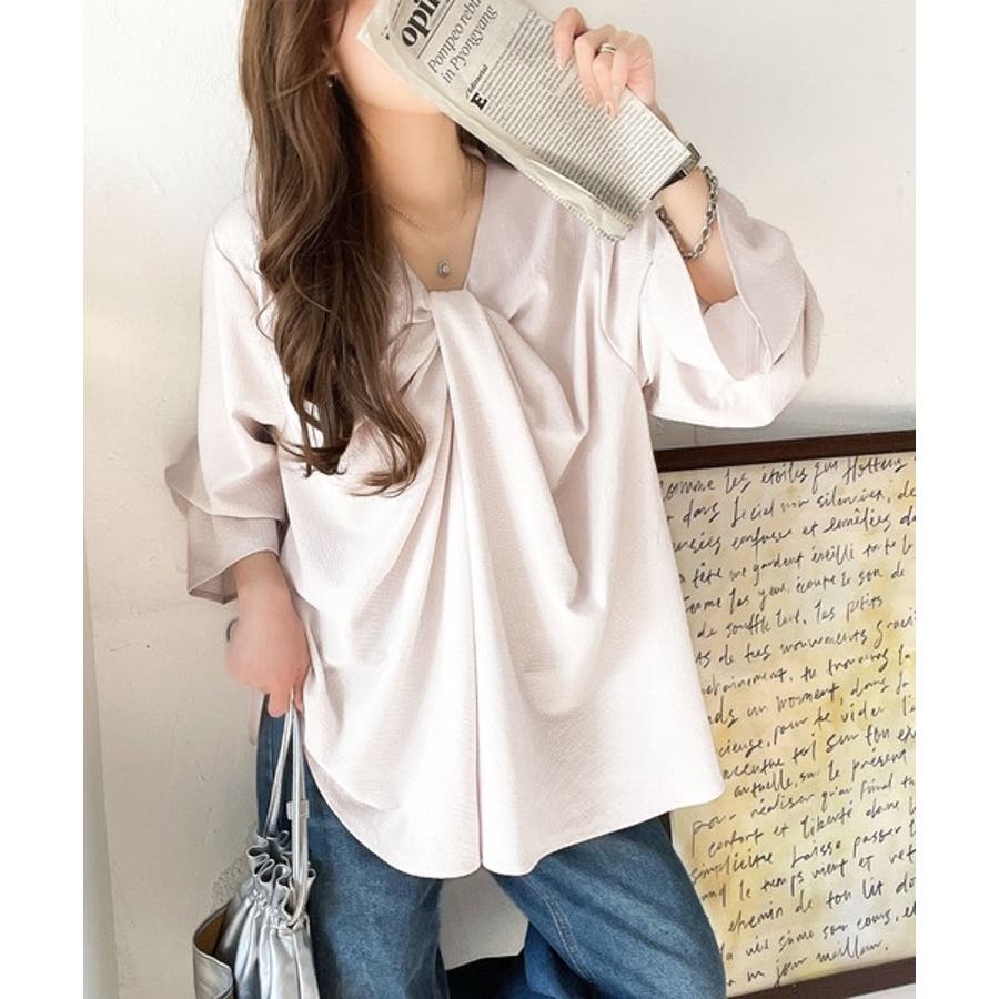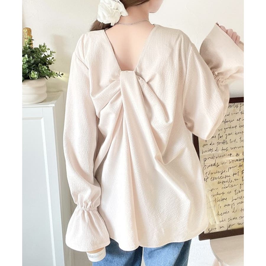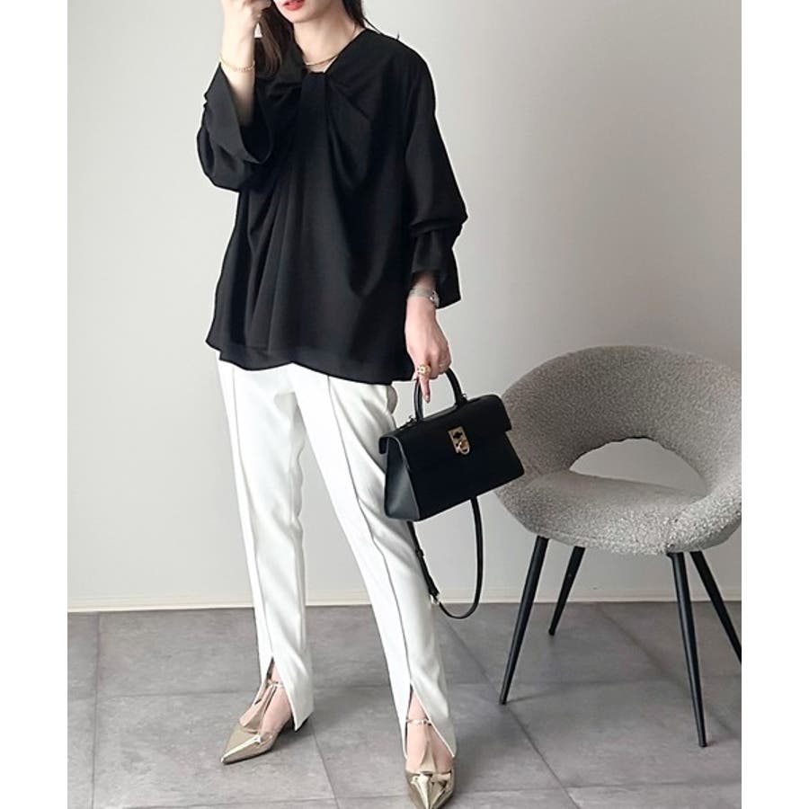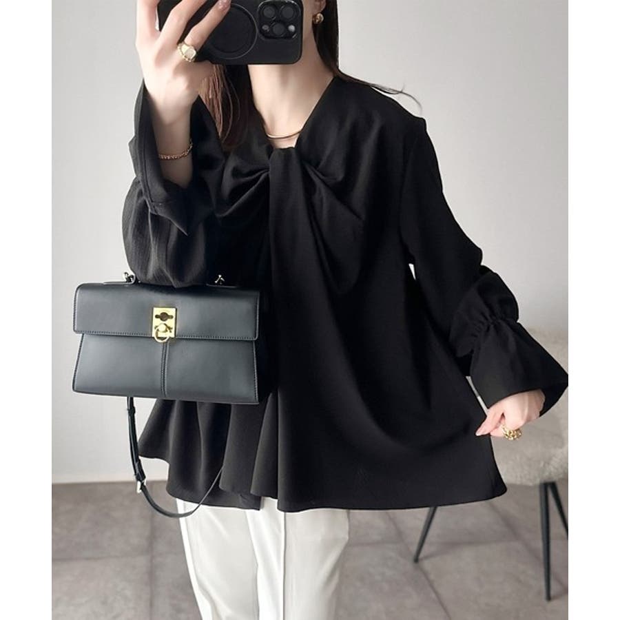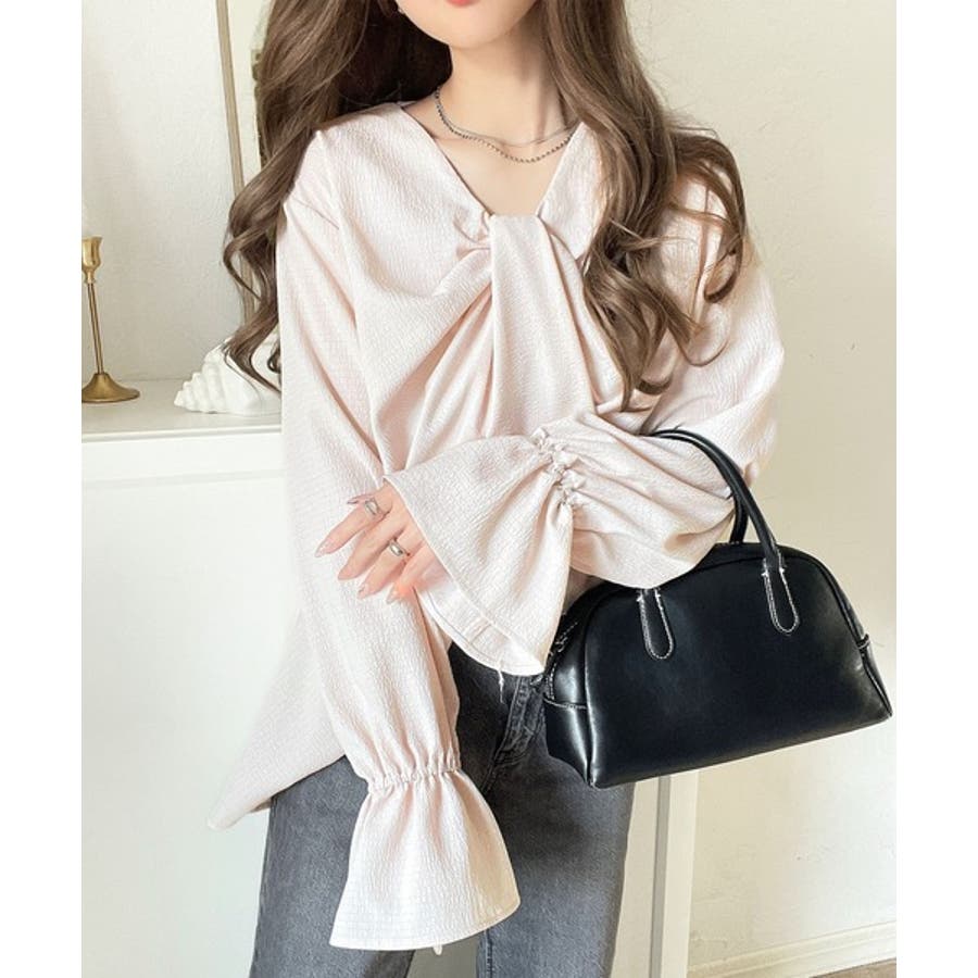 立体的なツイストリボンデザインが特徴的のブラウス。