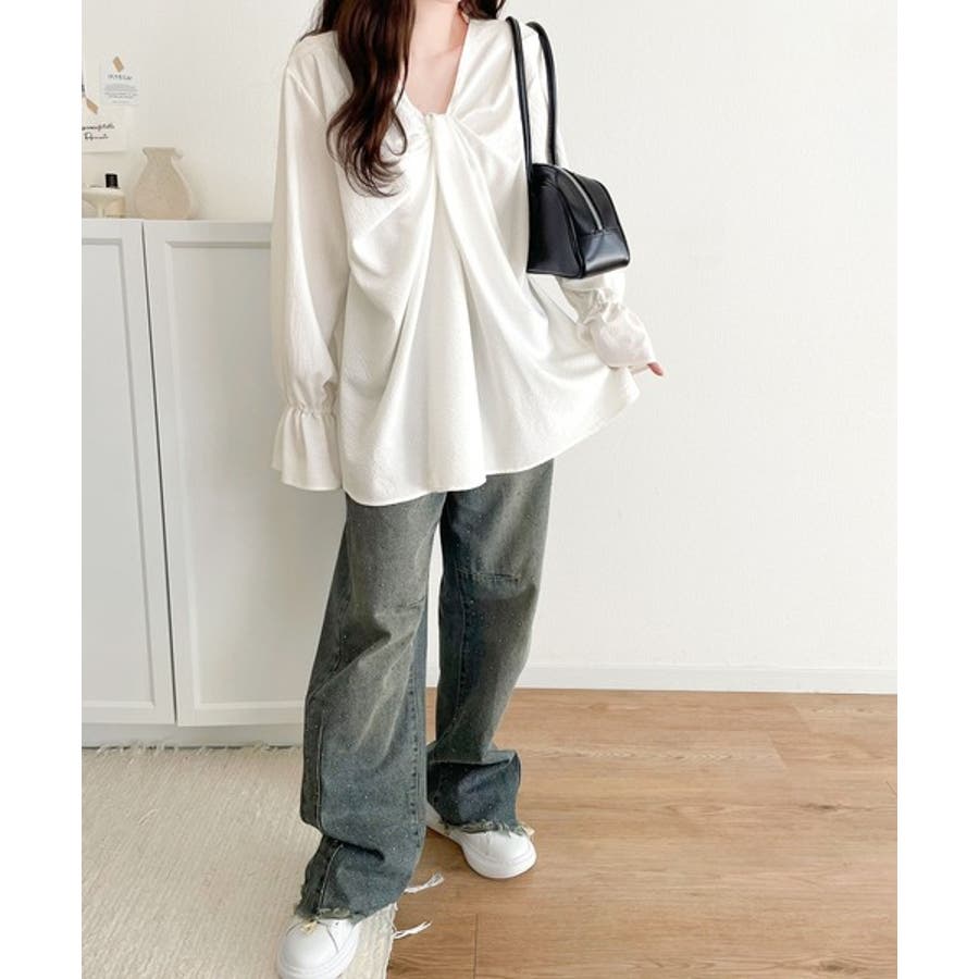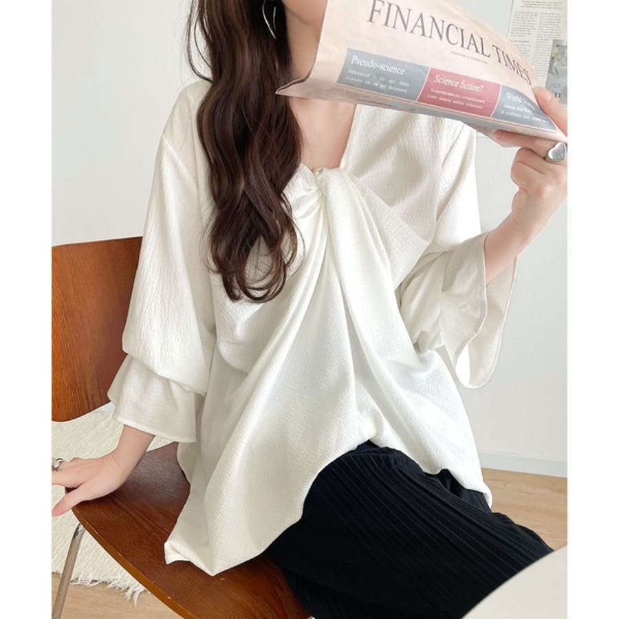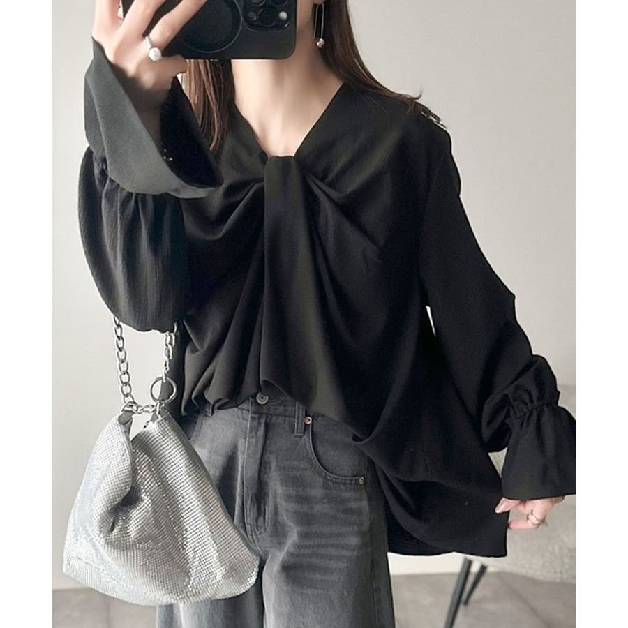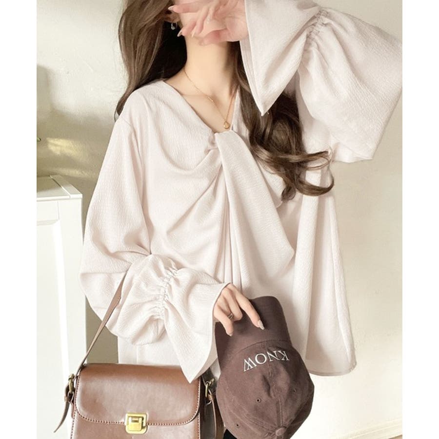 大人可愛い。前後2wayツイストデザインキャンディスリーブブラウス(長袖)
