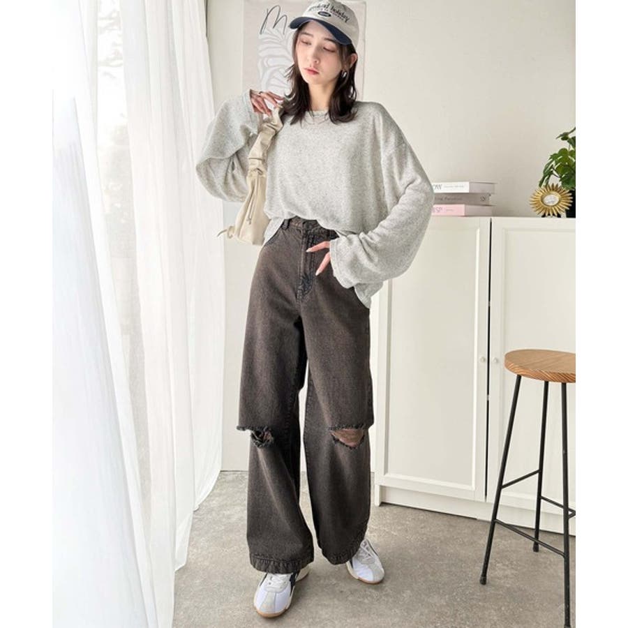 リラクシングなゆるニット。オーバーサイズグランジシアーニットトップス(長袖)