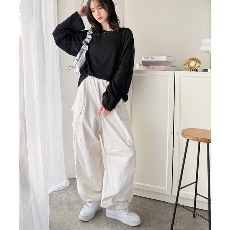 ざっくりと編み込んだやわらかいニット素材になっており、取り入れるだけでトレンド感の出るシアー素材。