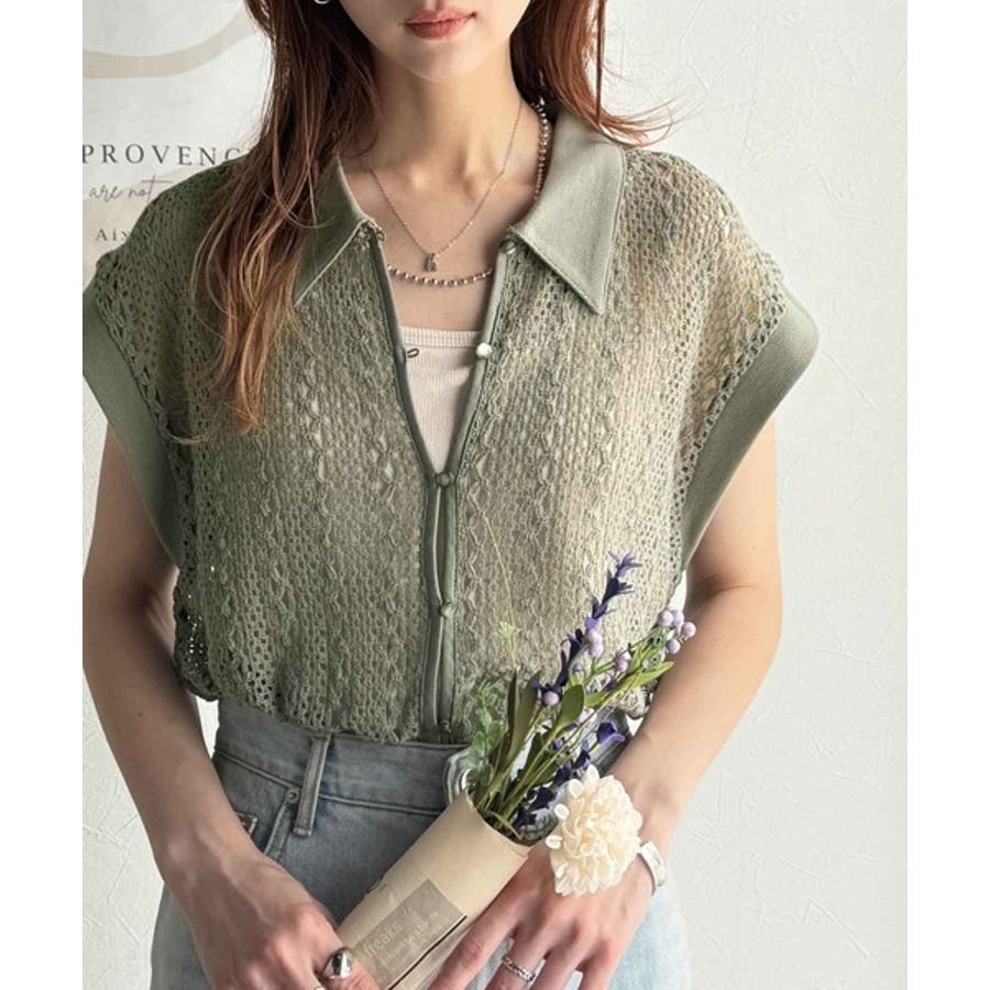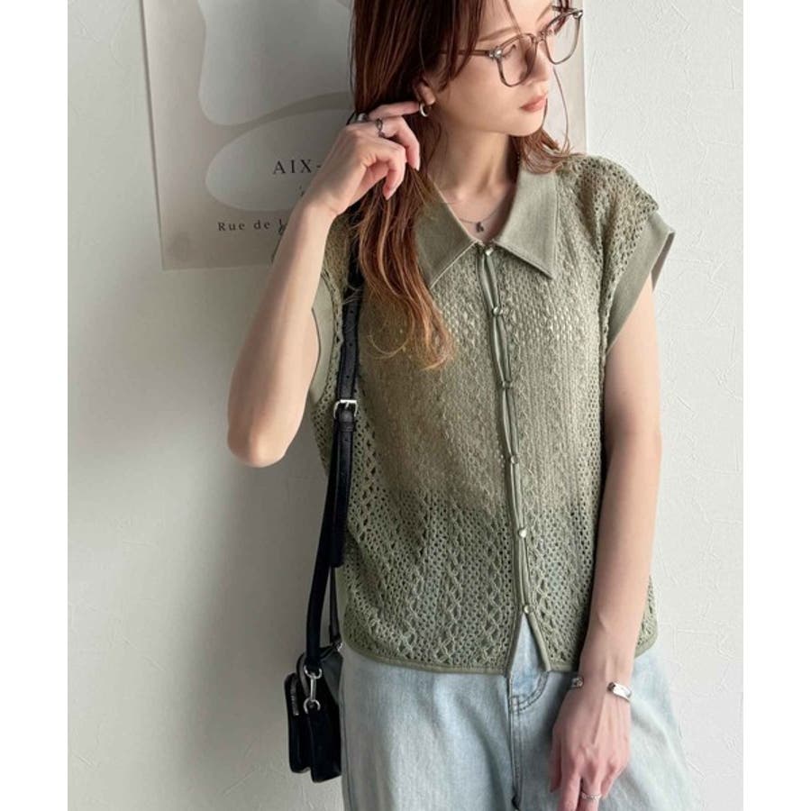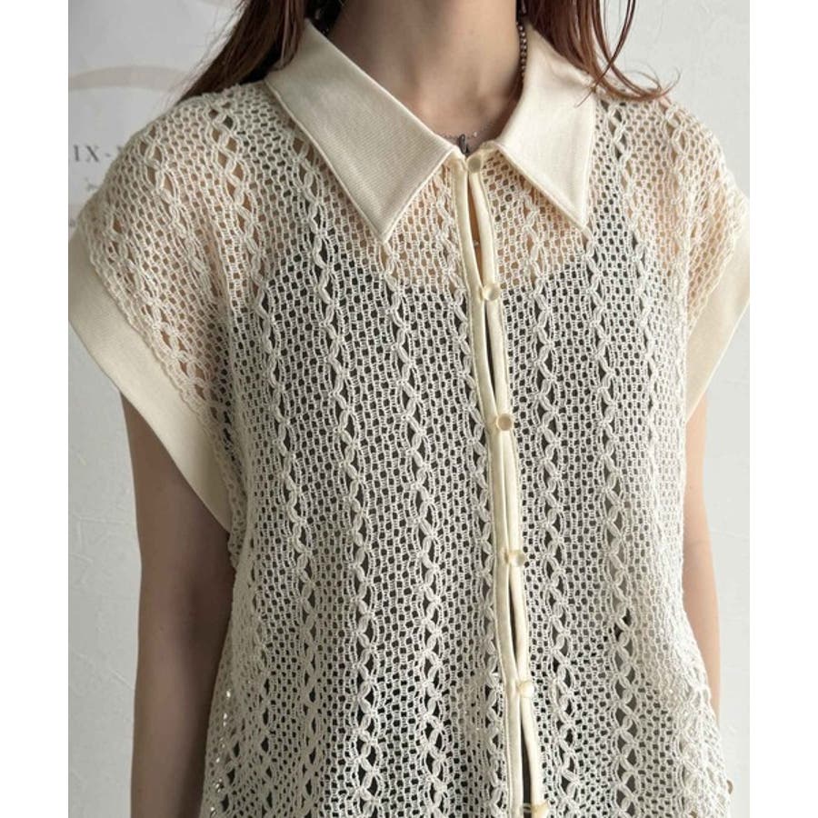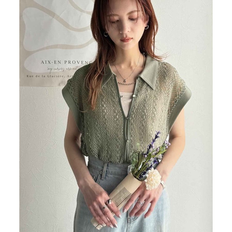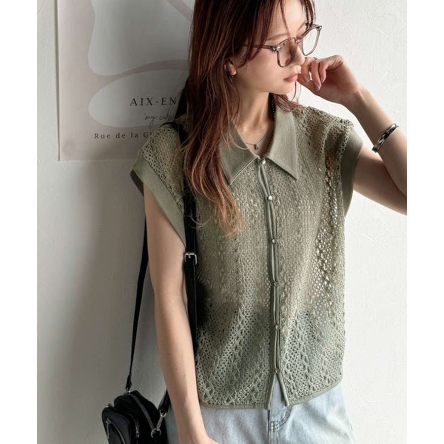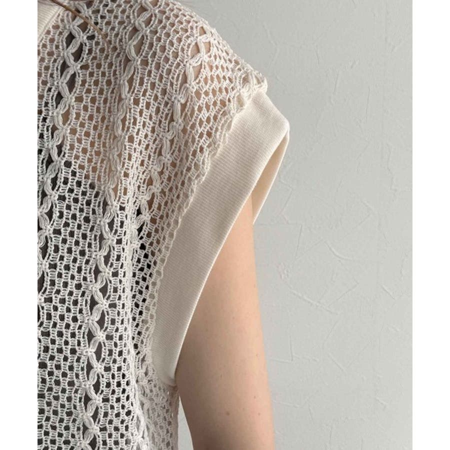 クロシェ風の柄レースがトレンド感を引き立て、おしゃれを楽しめる一枚。
