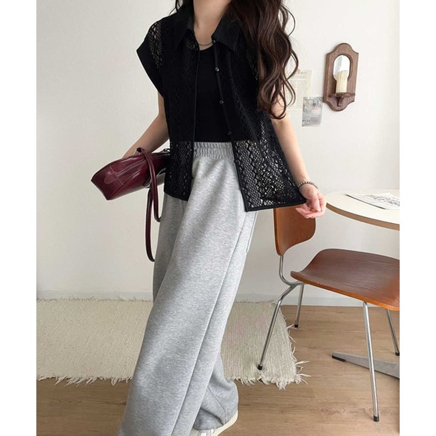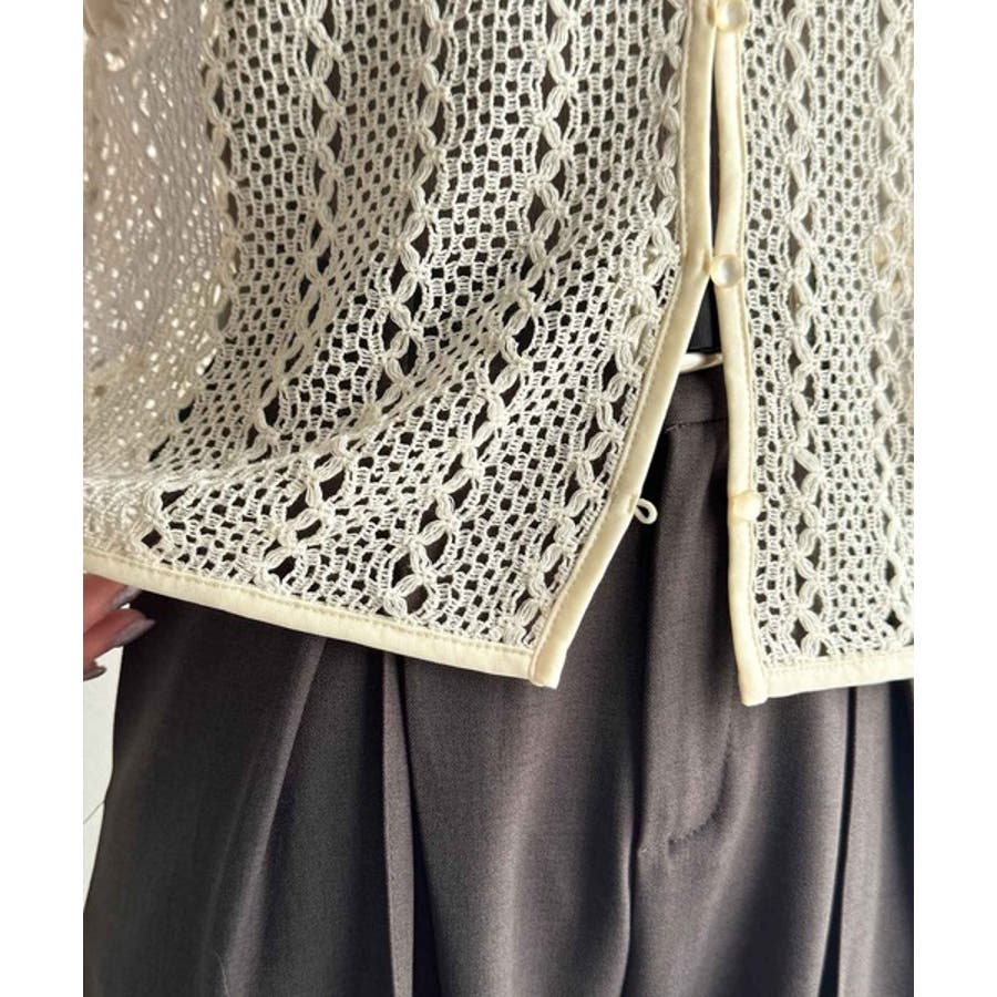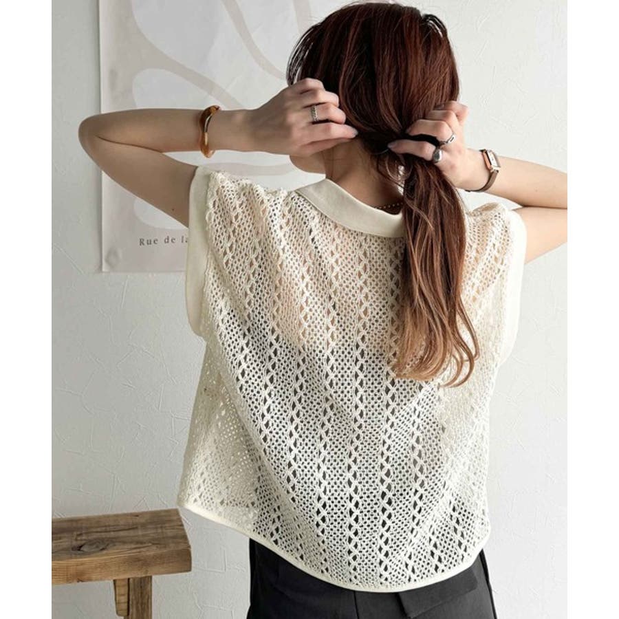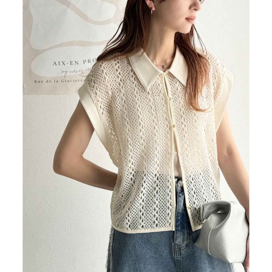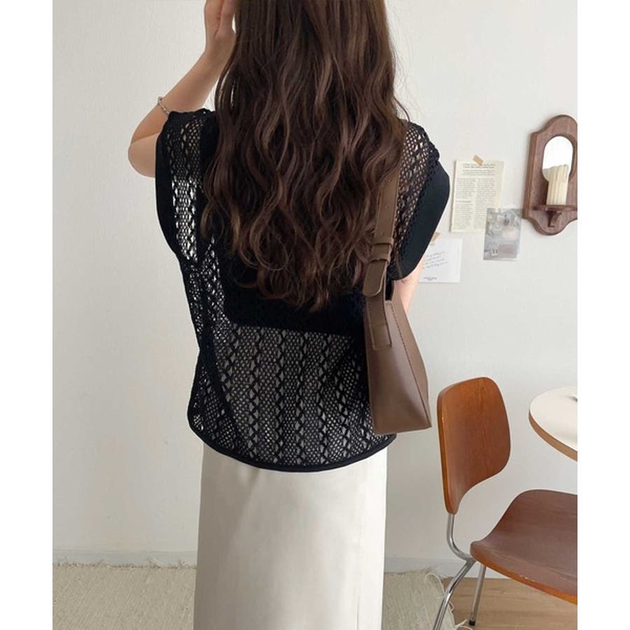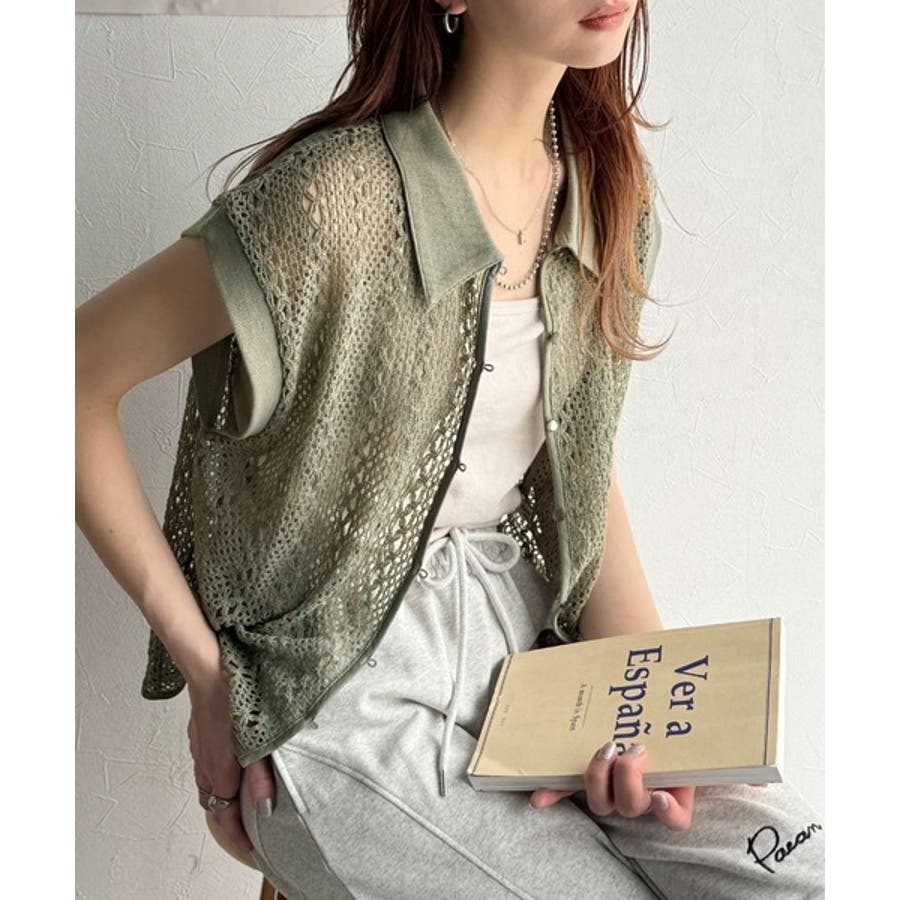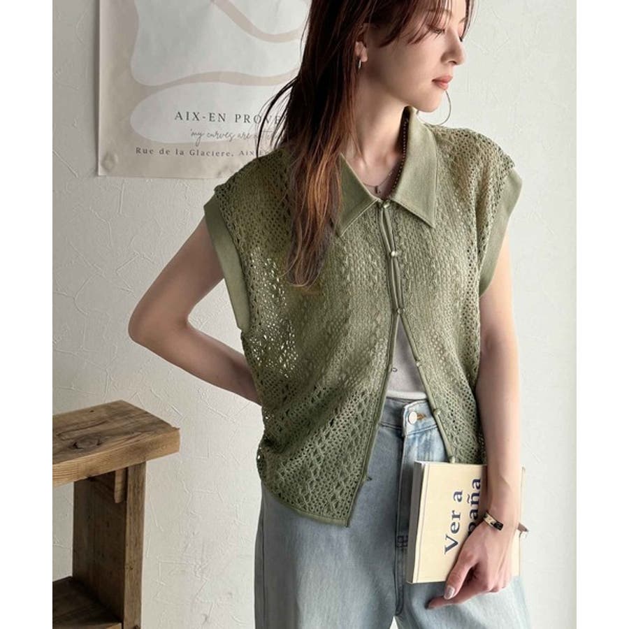 クロシェ風の柄レースがトレンド感を引き立て、おしゃれを楽しめる一枚。